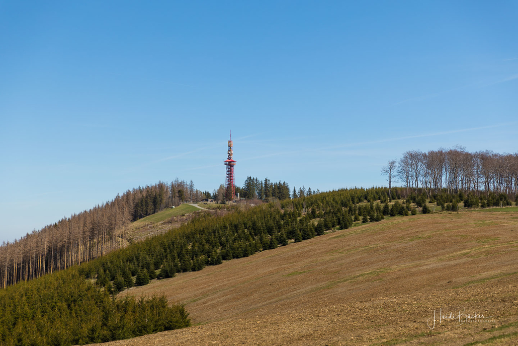 Das Gelände ist rundrum eingezäunt und Betreten verboten. Das war echt ärgerlich. Und wahrscheinlich haben sich vor uns auch schon andere Wanderer geärgert, die den schweißtreibenden Aufstieg hinter sich hatten, denn im Zaun klaffte ein großes Loch und auf der gegenüber liegenden Seite war er komplett niedergerissen, so dass der Zugang zum Gelände offen war. Selbstverständlich waren wir nicht auf dem Stüppelturm …war ja verboten! Deshalb gibt es an dieser Stelle auch keine schönen Fotos von einer grandiosen Aussicht ins Sauerland. Allerdings kann man auch vom Zaun aus schon weit blicken! ツ