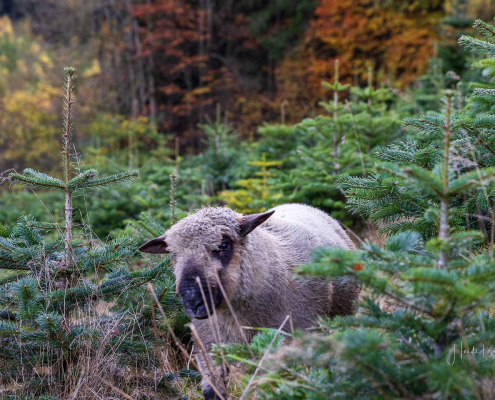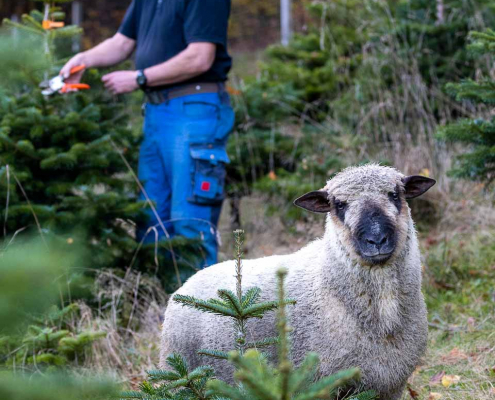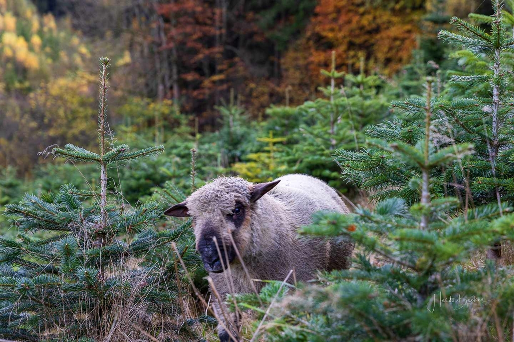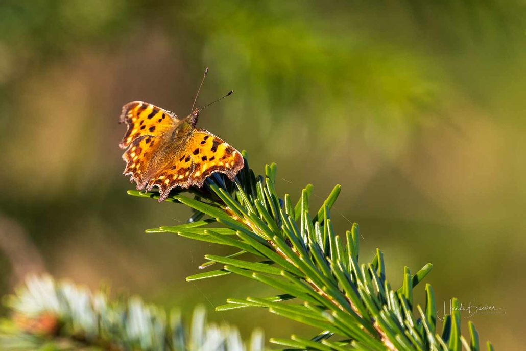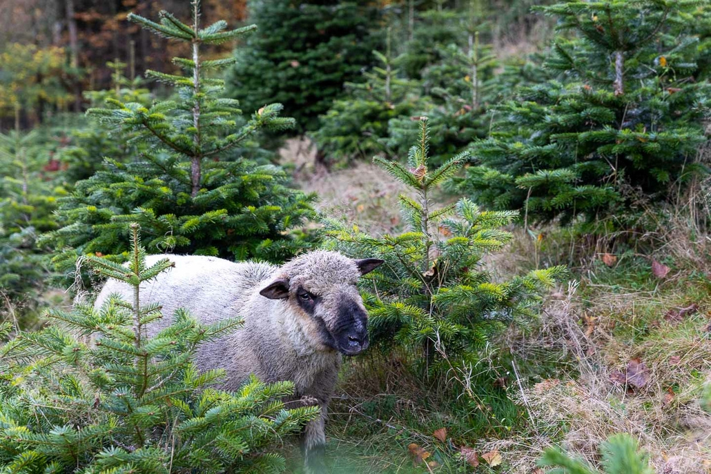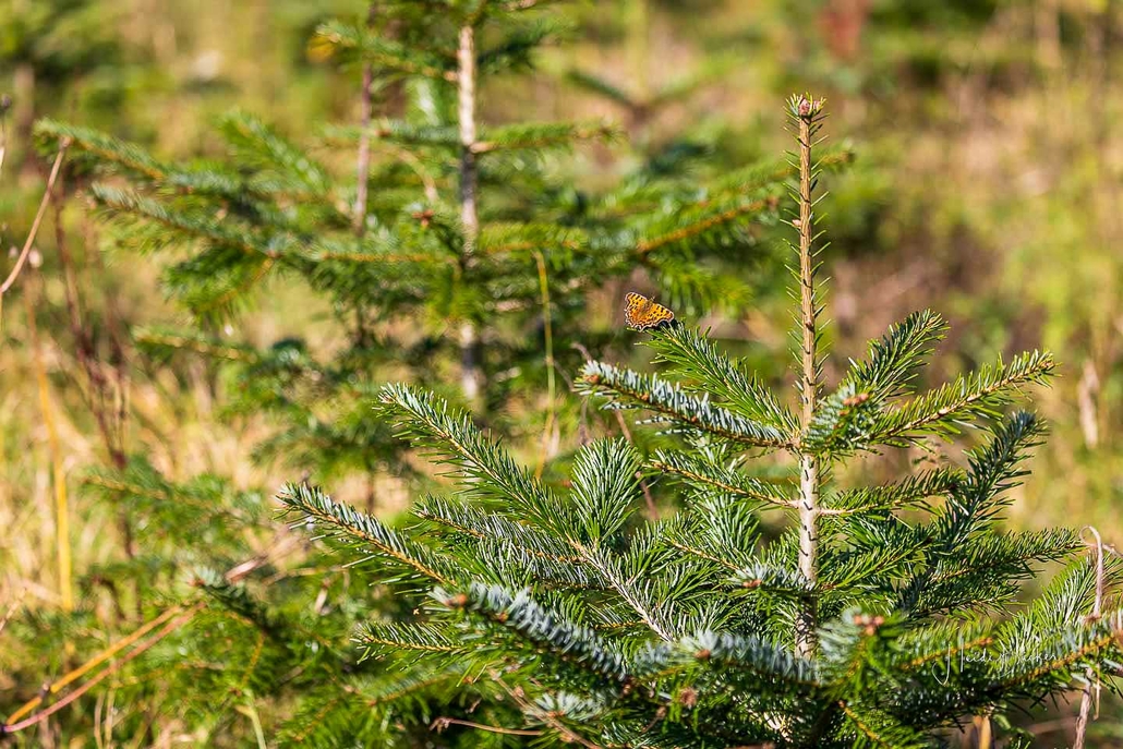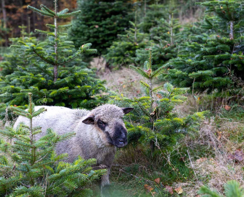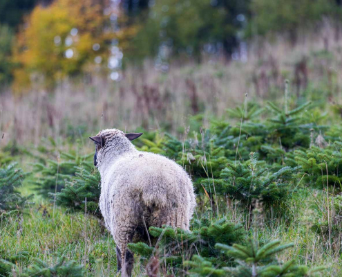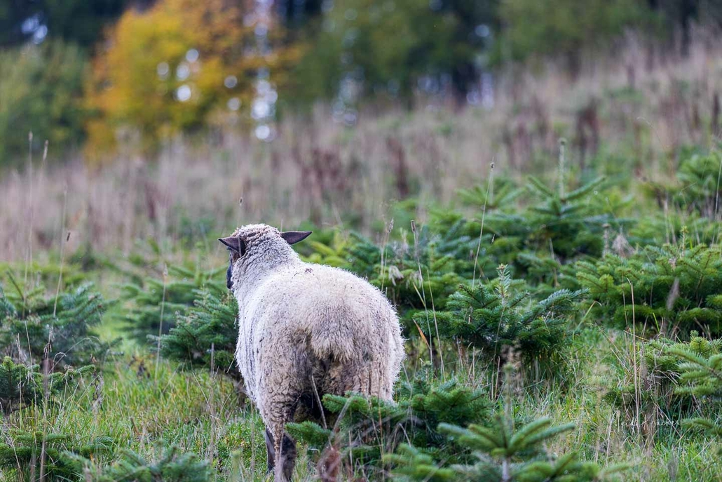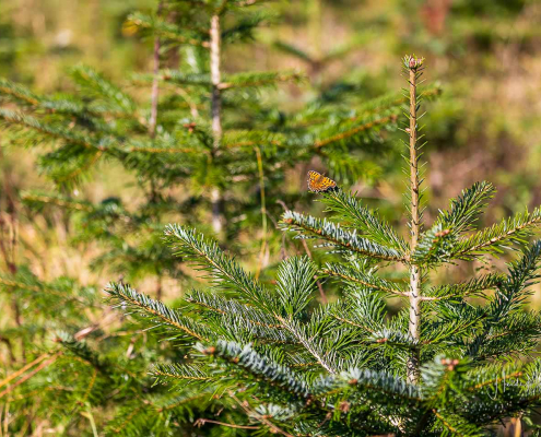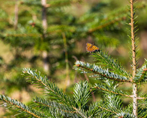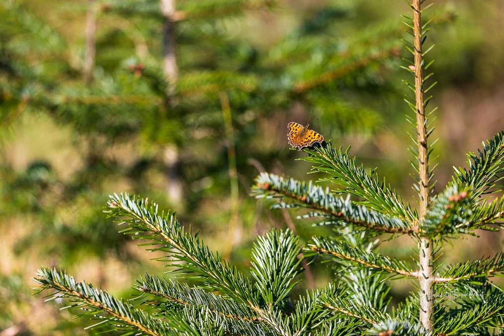 Durch die nachhaltige Anbaumethode und den Verzicht auf Pestizide finden viele Lebewesen in den Bio-Weihnachtsbaum-Kulturen optimale Bedingungen für die Nahrungssuche und Brutaufzucht. Das erhält die lebensnotwendige Artenvielfalt. Zusätzlich werden der Boden und das Grundwasser geschützt. Während meines Fotoshootings mit den Schafen, gesellte sich auch ein Schmetterling dazu …perfektes Timing. ツ