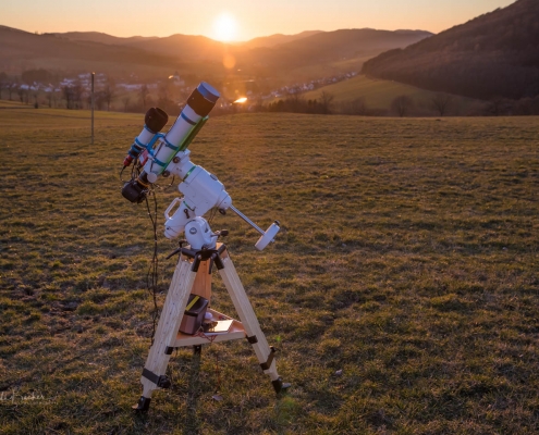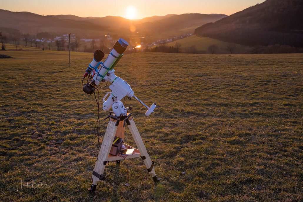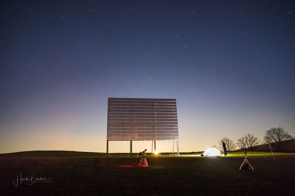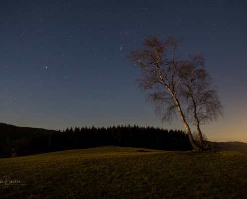 Letzten Sonntag habe ich mich mit Astrofotograf Stefan Schwope auf der Almert bei Schmallenberg getroffen um einiges über Sternenbilder und die Sternenfotografie zu erfahren …es sollte ein lustiger und informativer Abend werden. Bevor wir allerdings in die Sterne blicken konnten, ging um 18:00 Uhr erstmal die Sonne über Grafschaft unter und brachte den Himmel zum Glühen. Während Stefan alles für seine Astrofotografie aufbaute, nutzte ich die Zeit, um diese tolle Abendstimmung mit der Kamera einzufangen. Danach brach eine sternenklare und sehr kalte Nacht herein …brrrrrh …aber was tut man nicht alles, um gute Fotos zu bekommen. Allerdings ist in der Sternenfotografie bei mir noch gaaaaanz viel Luft nach oben.
