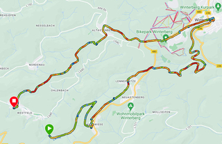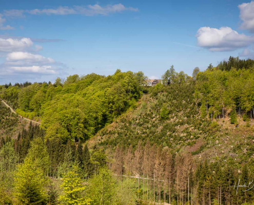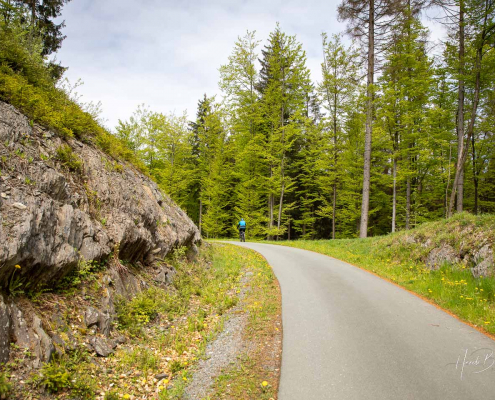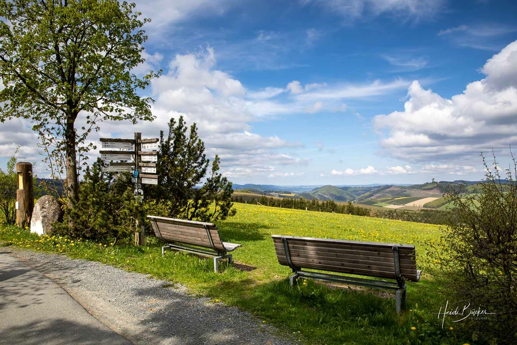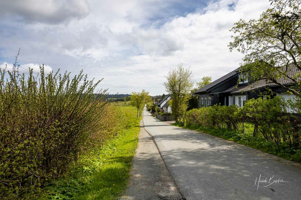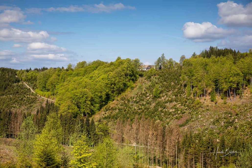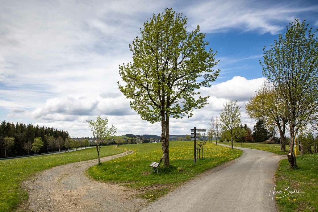 Von Westfeld ging es durch den Lennegrund hinauf nach Langewiese – von Langewiese über den Rothaarsteig/Grenzweg bis Lenneplätze – von Lenneplätze über den Helleplatz und durch das Helletal in Richtung Züschen – von Züschen über den Radweg nach Winterberg – von Winterberg nach Altastenberg – von Altastenberg über Ohlenbach zurück nach Westfeld = 30 km