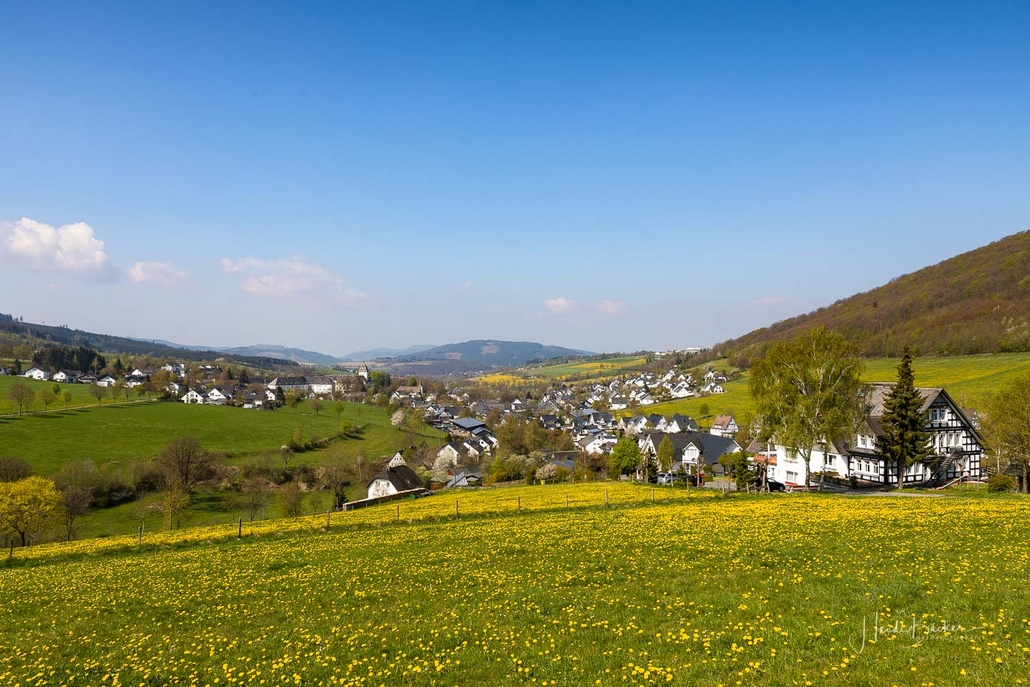 Nach dem Einheitsgrau des Winters zeigt die Natur endlich wieder Farbe. Die wilden Kirschen blühen, das erste zarte Grün schimmert an den Ästen der Bäume, in den Vorgärten leuchten bunte Blumen und der Löwenzahn verwandelt die Wiesen in ein gelbes Blütenmeer. Da macht die Fahrt durch das Schmallenberger Sauerland wieder richtig Spaß. Ab und zu halte ich an, um ein paar schöne Eindrücke mit der Kamera einzufangen. Die nachfolgenden Aufnahmen sind in den letzten Tagen entstanden und werden später auch in die Galerien der einzelnen Ortschaften eingepflegt.