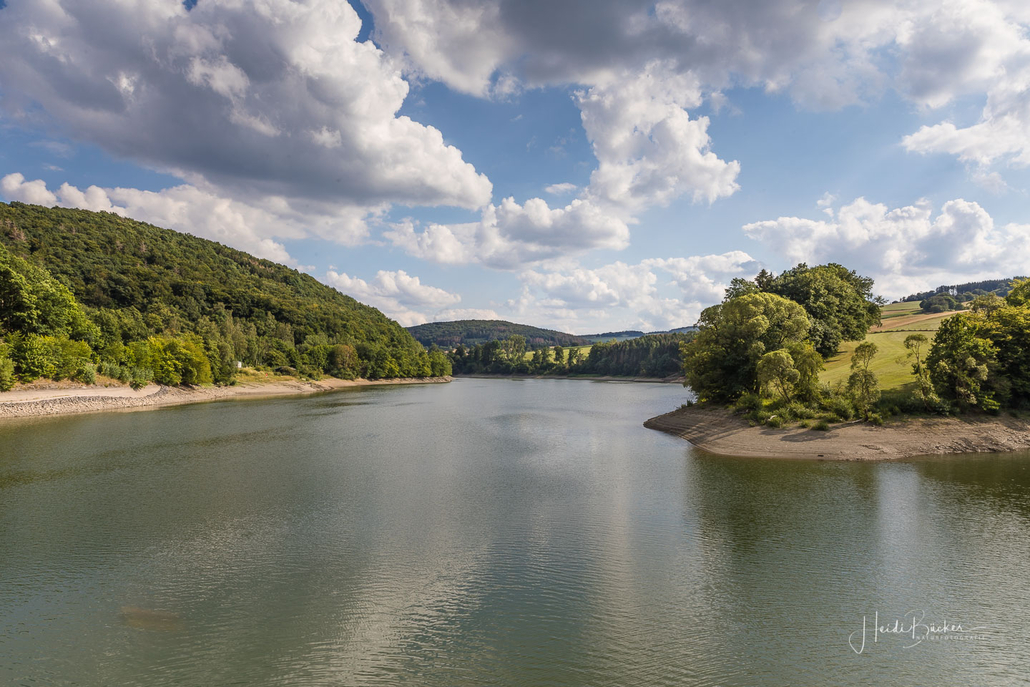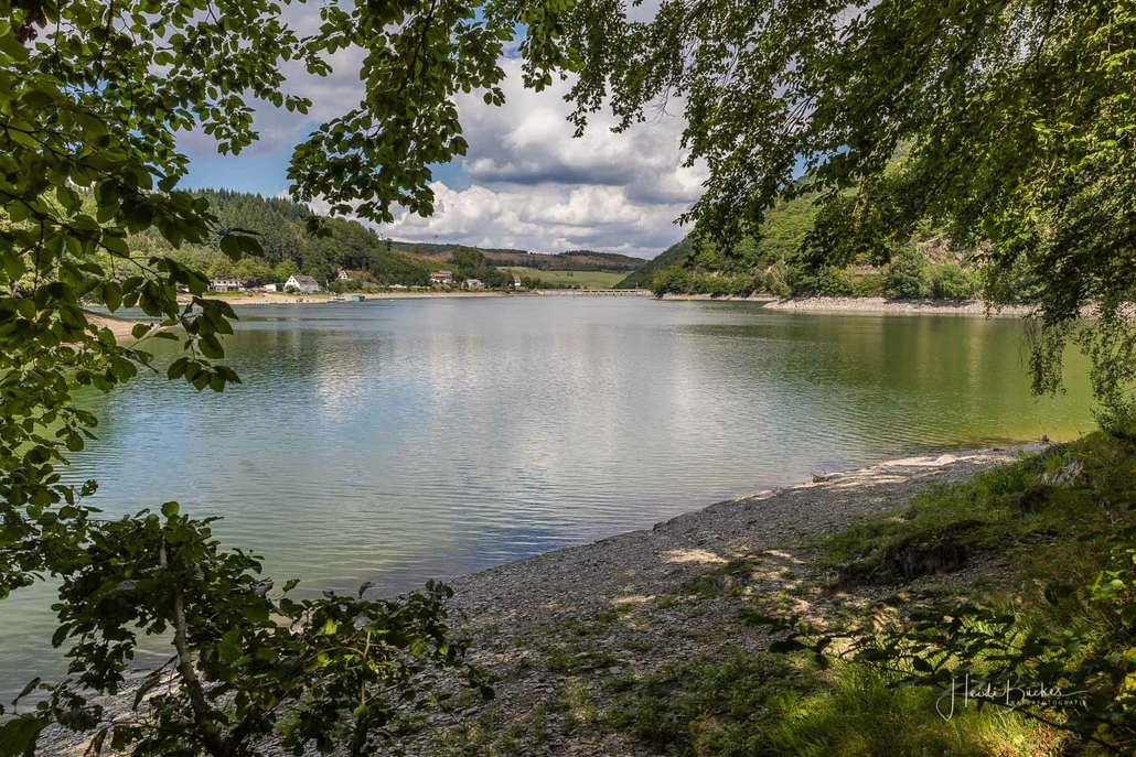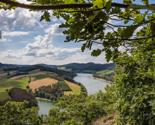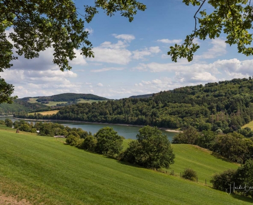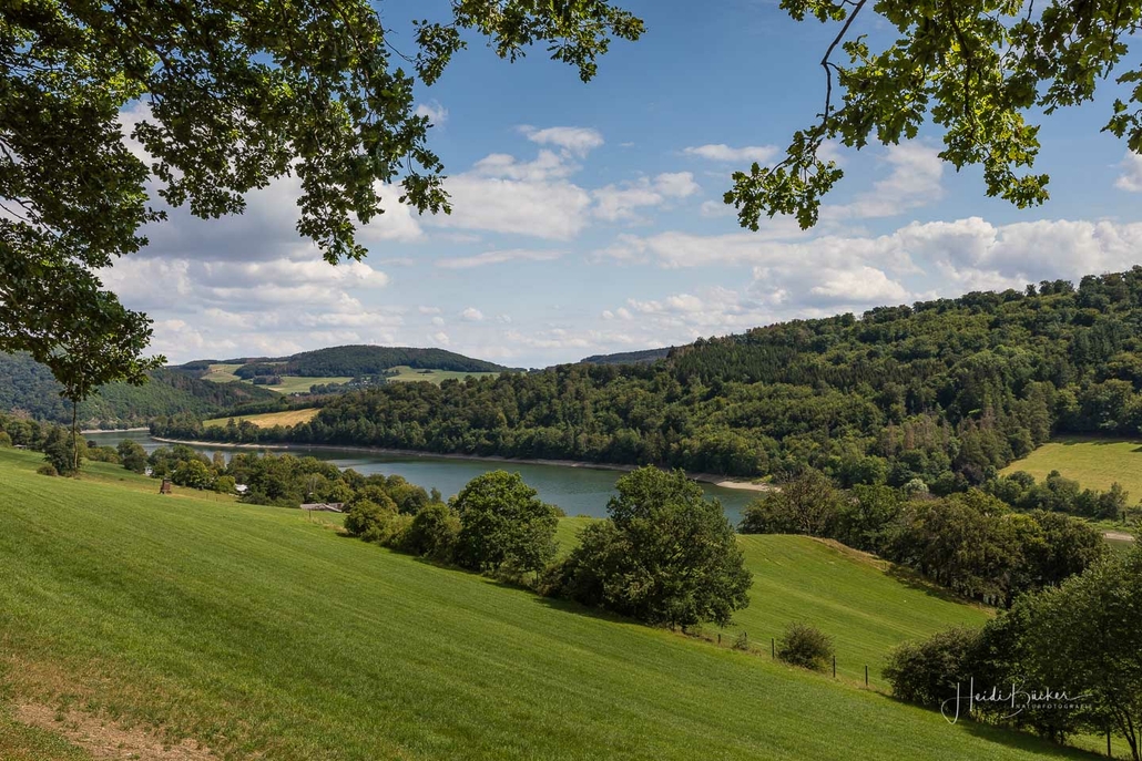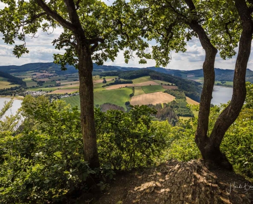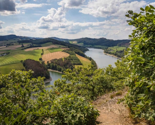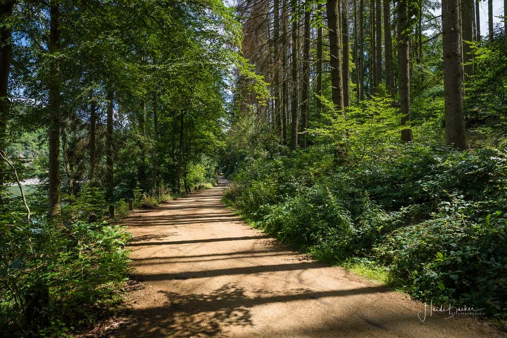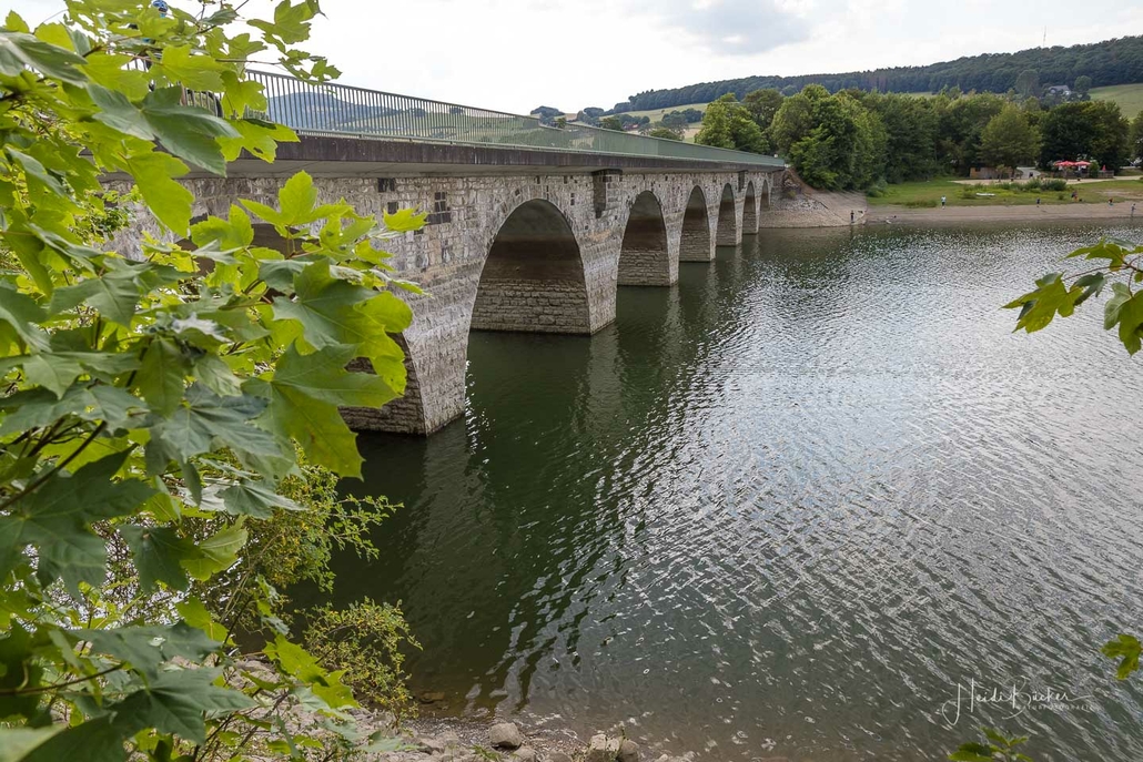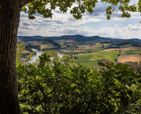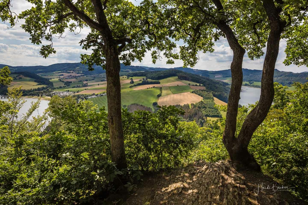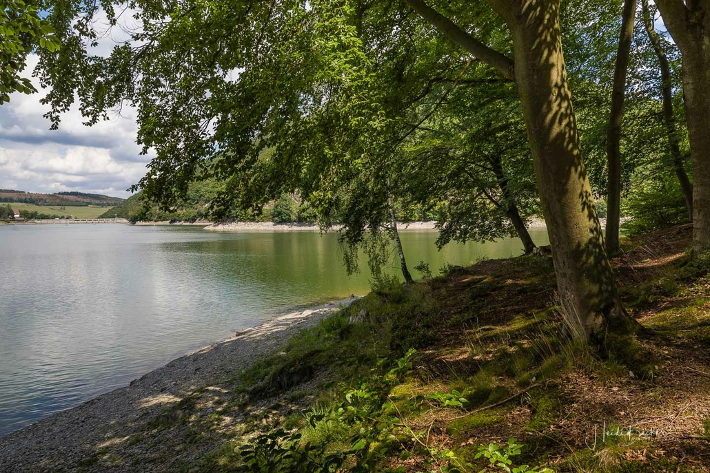 Anschließend ging es vom St. Muffert weiter zum Gipfel des Eisenbergs, der höchsten Erhebung der Stadt Marsberg. Dieser Punkt liegt, umgeben von hohen Buchen, an einem schattigen Plätzchen mitten im Wald. Nur ein kurzes Stück weiter, befindet sich ein weiterer toller Aussichtspunkt mit Blick auf den See und die Staumauer. Nach einer kurzen Pause ging es von hier über einen urigen Waldweg wieder hinunter ins Tal in Richtung Heringhausen. Ab Heringhausen fuhren wir wieder direkt am See entlang bis zur Stormbrucher Brücke und Endstation unserer Tour.