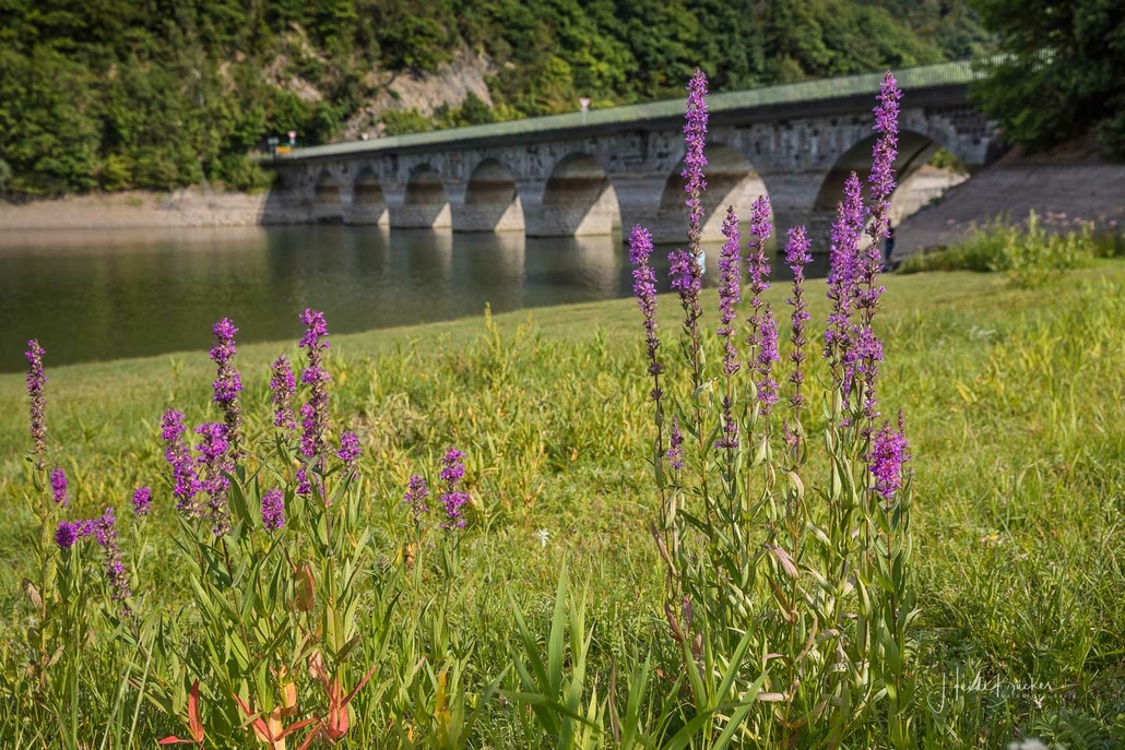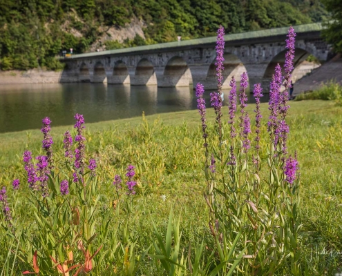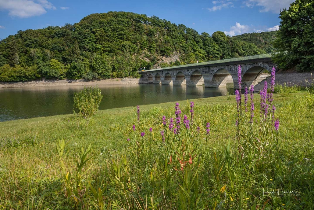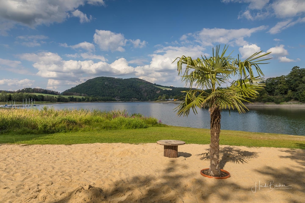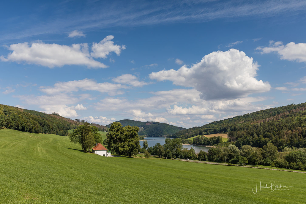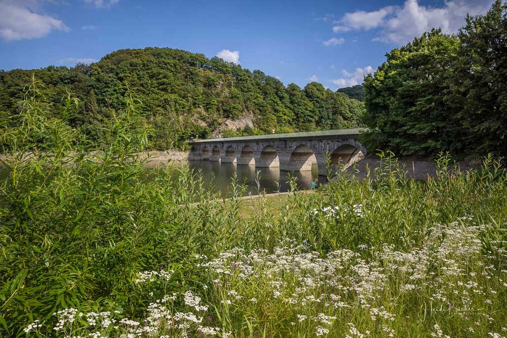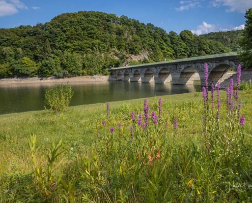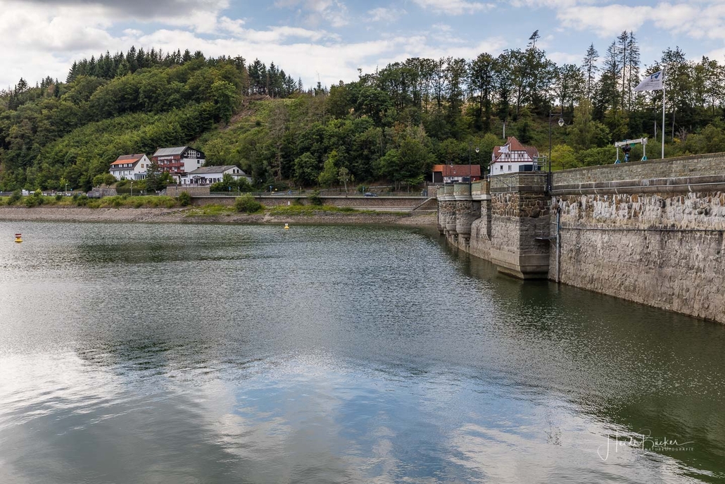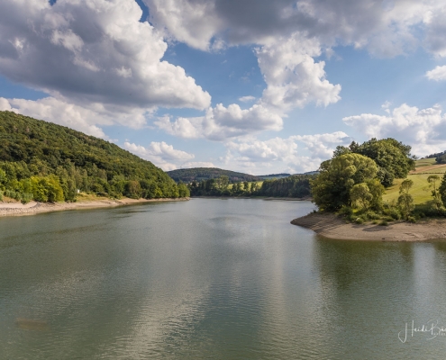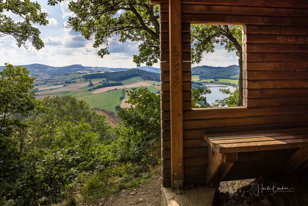 Anschließend ging es vom St. Muffert weiter zum Gipfel des Eisenbergs, der höchsten Erhebung der Stadt Marsberg. Dieser Punkt liegt, umgeben von hohen Buchen, an einem schattigen Plätzchen mitten im Wald. Nur ein kurzes Stück weiter, befindet sich ein weiterer toller Aussichtspunkt mit Blick auf den See und die Staumauer. Nach einer kurzen Pause ging es von hier über einen urigen Waldweg wieder hinunter ins Tal in Richtung Heringhausen. Ab Heringhausen fuhren wir wieder direkt am See entlang bis zur Stormbrucher Brücke und Endstation unserer Tour.