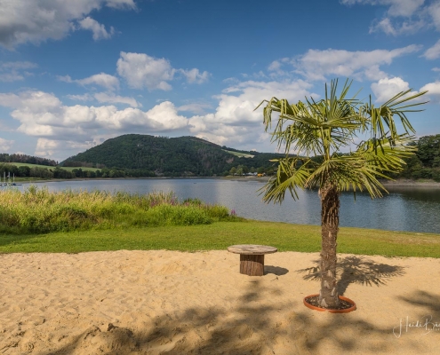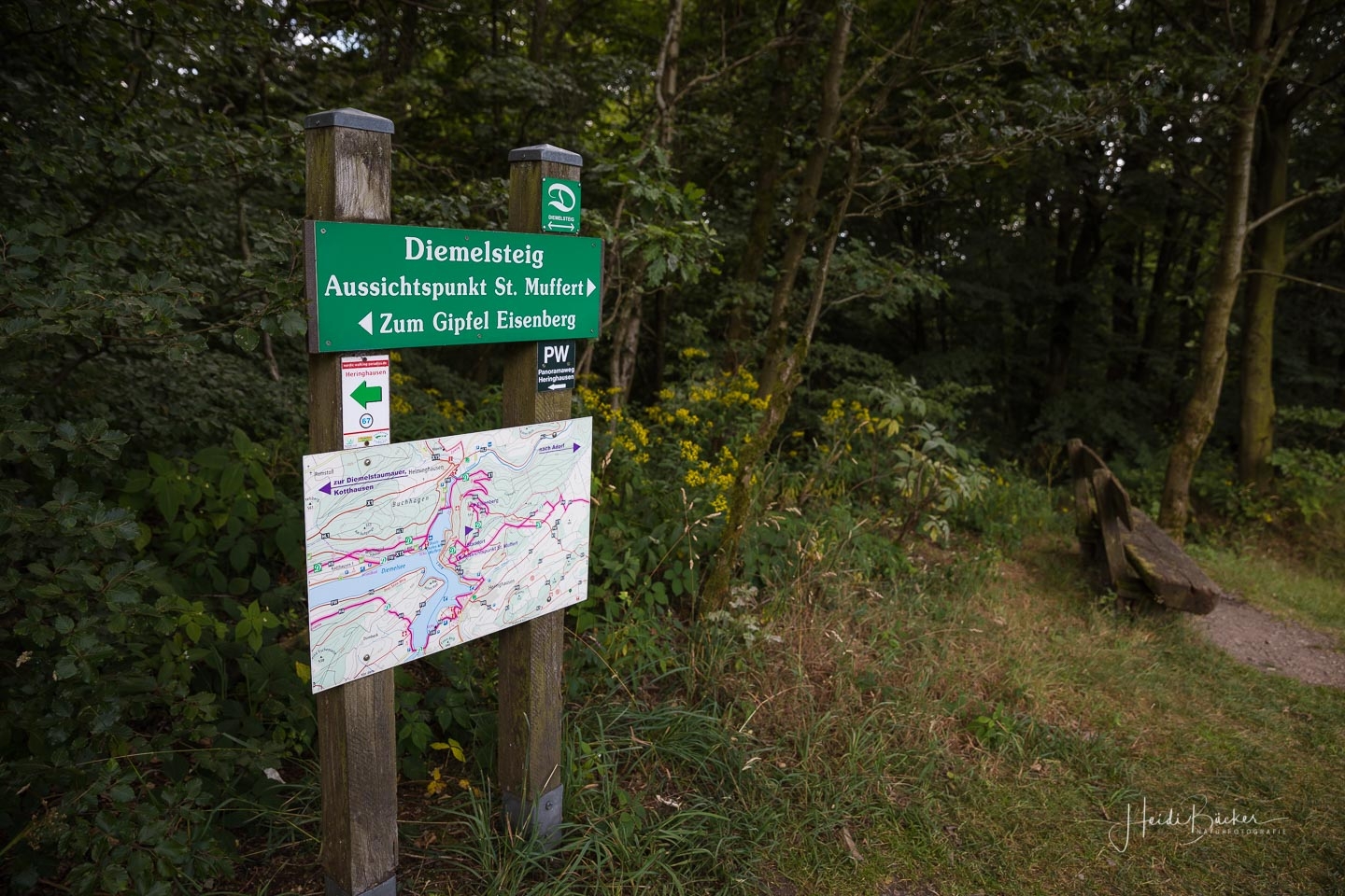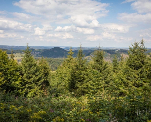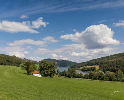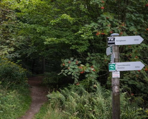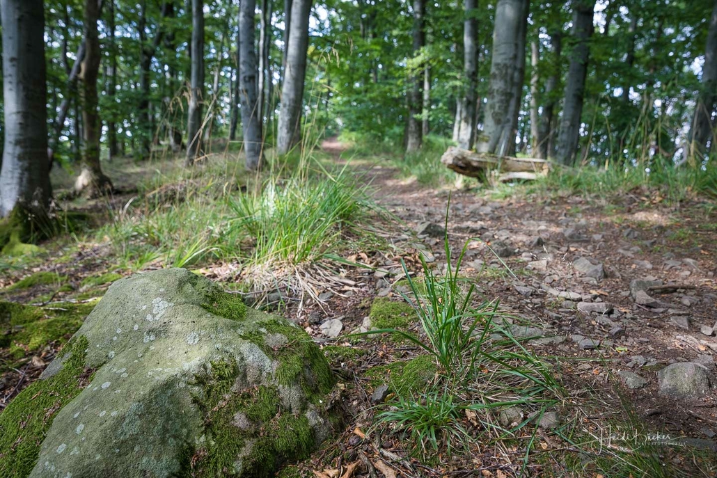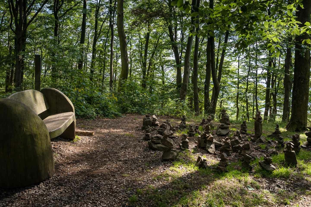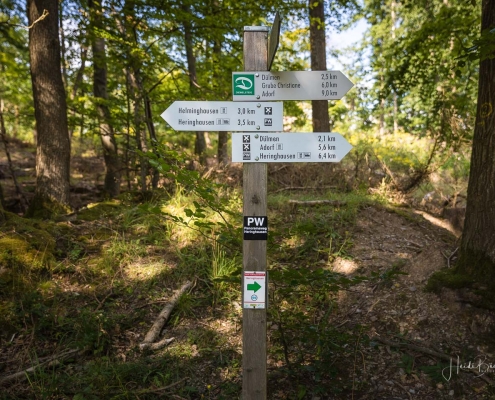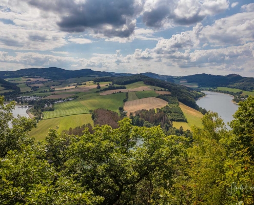 Bei unserer Biketour rund um den Diemelsee sind wir einfach mal drauflosgefahren, ohne einem ausgewiesenen Radweg zu folgen. Teils ging es über den X1, sowie dem Panoramaweg Heringhausen oder dem Diemelsteig – mal ganz nah am See vorbei oder auch mal weiter entfernt. Und da ich noch nie auf dem Gipfel des St. Mufferts war, wo sich einer der 42 Seelenorte des Sauerlandes befindet, haben wir diesen auch noch erklommen. Allerdings ist der Gipfelweg doch eher für Wanderer und weniger für Radfahrer geeignet. Wir sind dann auch nicht auf dem direkten Wanderpfad zu den St. Muffert-Klippen gefahren, sondern haben einen Umweg über einen Forstweg gemacht. Das gleiche gilt übrigens auch für das Erreichen des Eisenberg-Gipfels, der direkt nebenan liegt. Die Pfade sind sehr steinig und verwurzelt und man muss schon fest im Sattel sitzen und den Lenker gut im Griff haben. Da wir an einem normalen Wochentag unterwegs waren, kamen uns keine Wanderer entgegen, so daß der Wegabschnitt kein Problem war, aber an einem Wochenende würde ich dieses Stück mit dem Rad auslassen und lieber auf den Gipfel wandern. Nichtsdestotrotz hat sich der Auftstieg zum St. Muffert-Gipfel gelohnt und die Aussicht, die sich uns bot, war einfach super schön!