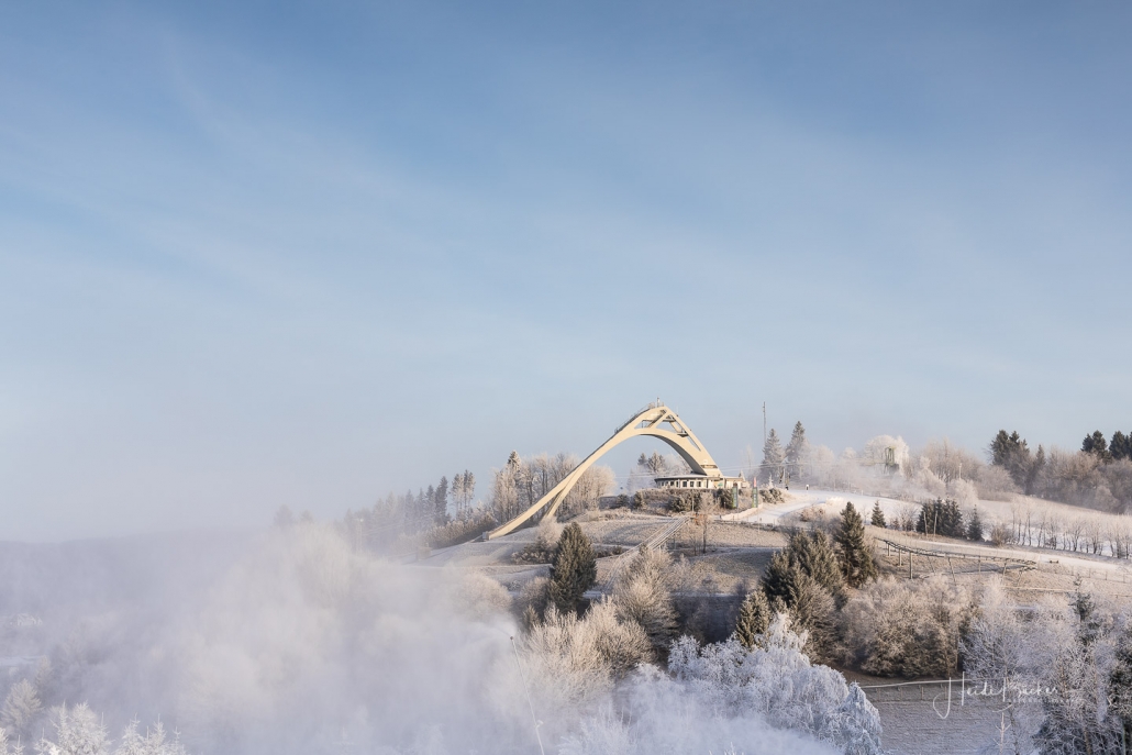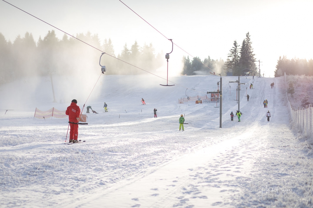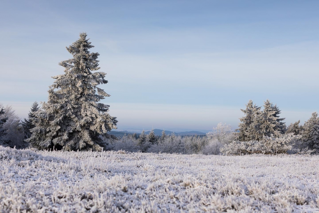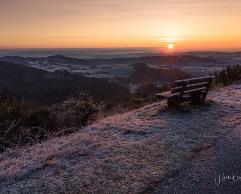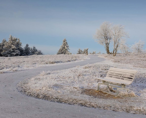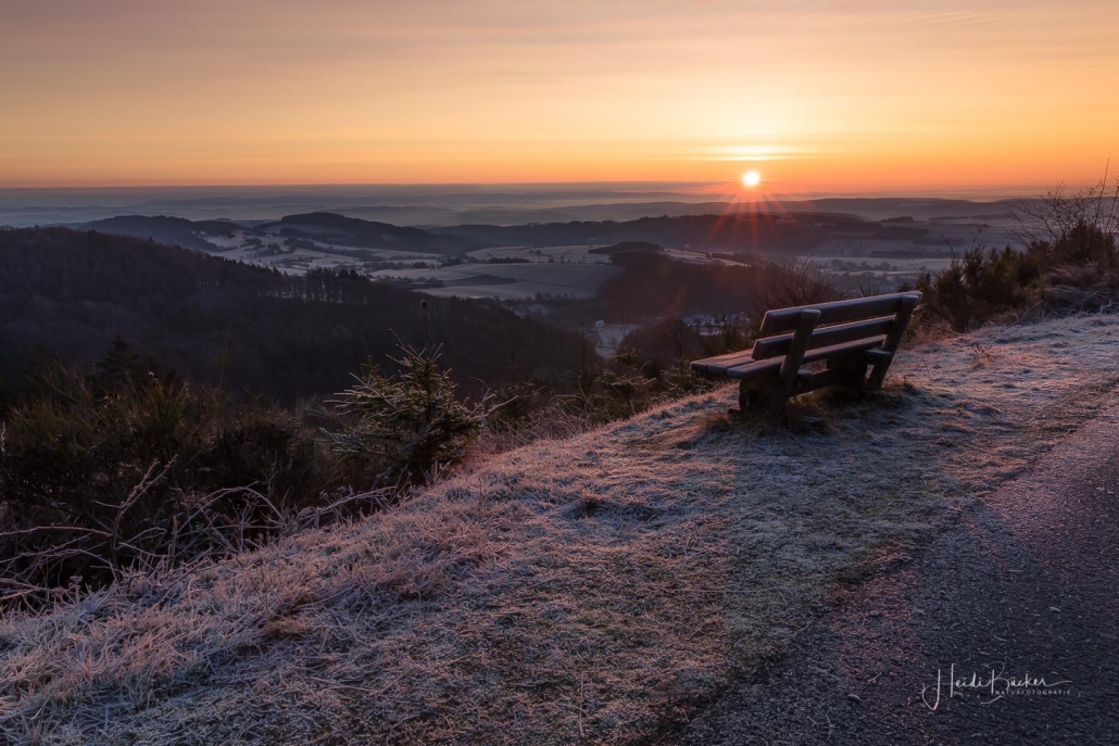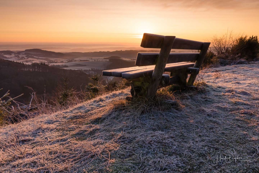 Heute Morgen sah es “auf” und “rund um” den Kahlen Asten bereits sehr winterlich aus. Die Natur war mit Raureif überzogen und feine Eiskristalle funkelten in der Morgensonne. Außerdem sorgte die künstliche Beschneiung für weiße Skihänge. Am Sahnehang konnte man bereits Ski fahren und rodeln. Ursprünglich wollte ich den heutigen Sonnenaufgang „über dem Nebel“ am Bollerberg fotografieren, doch leider war weit und breit kein Nebel ins Sicht. Dafür habe ich andere Hobbyfotografen, die in der gleichen Absicht dort oben waren, kennengelernt und nette Gespräche geführt. Irgendwann klappt´s dann auch mal wieder mit dem Nebel. 🙂