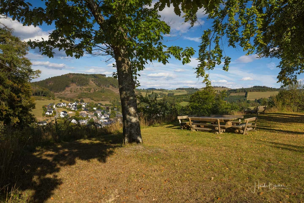 Kürzlich wurde in Schmallenberg-Oberkirchen ein neuer Wanderweg eröffnet. Ähnlich wie in Oberhenneborn wurde auch in Oberkirchen eine Fotoroute angelegt, auf der Landschaftsfotograf Klaus-Peter Kappest Tipps zur Fotografie gibt. Die Gesamtlänge des Rundwegs beträgt 12 Kilometer. Der Routenverlauf ist in Form einer acht angelegt. Wer nicht die gesamte Strecke wandern möchte, kann sie auch sehr gut in zwei Etappen einteilen. Ein- und Ausstieg in die Fotoroute, die durchgehend mit dem Wanderzeichen O2 markiert ist, ist der Wanderparkplatz an der Oberkirchener Schützenhalle. Von hier kann man entweder auf die ca. sieben Kilometer lange Südschleife gehen mit Hermannsteich, Almert, Pütte, Dorfbalkon und weiteren schönen Motiven. Oder man geht zuerst die sogenannte Nordschleife, die ca. fünf Kilometer rund um den Hirschberg führt, mit interessanten Motiven wie der Schwarzen Fabrik und Kunstschmiede Schütte.