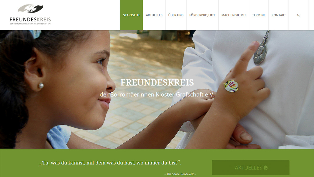 In sehr guter Zusammenarbeit mit den Verantwortlichen des Freundeskreises der Borromäerinnen Kloster Grafschaft e.V.  ist eine tolle und informative Website des Vereins entstanden. Die Ordensschwestern des hl. Borromäus setzen sich in Deutschland, Israel, Ägypten und Rumänien für in Not und Armut geratene Menschen, Kranke und für die Bildung und Erziehung ein. Sie zeigen, dass über alle Grenzen hinweg mit Respekt und Toleranz ein friedliches Miteinander unterschiedlicher Kulturen und Religionen möglich ist. Der Freundeskreis der Borromäerinnen unterstützt die humanitären und caritativen Projekte, sowie den Bildungsauftrag der Kongregation finanziell und mit Sachleistungen. Deshalb freuen sie sich immer über Spenden oder neue Freunde und Förderer im Verein.