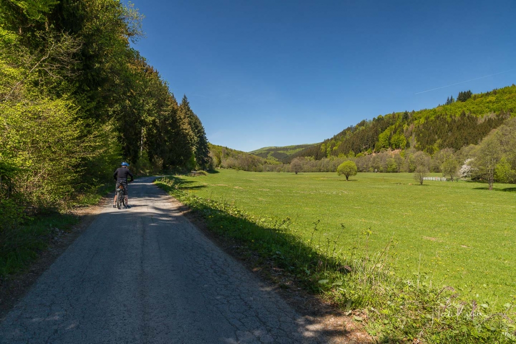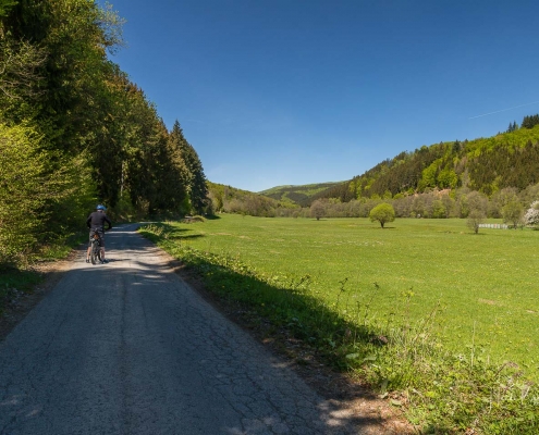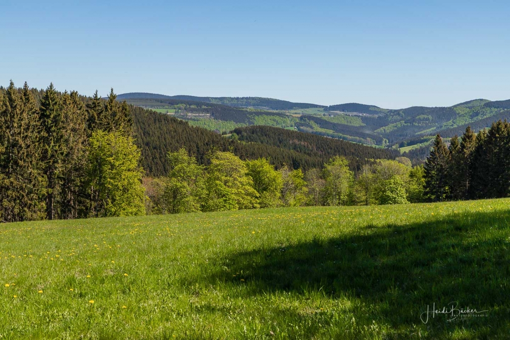 Kürzlich haben wir eine Radtour durch das frühlingsfrische Orketal unternommen. Gestartet sind wir an der Winterberger Kreuzbergkapelle in Richtung Franzosenkreuz bei Züschen. Allerdings sind wir schon vor Züschen nach links in die Medebacher Bucht abgebogen. Durch die „Toskana des Sauerlandes“ radelten wir bis zu den kleinen Ortschaften Hesborn und Medelon. Ab Medelon führte uns dann die Route durch das idyllische Orketal zurück bis nach Elkeringhausen. Im Tal der Orke habe ich zu meiner Freude die ersten blühenden Orchideen in diesem Frühjahr entdeckt. Danach ging es weiter zur Ehrenscheider Mühle und kurz danach links ab in das urige Helletal. Nach einem Abstecher zum „Bodensee“ kraxelten wir anschließend mit den Rädern sehr steil bergan bis in die Wernsdorfer Straße nach Winterberg. Oben angekommen bot sich nochmal ein toller Blick über das Tal der Orke und das Dörfchen Elkeringhausen.