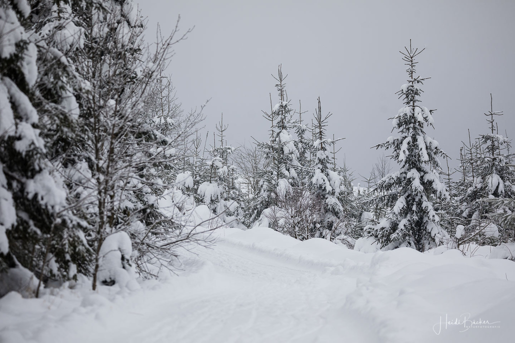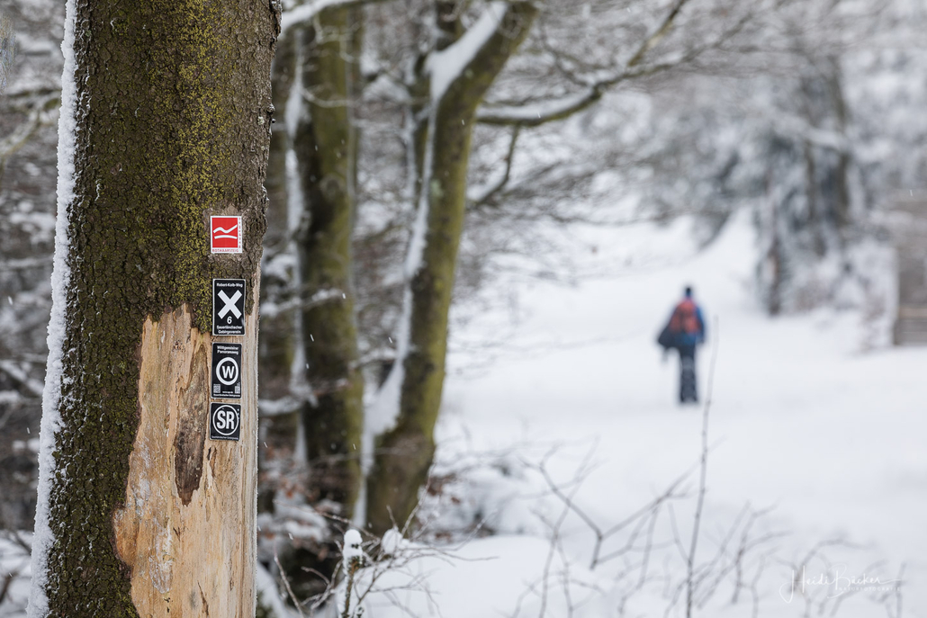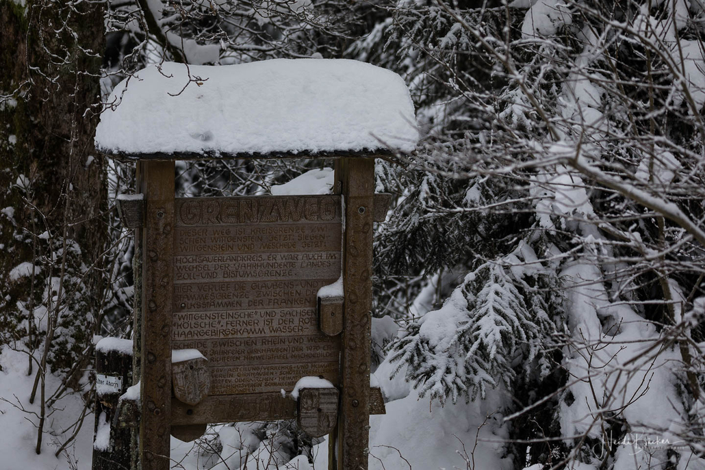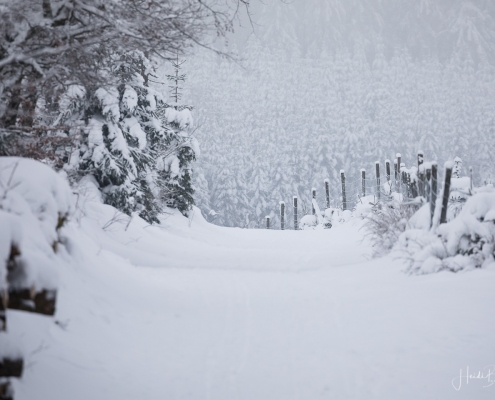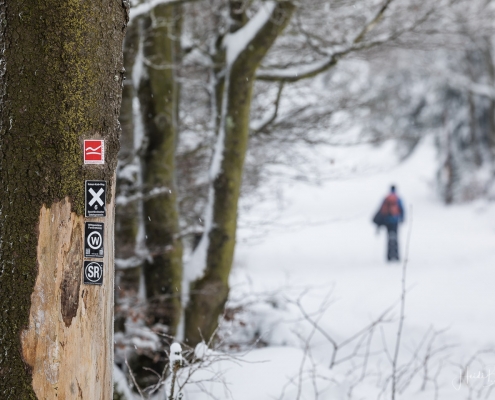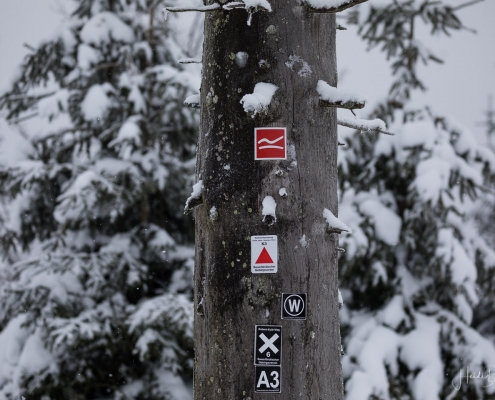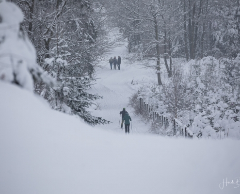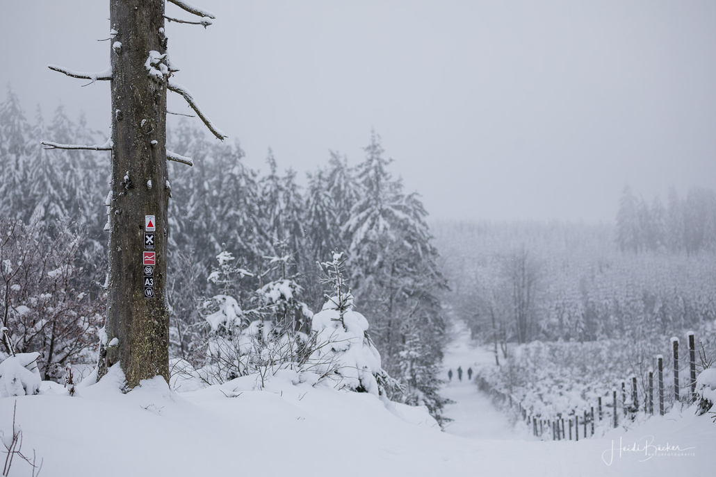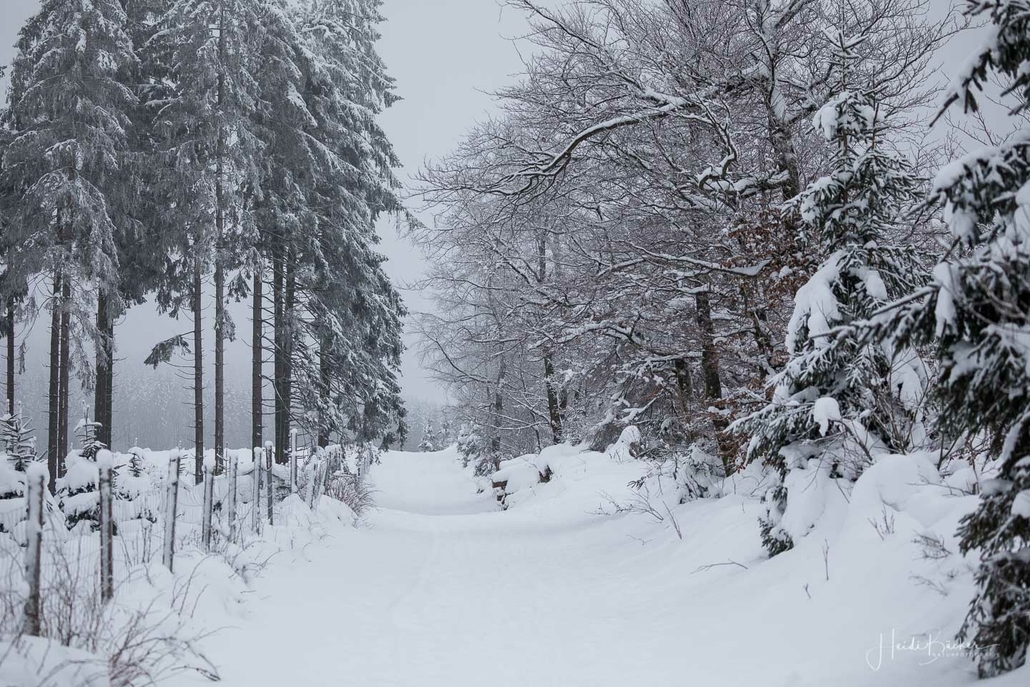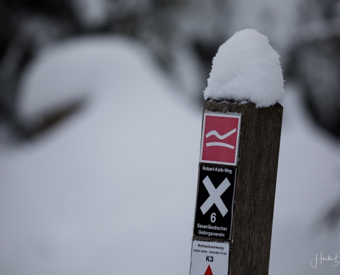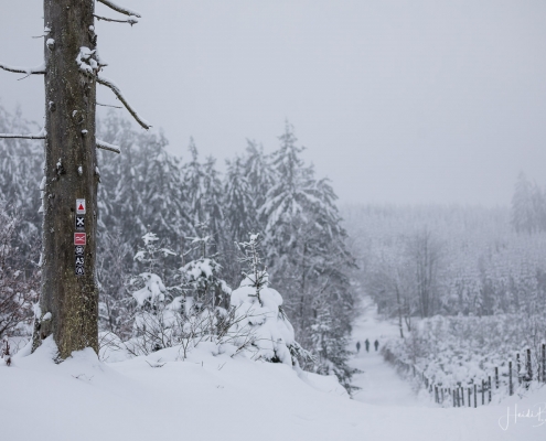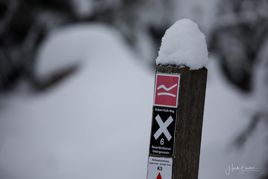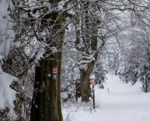 Heute Morgen bin ich über den Grenzweg ( Rothaarsteig ) vom Albrechtsplatz ( 725 m ü NN ) in Richtung Schanze gewandert und konnte dabei die wundervolle Winterlandschaft intensiv genießen und einige schöne Schneefotos machen. Der frischgefallene Schnee knirschte unter den Schuhen und von oben rieselten immer noch ein paar Flocken. Auf dem Rothaarkamm liegt momentan sehr viel Schnee – nur schade, dass in diesem Jahr keine Loipe gezogen ist.