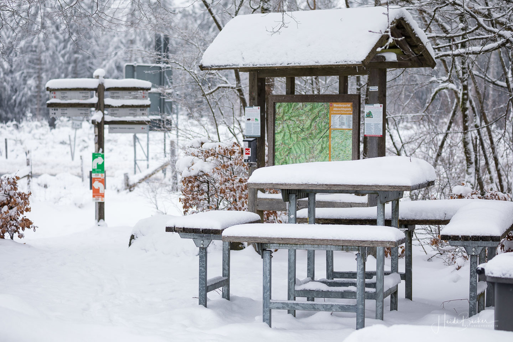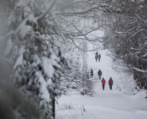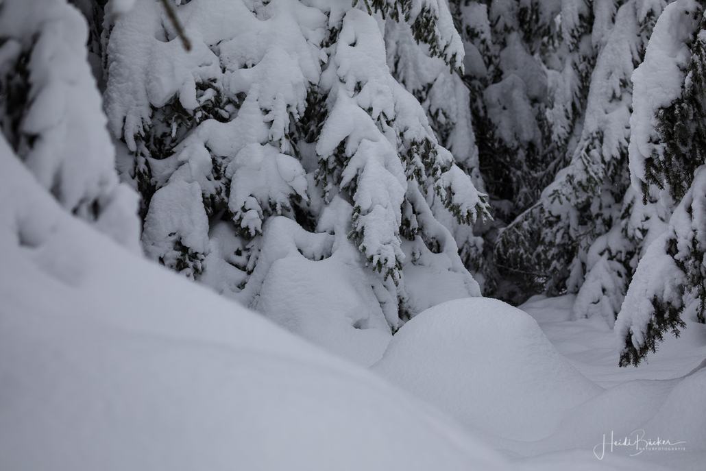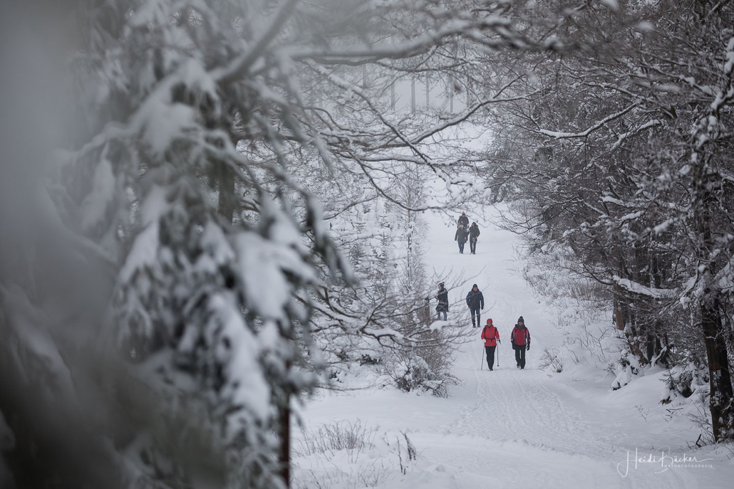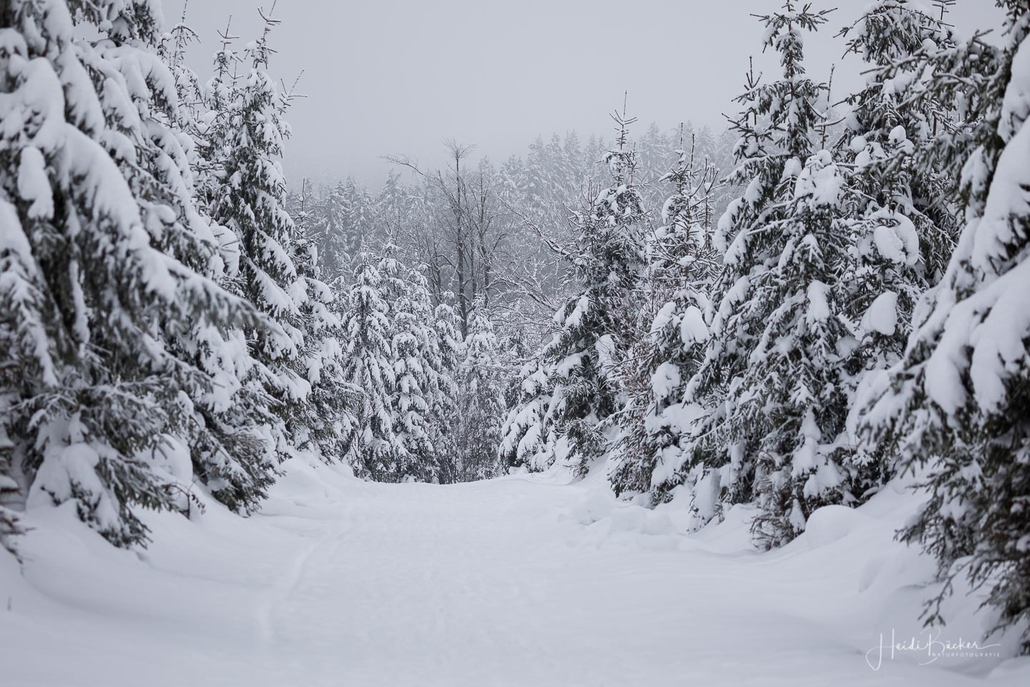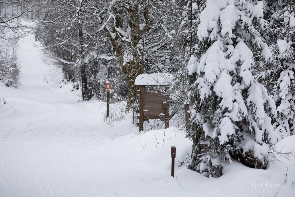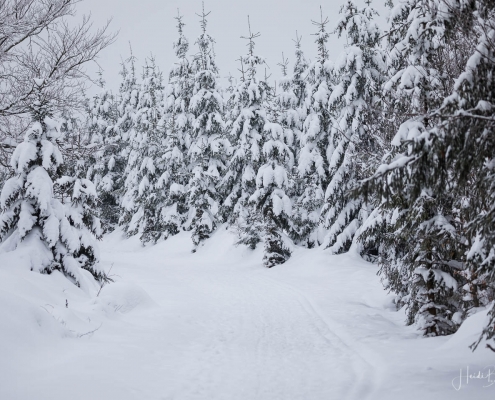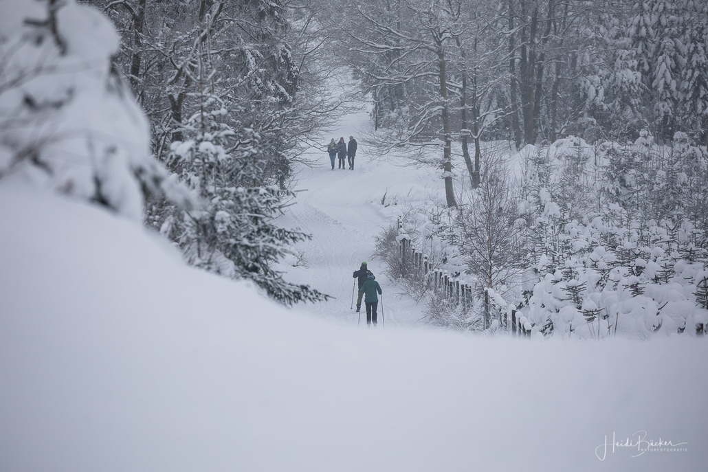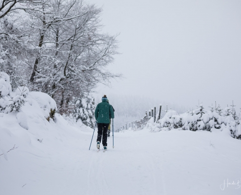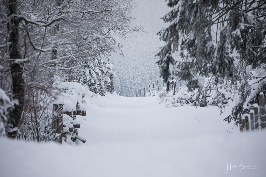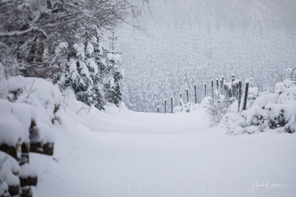 Heute Morgen bin ich über den Grenzweg ( Rothaarsteig ) vom Albrechtsplatz ( 725 m ü NN ) in Richtung Schanze gewandert und konnte dabei die wundervolle Winterlandschaft intensiv genießen und einige schöne Schneefotos machen. Der frischgefallene Schnee knirschte unter den Schuhen und von oben rieselten immer noch ein paar Flocken. Auf dem Rothaarkamm liegt momentan sehr viel Schnee – nur schade, dass in diesem Jahr keine Loipe gezogen ist.