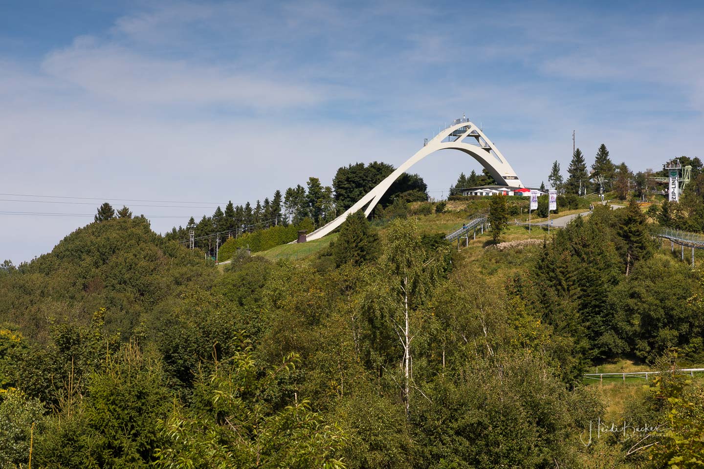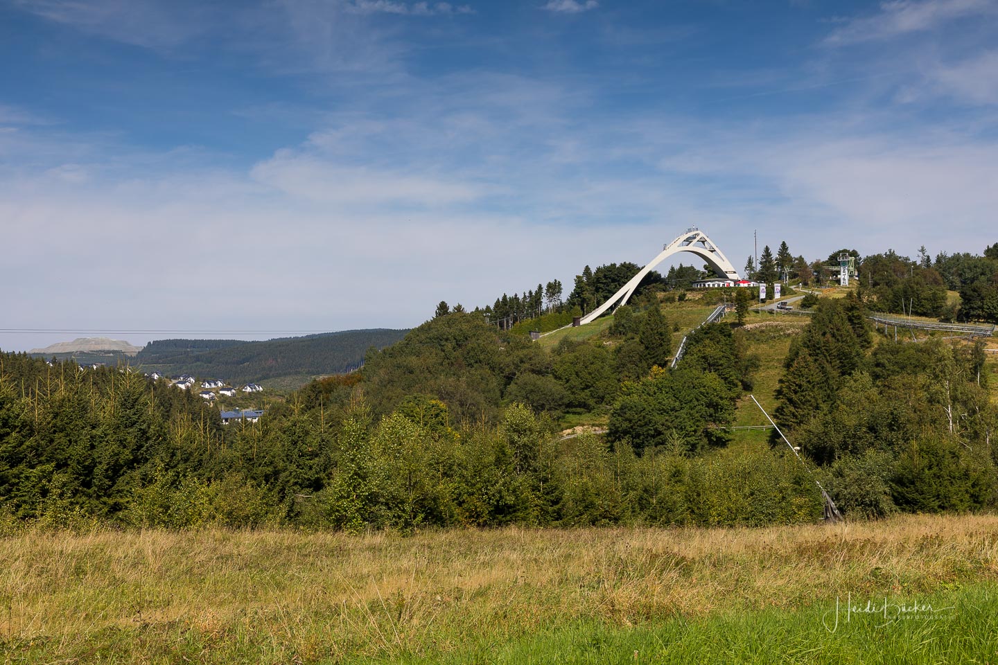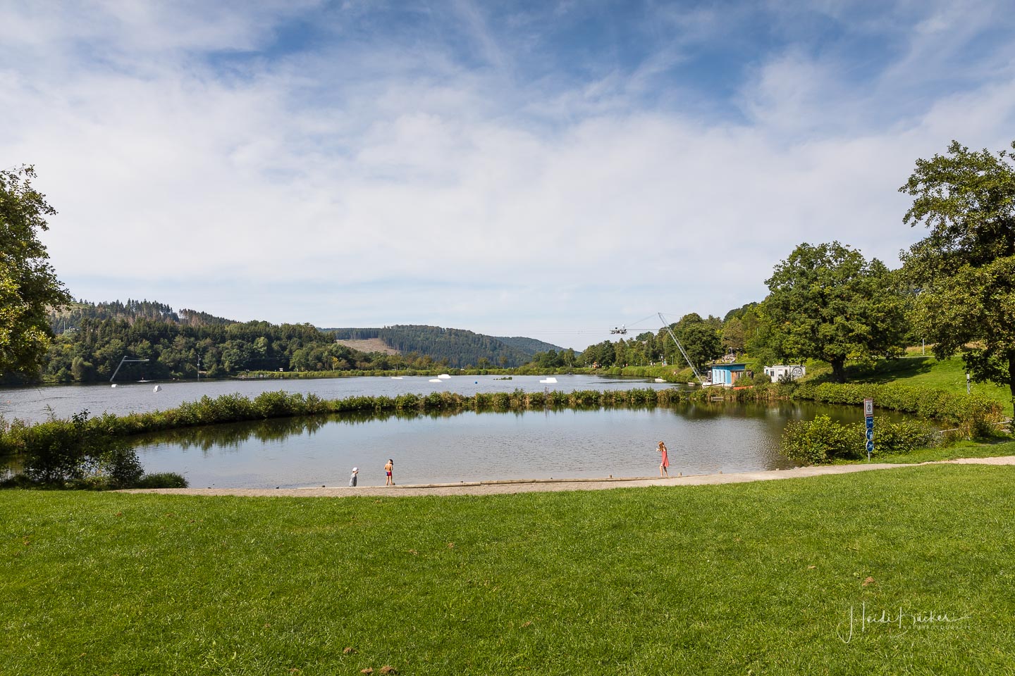 Startpunkt unserer 47 Kilometer langen E-Bike-Rundtour ist Schmallenberg-Westfeld. Von hier geht es über Ohlenbach, vorbei am Hubertusstein und der Schwedenhütte bis Altastenberg. Ab Altastenberg radeln wir über einen Waldweg, parallel zur B 480, bis zum Haus Nordhang und von da weiter über den Radweg nach Winterberg. In Winterberg geht es hoch zur St. Georg-Schanze und von dort ein Stückchen über den Rothaarsteig zum Rauhen Busch und weiter zum Kuhlenberg. Vom Kuhlenberg führt unsere Rundtour über den Ruhrtalradweg direkt bis Niedersfeld. In der Ortsmitte von Niedersfeld biegen wir rechts ab zum Hillebachsee. Ein kleiner See mit Wasserski- und Wakeboard-Anlage, Badebucht, sowie Café und Restaurant.