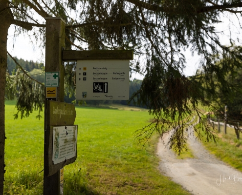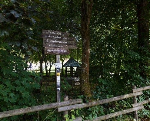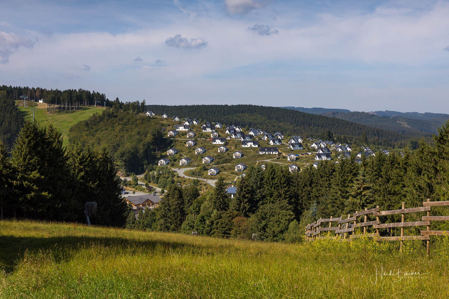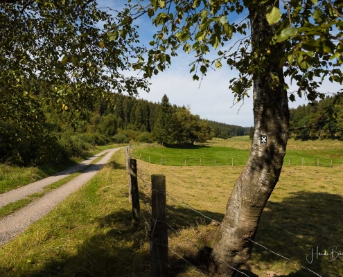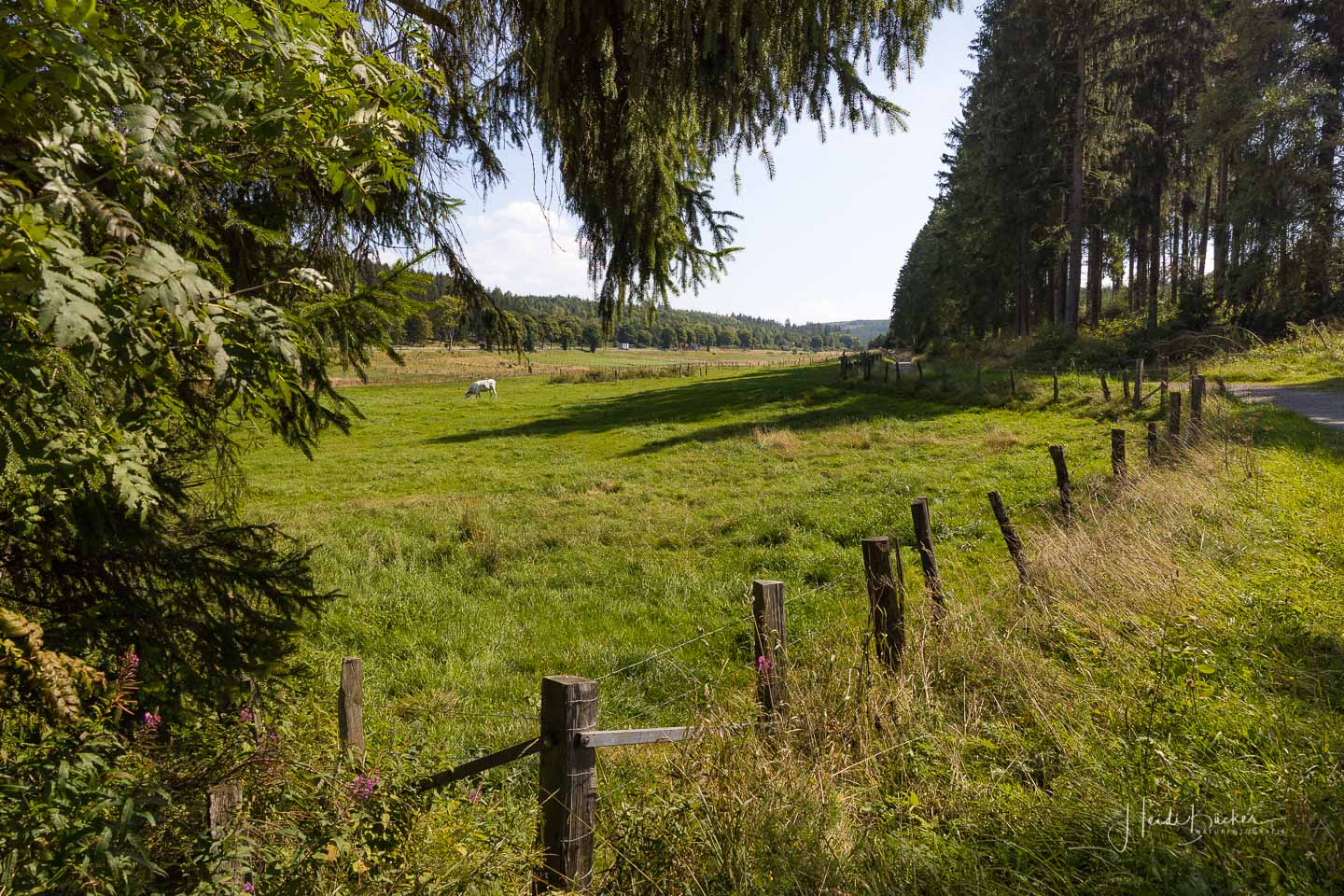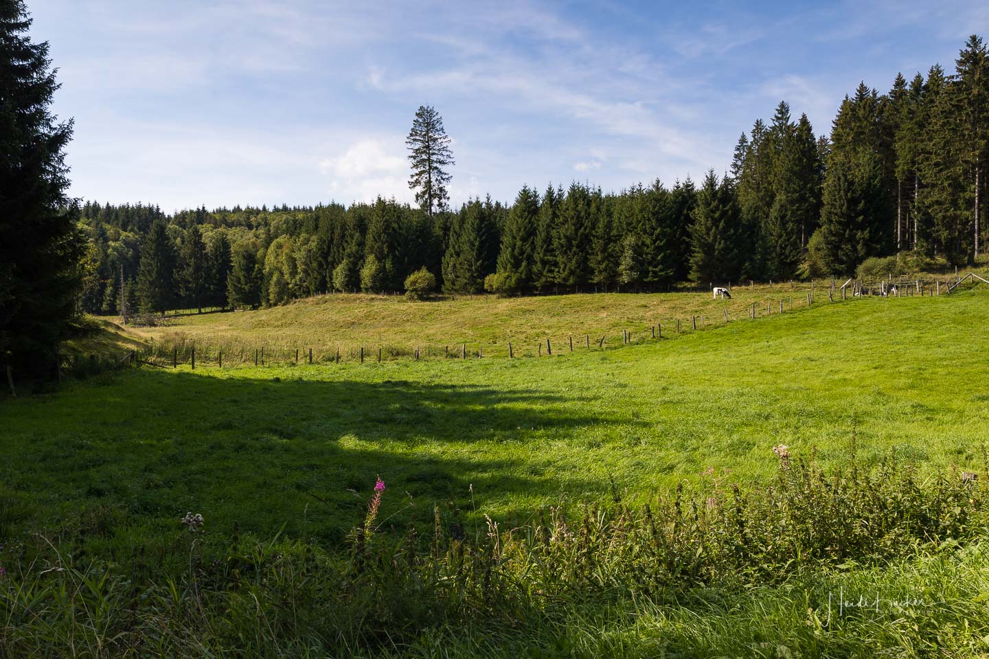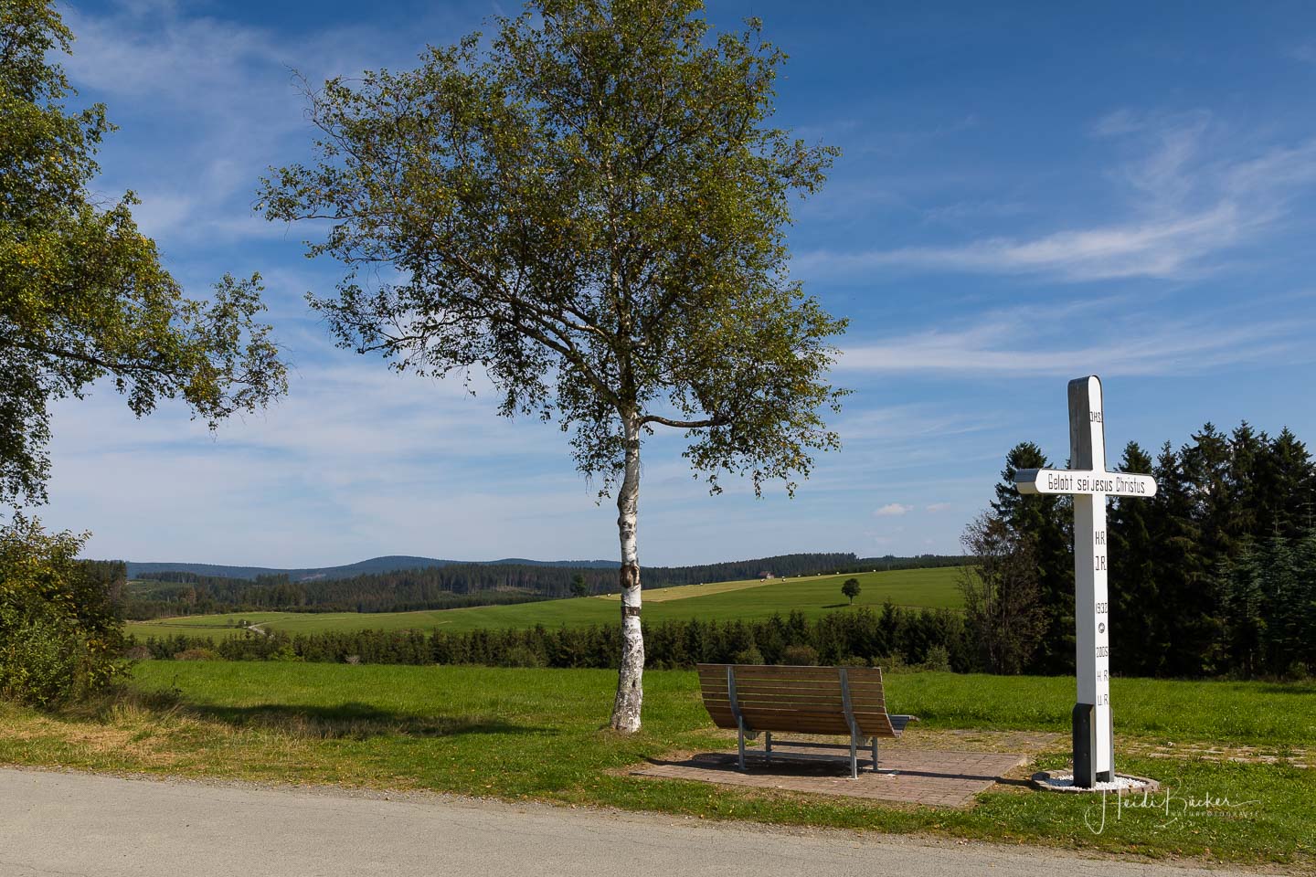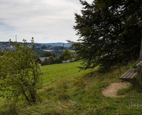 Nach einer kurzen Rast setzen wir unsere E-Bike-Tour fort. Es geht durch das Hilletal nach Grönebach – vorbei an der St. Lambertus-Kirche bis zum Dorfbrunnen in der Westernau. Ab hier folgen wir zuerst einem Rothaarsteig-Zubringerweg zum Botzenhagen. Dort treffen wir auf den Rothaarsteig und folgen diesem bis zur Ruhrquelle. Von der Ruhrquelle ist es nicht mehr weit bis zum Dumel in Winterberg. Wir radeln am Bahnhof vorbei und über den Marktplatz ( Untere Pforte ), bevor es dann – stadtauswärts – den Waltenberg in Richtung Bobbahn rauf geht. Von hier fahren wir über den Radweg zum Sahnehang und folgen dann ca. 150 Meter der L640 in Richtung Ohlenbach, bevor es in einer scharfen Rechtskurve links in einen Waldweg geht. Über diesen Weg radeln wir durch den Hohen Knochen zurück zu unserem Ausgangspunkt nach Westfeld.