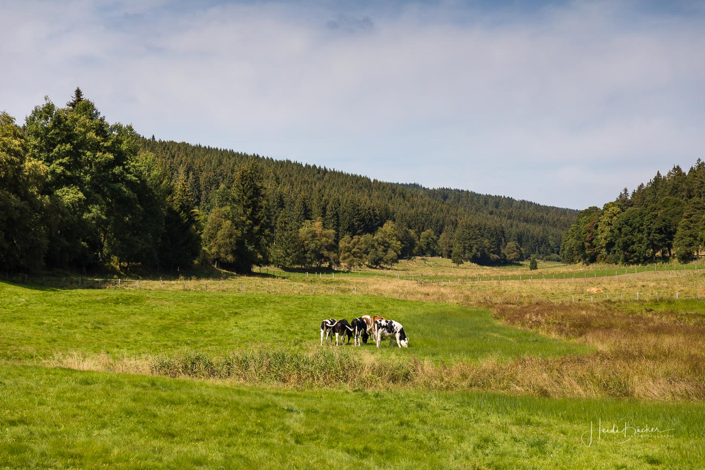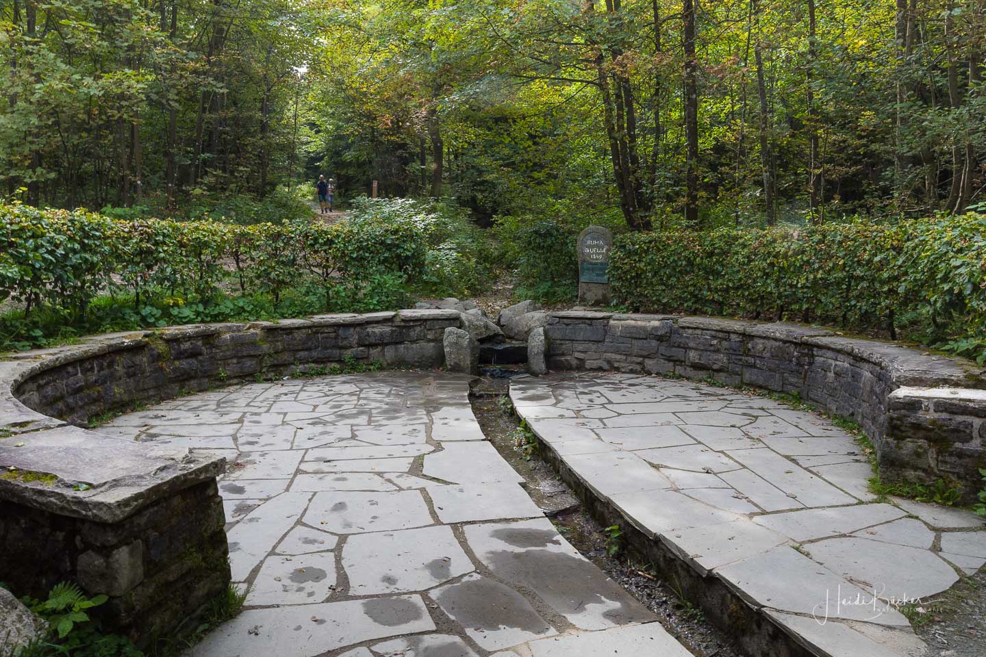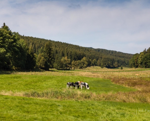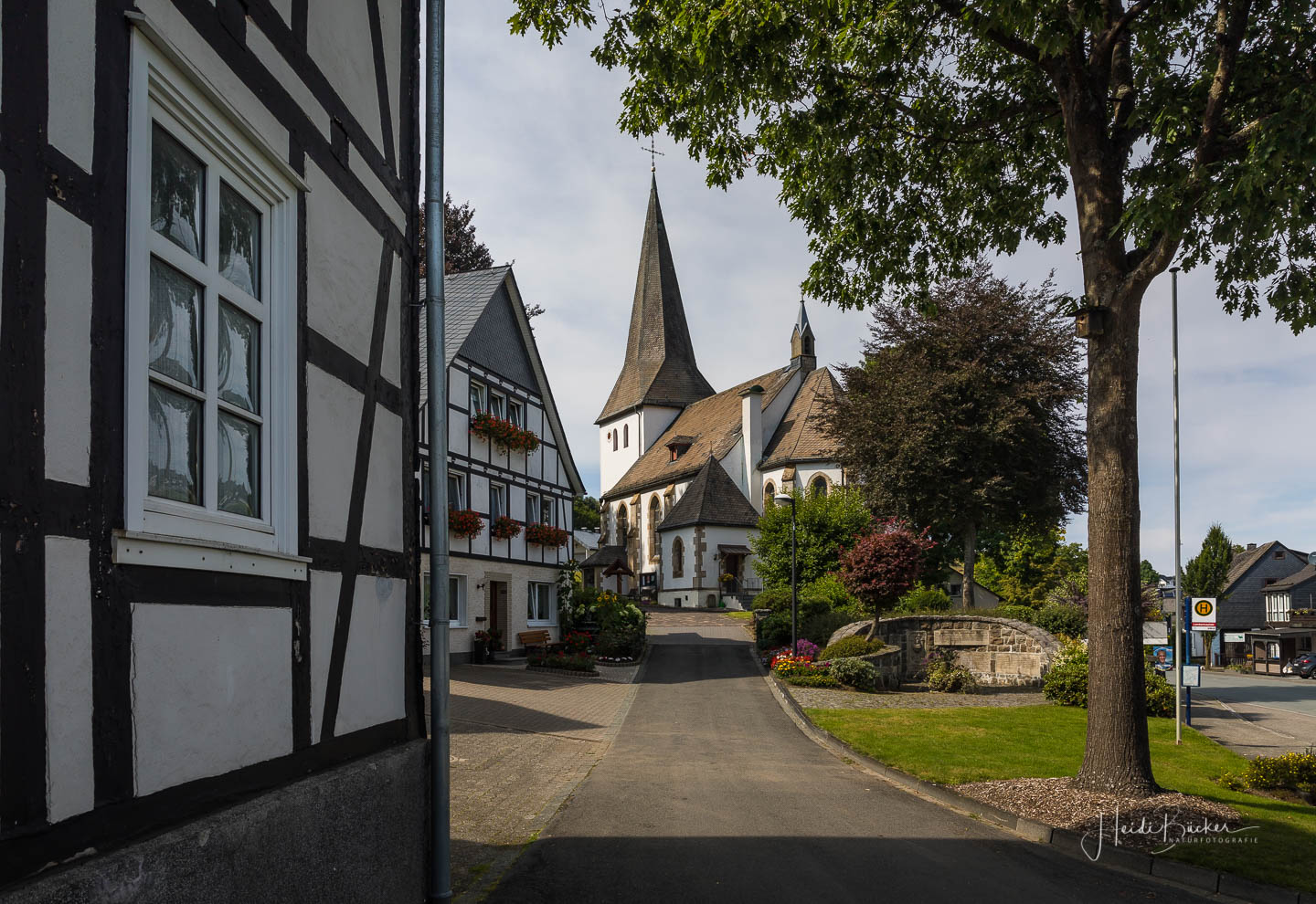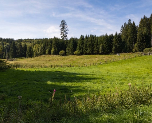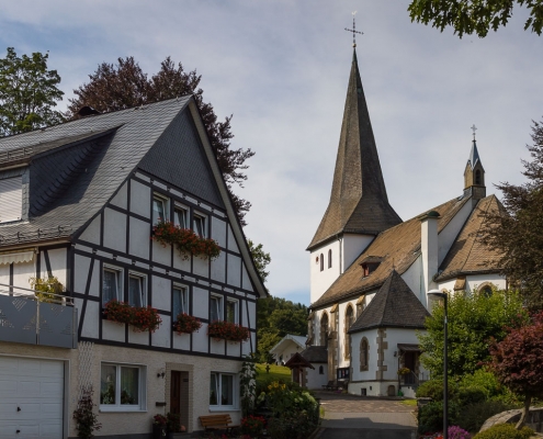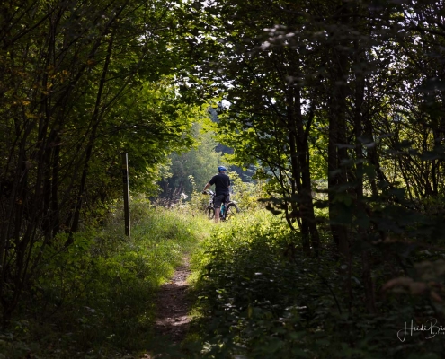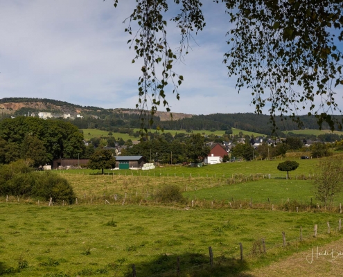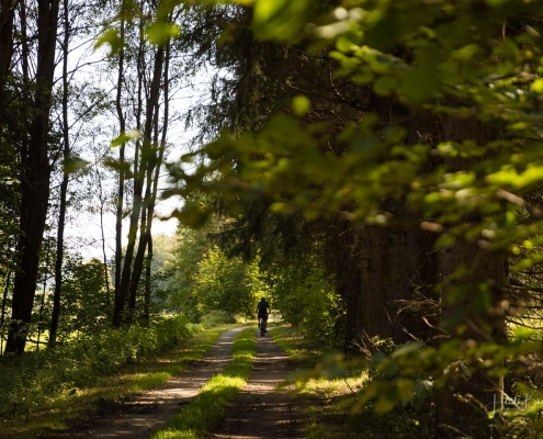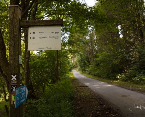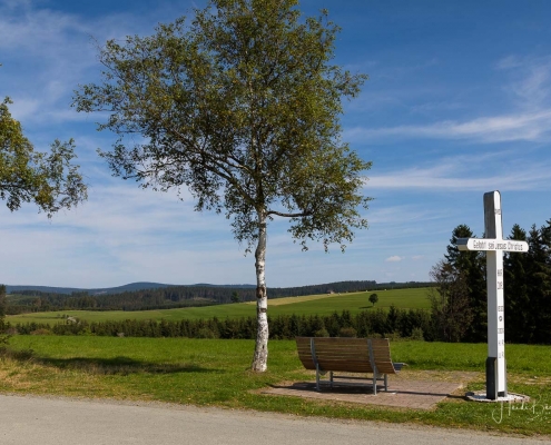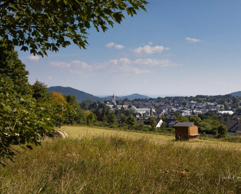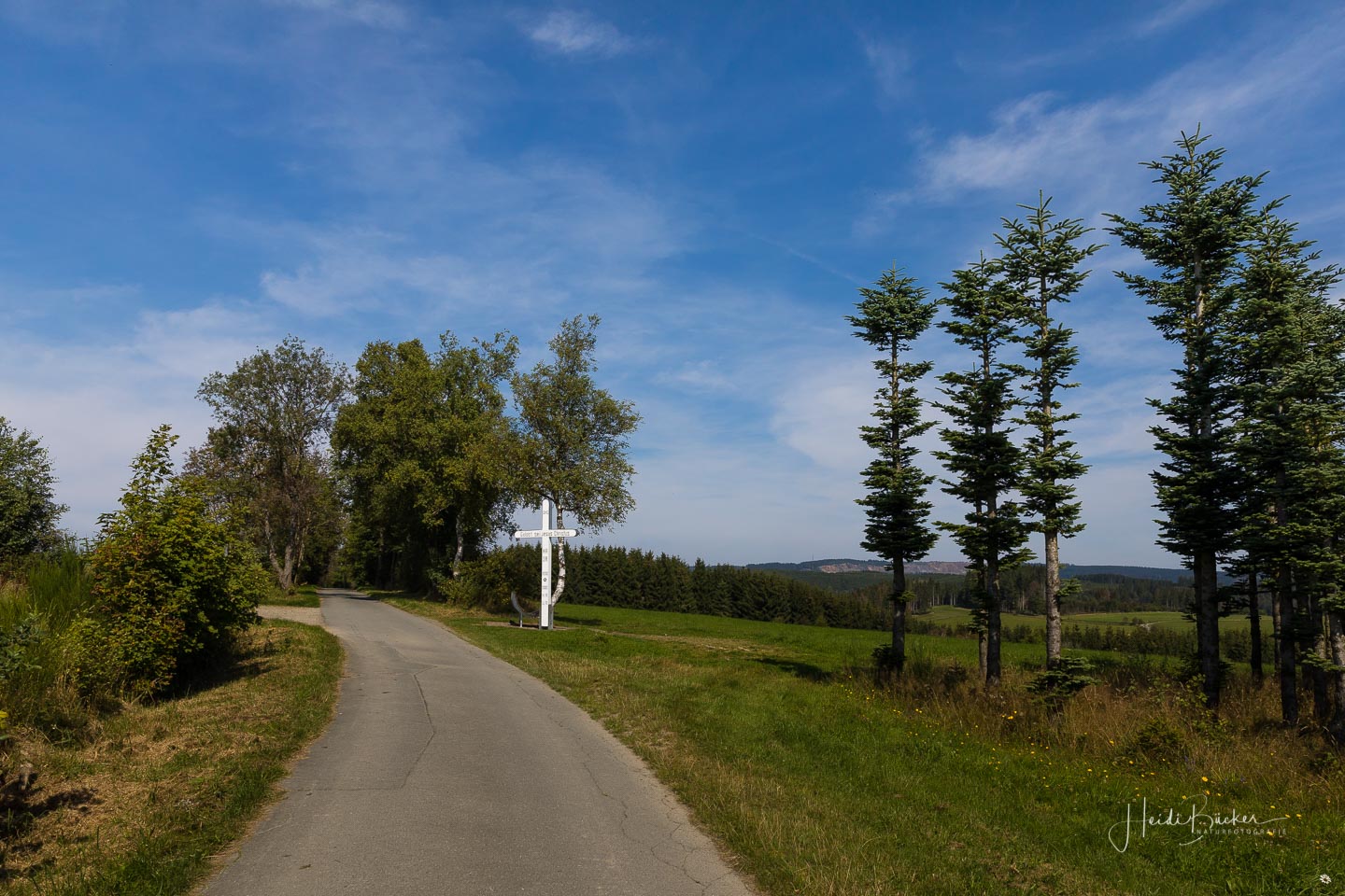 Nach einer kurzen Rast setzen wir unsere E-Bike-Tour fort. Es geht durch das Hilletal nach Grönebach – vorbei an der St. Lambertus-Kirche bis zum Dorfbrunnen in der Westernau. Ab hier folgen wir zuerst einem Rothaarsteig-Zubringerweg zum Botzenhagen. Dort treffen wir auf den Rothaarsteig und folgen diesem bis zur Ruhrquelle. Von der Ruhrquelle ist es nicht mehr weit bis zum Dumel in Winterberg. Wir radeln am Bahnhof vorbei und über den Marktplatz ( Untere Pforte ), bevor es dann – stadtauswärts – den Waltenberg in Richtung Bobbahn rauf geht. Von hier fahren wir über den Radweg zum Sahnehang und folgen dann ca. 150 Meter der L640 in Richtung Ohlenbach, bevor es in einer scharfen Rechtskurve links in einen Waldweg geht. Über diesen Weg radeln wir durch den Hohen Knochen zurück zu unserem Ausgangspunkt nach Westfeld.