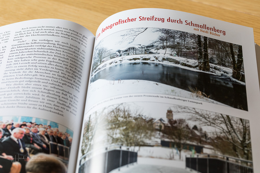 Im Sommer bekam ich vom Podszun-Verlag aus Brilon überraschend eine Bilderanfrage. Für einen Bericht über Schmallenberg im neuen Jahrbuch des Hochsauerlandkreises – u. a. wegen des 775-jährigen Stadtjubiläums – suchte der Verlag Bilder von schönen Stadtansichten und ist so auf mich im Web aufmerksam geworden. Daraus folgte eine sehr nette Zusammenarbeit und letztendlich 10 Seiten mit meinen Fotos im neuen Jahrbuch HSK 2020. Kürzlich ist der 37. Band des Jahrbuchs im Podszun-Verlag erschienen. Schwerpunktthemen sind aktuelle Ereignisse, wie beispielsweise in diesem Jahr der Deutsche Wandertag oder das Schmallenberger Stadtjubiläum, Geschichte, Kultur und gesellschaftliches Leben rund um den Hochsauerlandkreis.