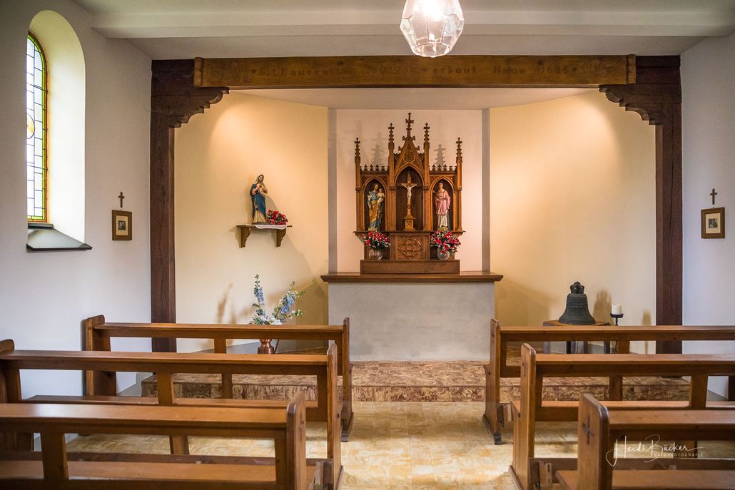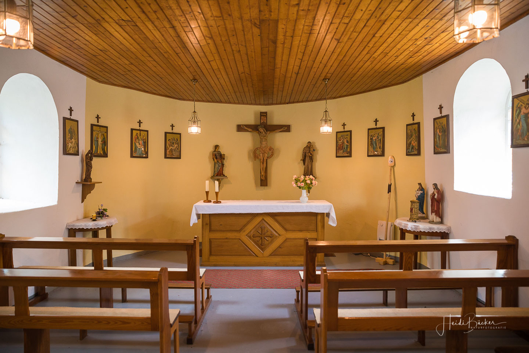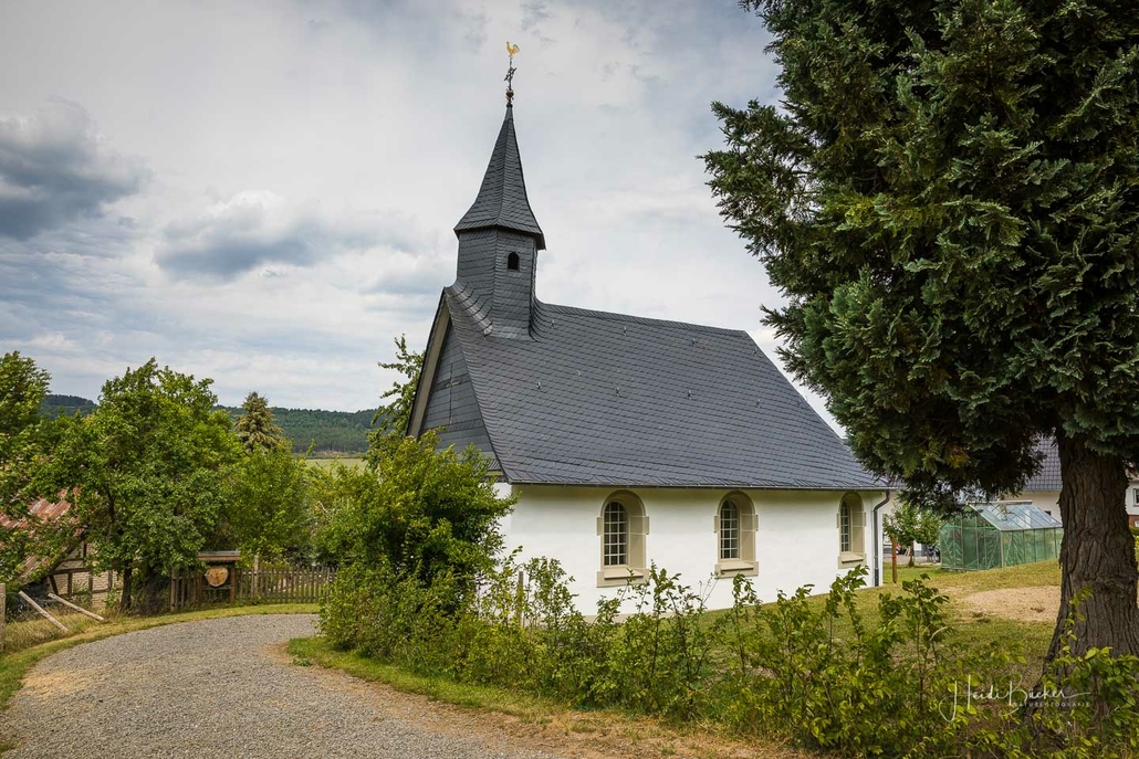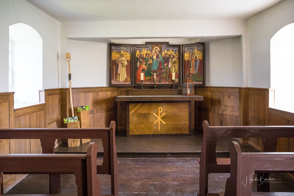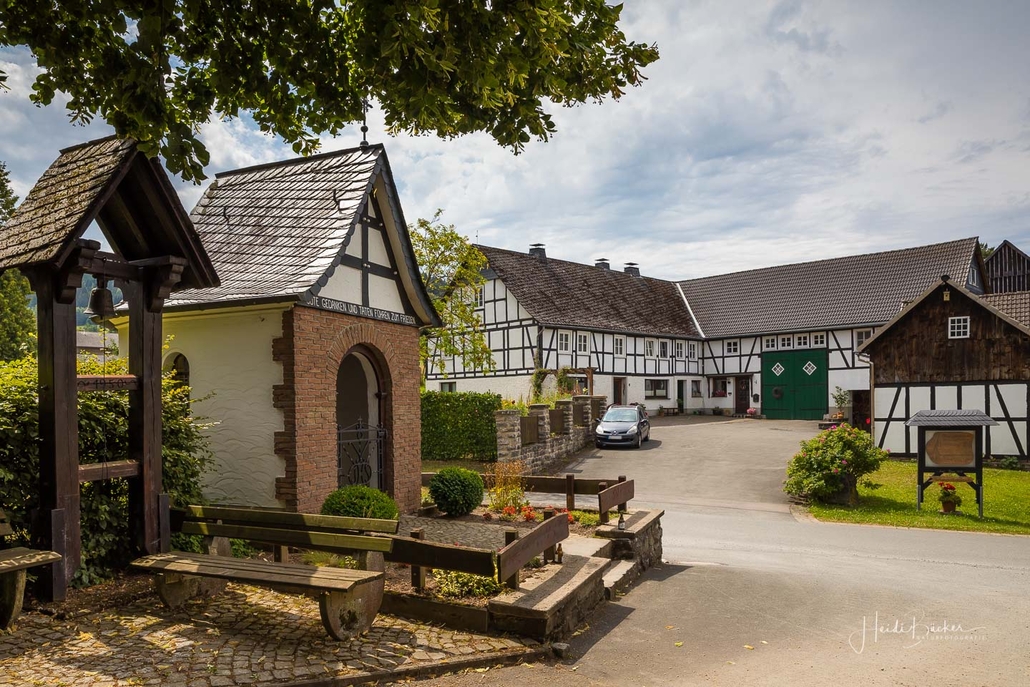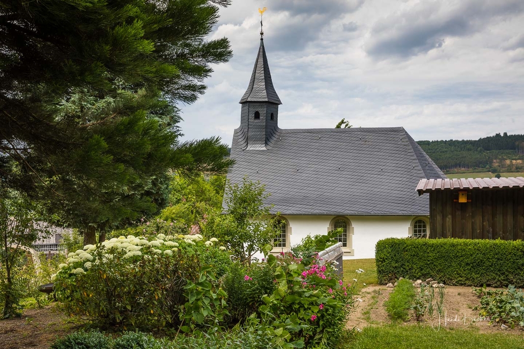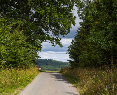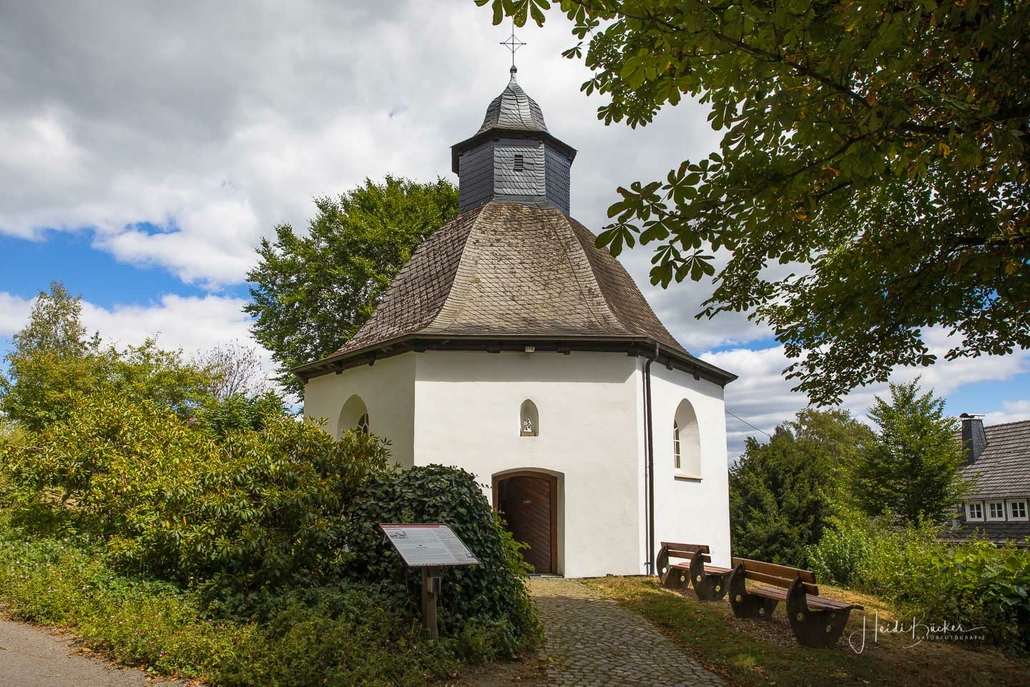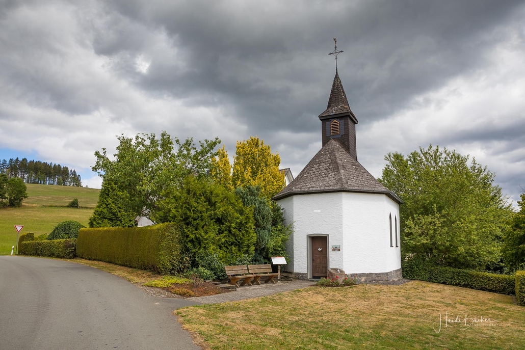 Der erste Pfad befindet sich kurz vor Sögtrop. Bevor es in den Ort geht, führt der Kapellenweg über einen Wiesenweg. Dieser Weg endet allerdings direkt an einer Kuhweide, die zu durchqueren ist. Die Weide betritt und verlässt man durch ein kleines Eisentor, durch das kein Fahrrad passt. Bevor es also auf den Wiesenweg geht, fährt man einfach runter auf die Landstraße und gelangt so direkt in den Ort und zur St. Blasius Kapelle.