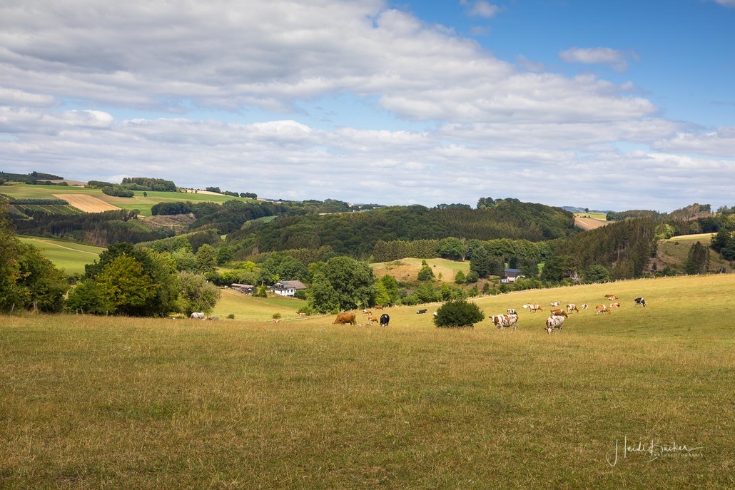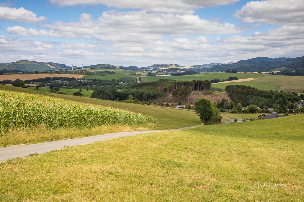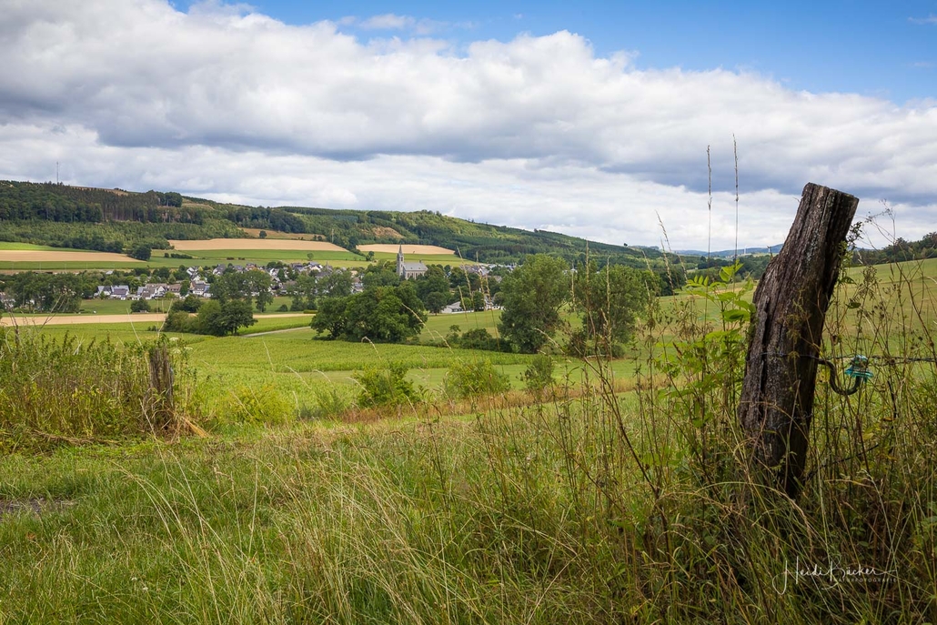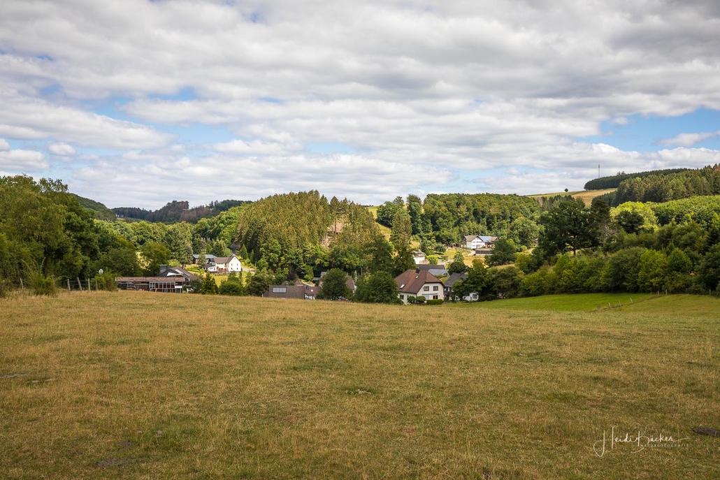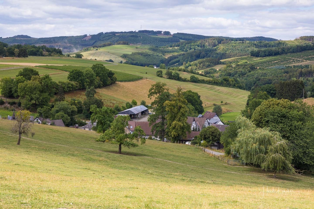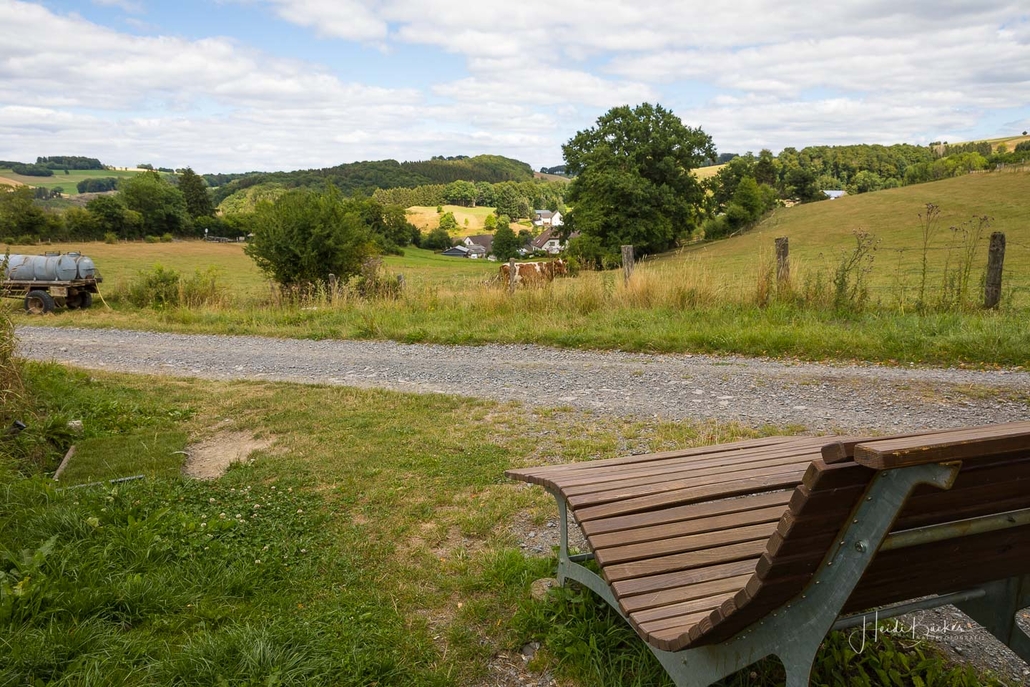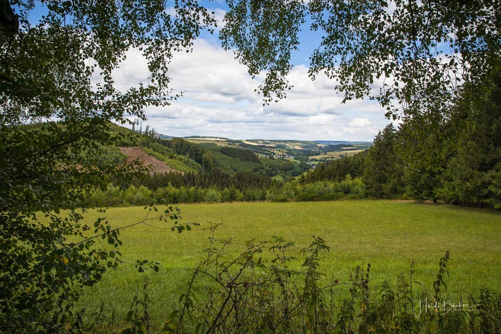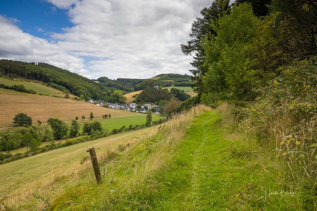 Dieser Wiesenweg oberhalb von Sögtrop endet an einer Kuhweide und muss mit dem Rad umfahren werden