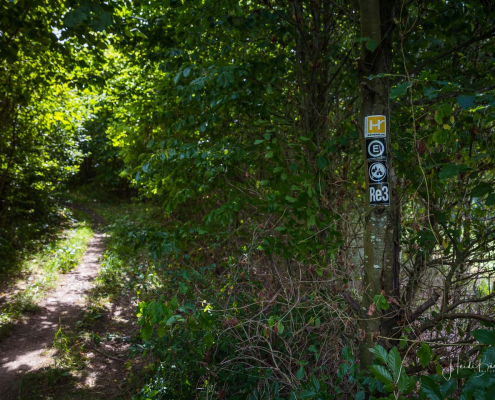 Wegmarkierung: Hauptweg = Schwarze Kapelle und zwei Bäume (Schleife über Sögtrop = Orangefarbene Kapelle und zwei Bäume)