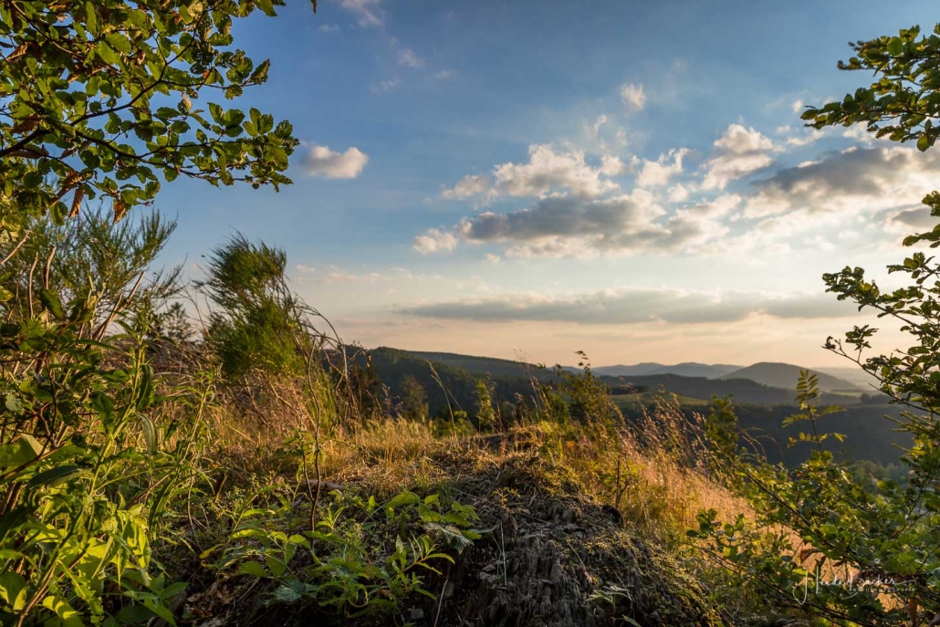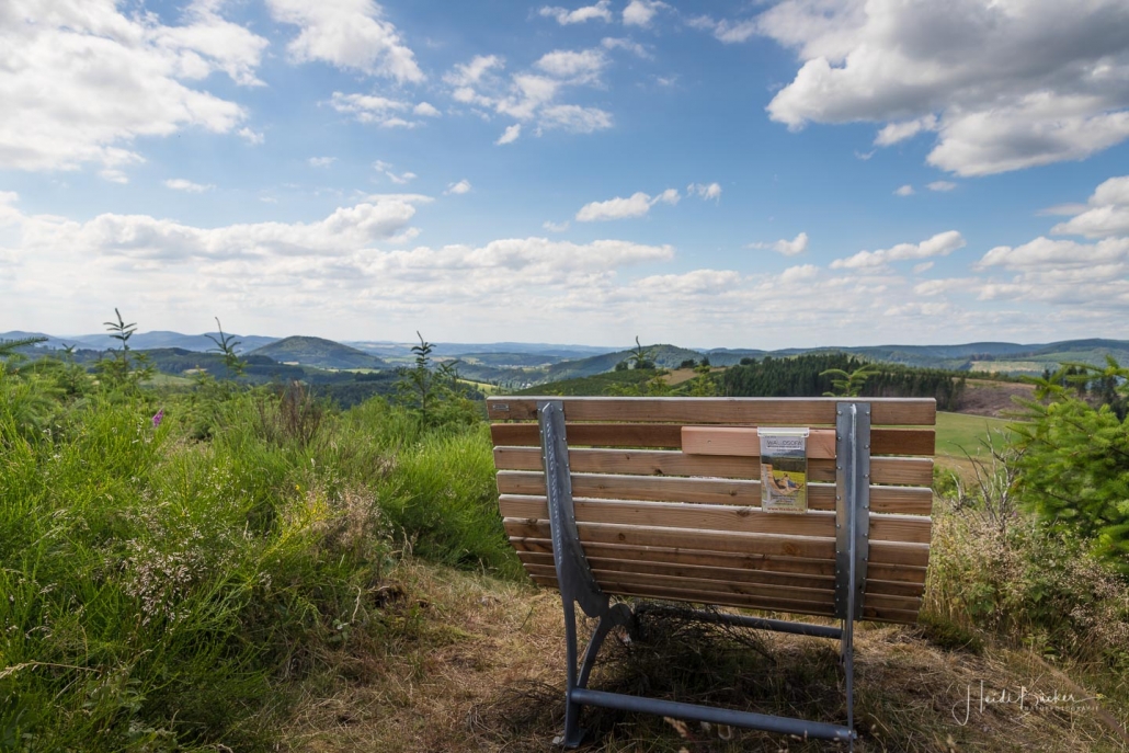 Anfang des Jahres habe ich für mich noch einen weiteren Lieblingsplatz entdeckt, an dem ich mich gerne aufhalte und der sich in unmittelbarer Nähe unseres Hauses in Westfeld befindet, so dass ich ihn leicht zu Fuß erreichen kann. Der Weg dorthin führt über den, im Frühjahr eingeweihten neuen „Westfelder Antoniussteig“, der inzwischen mit dem Deutschen Wandersiegel ausgezeichnet wurde. Man wandert über urige Pfade und schöne Wege, auf denen sich immer wieder tolle Panoramablicke bieten. Die Rundtour beginnt an der Westfelder St. Blasius Kirche, führt durch die Eitmecke hinauf auf den Sattel zwischen Hirschberg und Graftenberg zum Antonius-Häuschen und weiter durch das Naturschutzgebiet Kalte Kirche. Oberhalb der Wachholderheide geht es weiter zu Döpp´s Scheune. Einige Meter hinter der Scheune beginnt für mich eine der schönsten Wegepassagen, denn von dort zweigt ein uriger Pfad direkt bis auf die Ennest ab. Er führt über eine kleine Felsformation, von der man einen herrlichen Blick ins Schmallenberger Sauerland hat und bei schönem Wetter erlebt man hier wundervolle Sonnenuntergänge. Wer es etwas bequemer mag, der findet 50 Meter weiter ein gemütliches Waldsofa. Ein schönes Plätzchen, um sich mit einem Sundowner den Abend zu versüßen und den Sonnenuntergang zu zweit zu erleben … ein Geheimtipp für Romantiker!