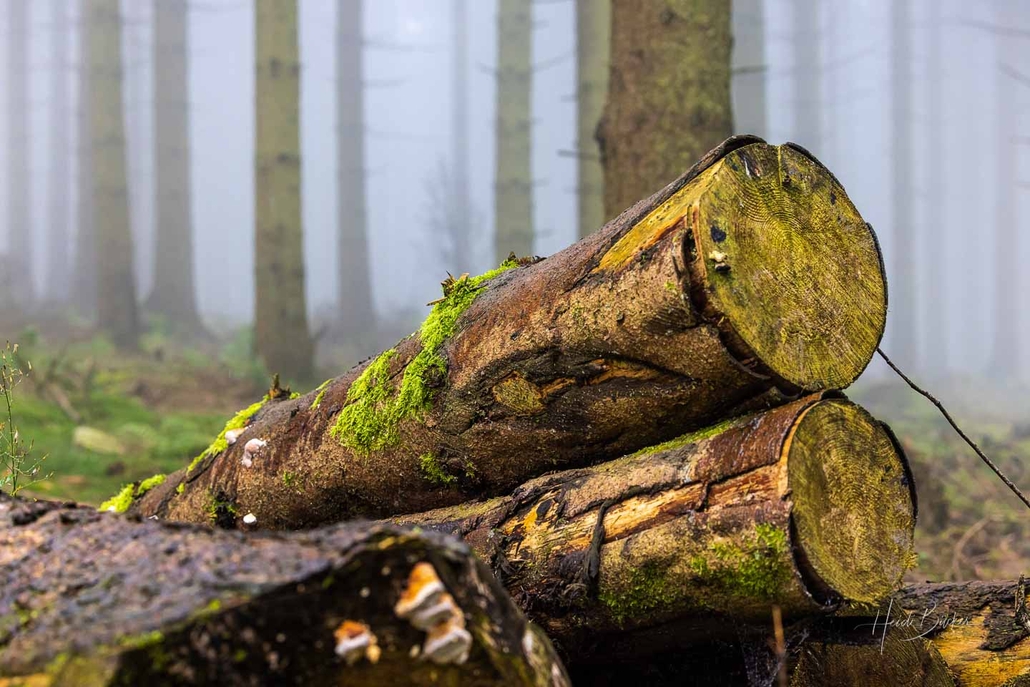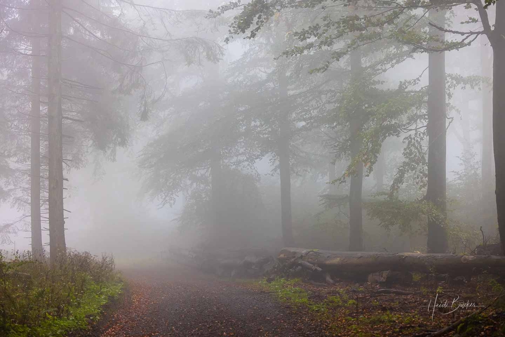 Meine frühmorgendliche Radtour führte hinauf auf den Wesenberg und den angrenzenden Brandenberg. Danach radelte ich noch ein Stück in Richtung Altastenberg, bevor es wieder zurück ins Lennetal ging. Und, obwohl ich die Wege sehr gut kenne, musste ich mich ab und zu neu orientieren. Der dichte Nebel und der zum Teil abgeholzte Fichtenwald, ließen die Umgebung hier und da etwas fremd aussehen.