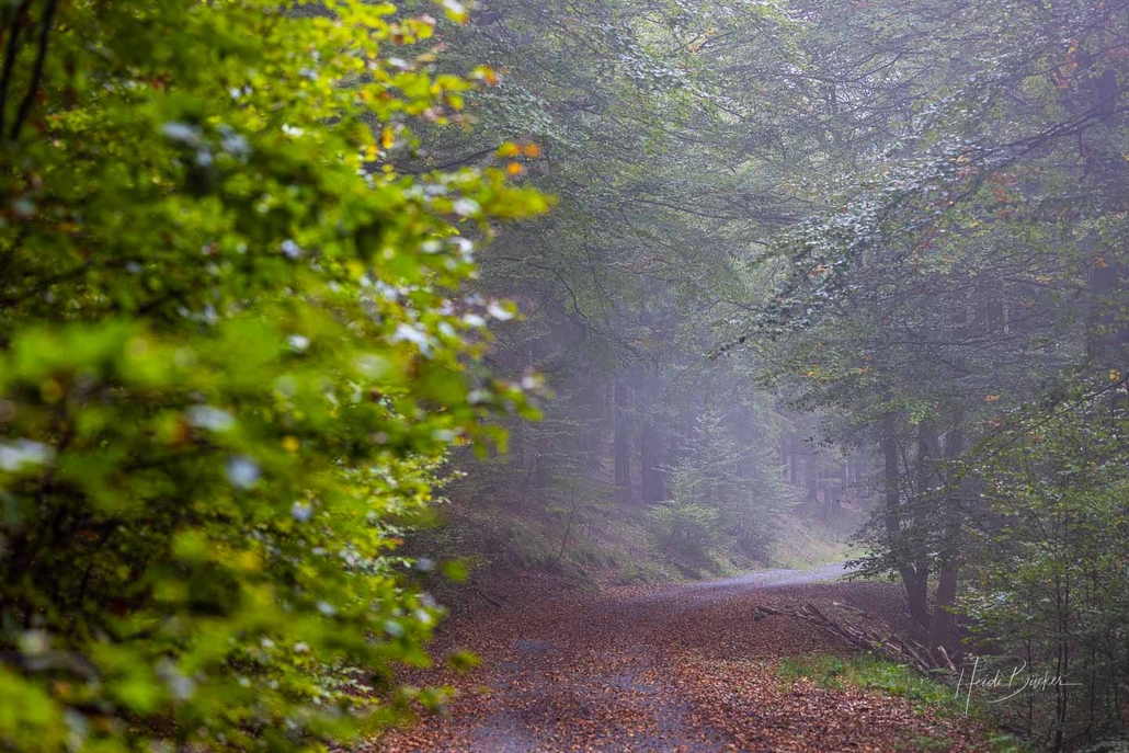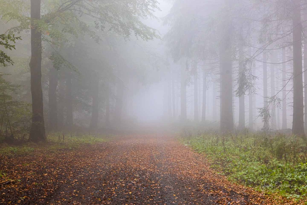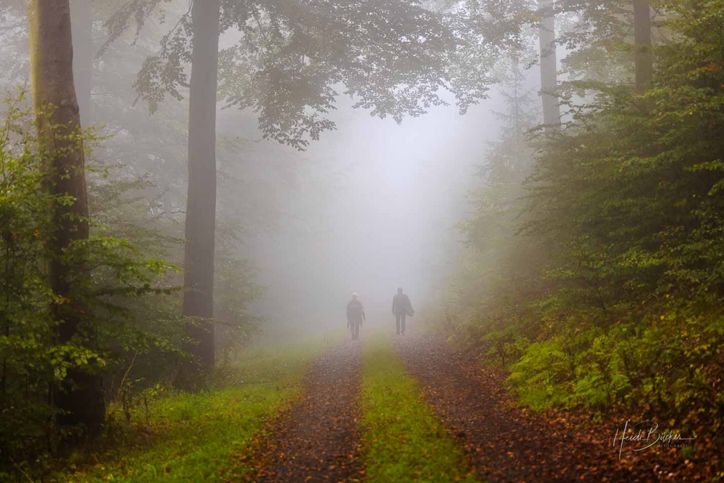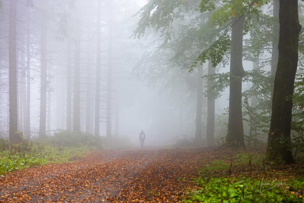 Je höher ich kam, desto dichter wurde der Nebel und eine mystische Atmosphäre umgab mich. An diesem frühen und kühlen Herbstmorgen war ich allerdings nicht die Einzige, die im heimischen Wald unterwegs war. Ab und zu begegneten mir Wanderer und Pilzsammler, die, wie aus dem Nichts aus dem Nebel auftauchten, um kurz darauf wieder in diesem zu verschwinden.