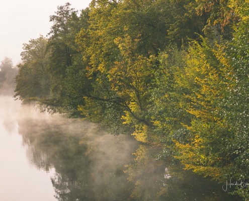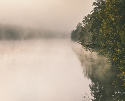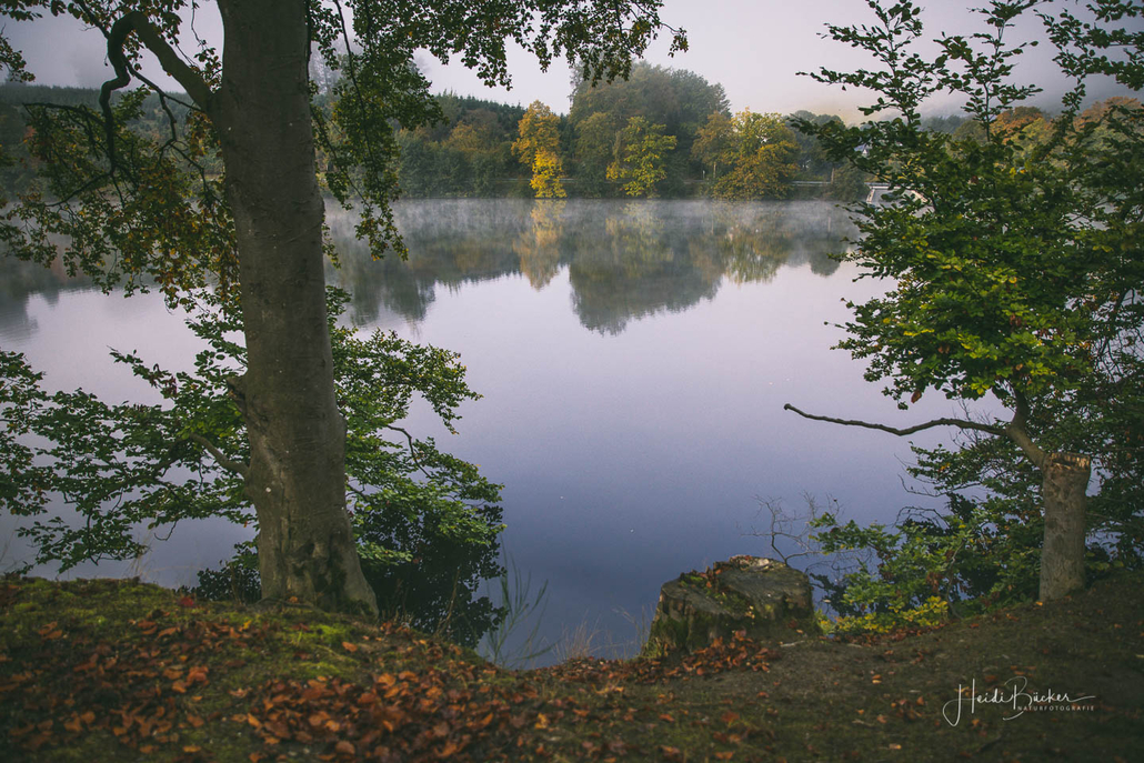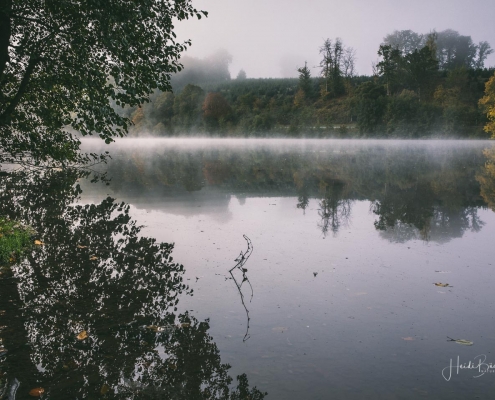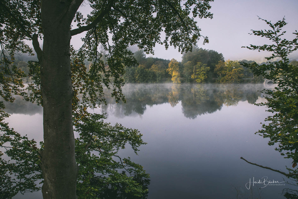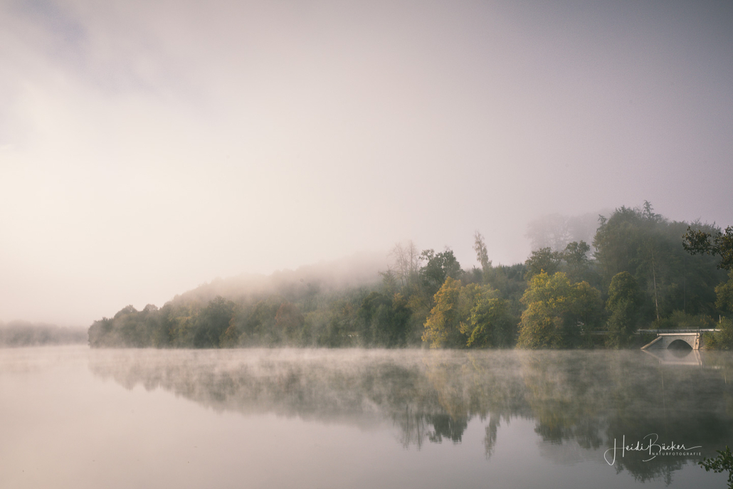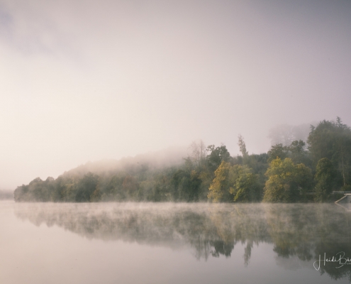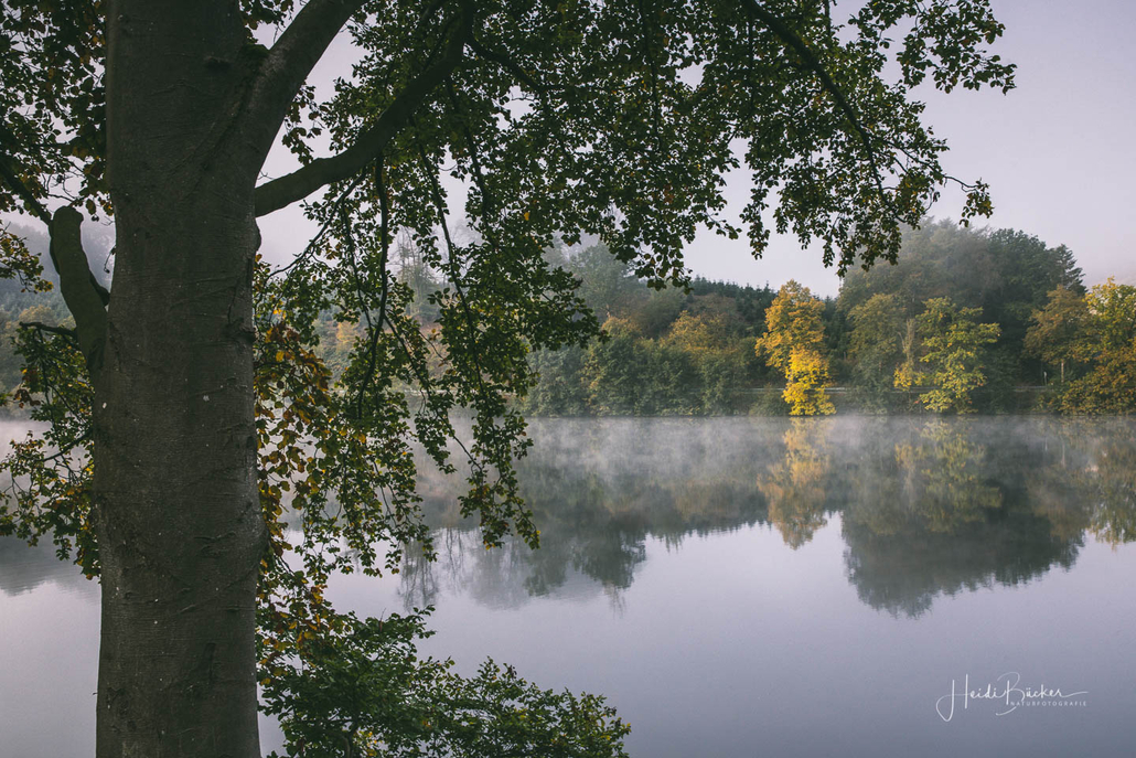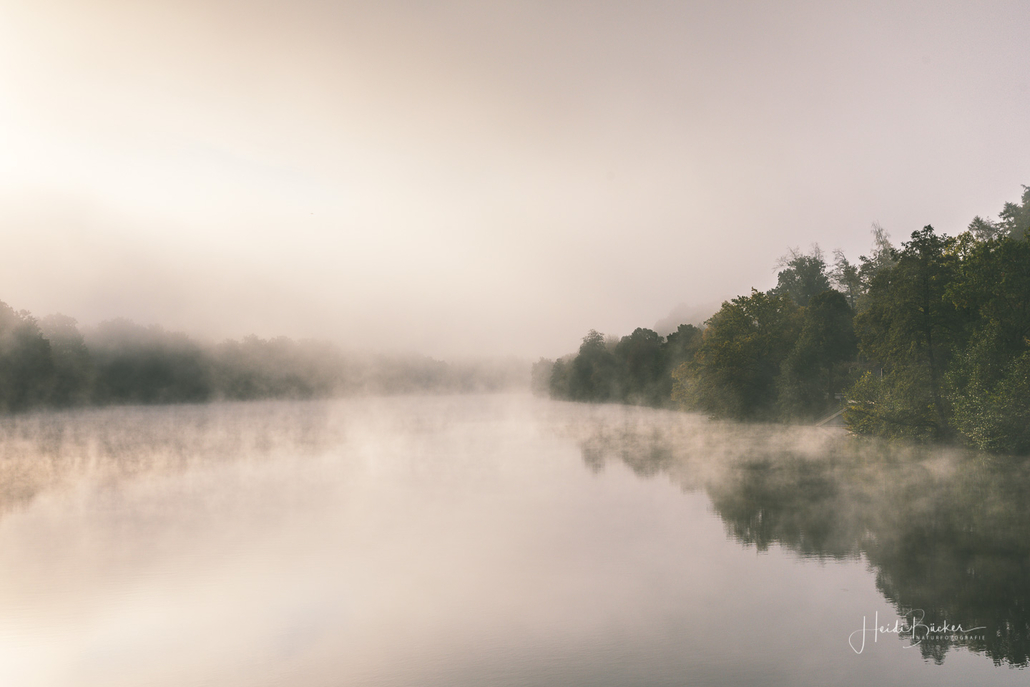 Im Herbst erlebt man oftmals an Seen mystische Morgenstimmungen. Der Nebel hält sich hartnäckig über der Wasseroberfläche und verdunstet nur langsam. Am vergangenen Dienstag konnte ich diese mystische Atmosphäre in Meschede-Mielinghausen am Hennesee-Vorstaubecken mit der Kamera einfangen. Auf der anderen Seite des Damms sah man allerdings kein Wasser, sondern nur die Henne „ohne See“, wie sie sich durch das leere Tal schlängelt. Aufgrund von Bauarbeiten am Hauptdamm wurde viel Wasser abgelassen.