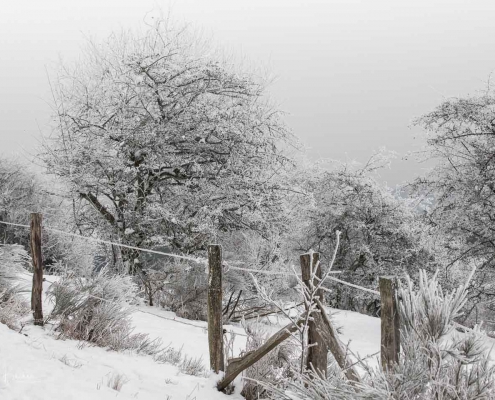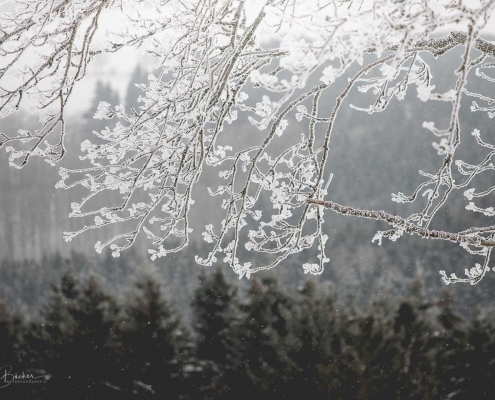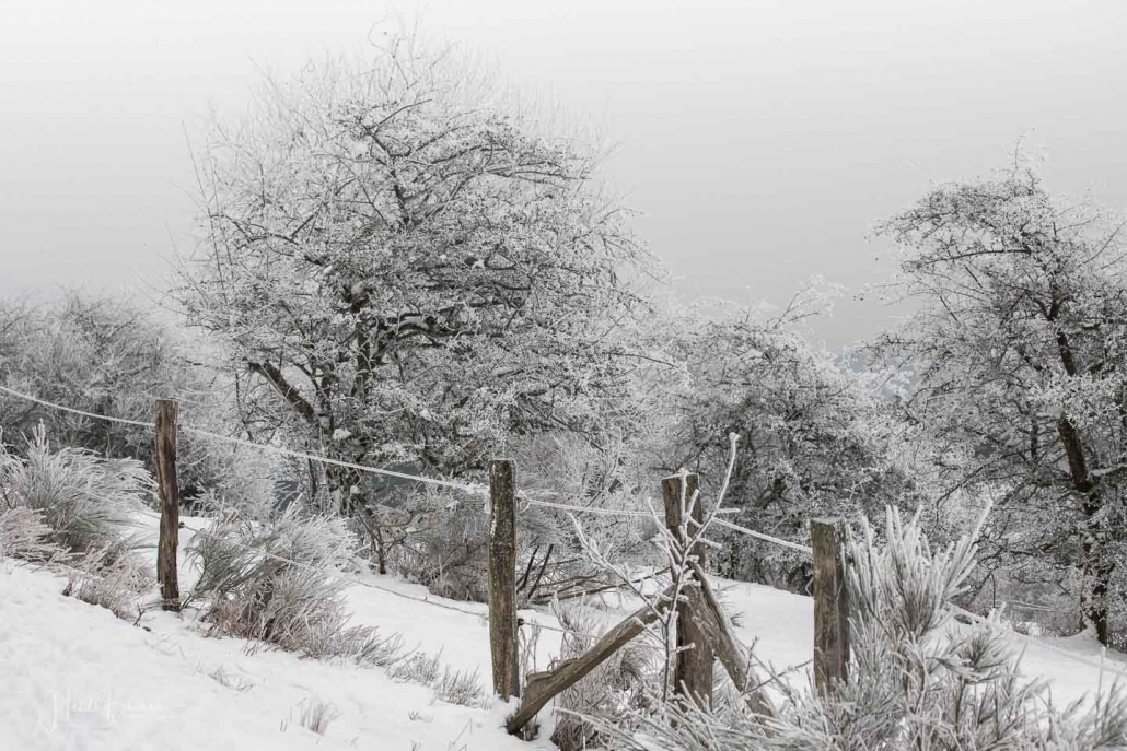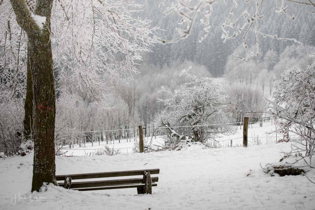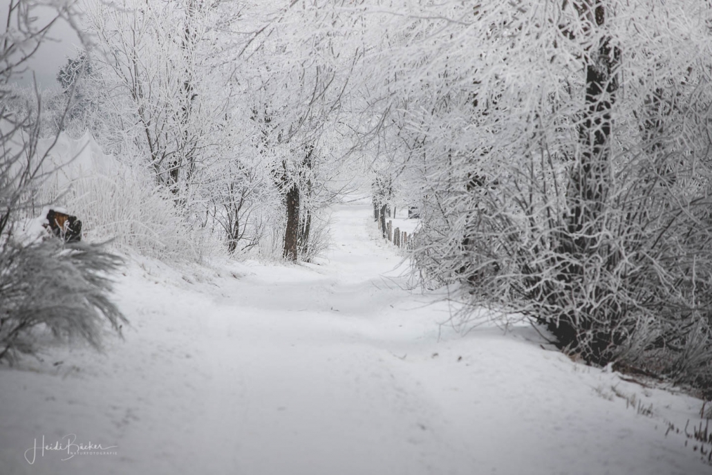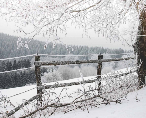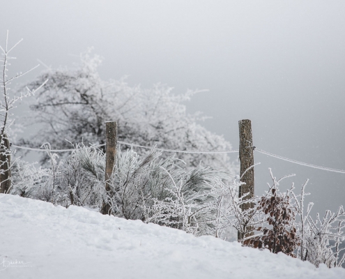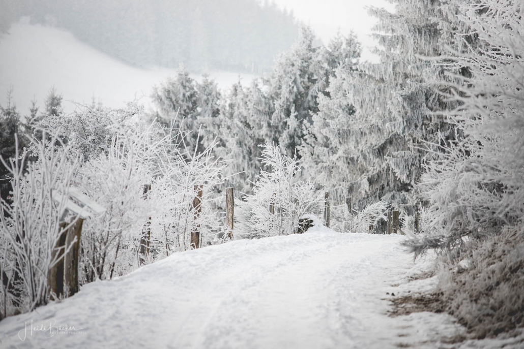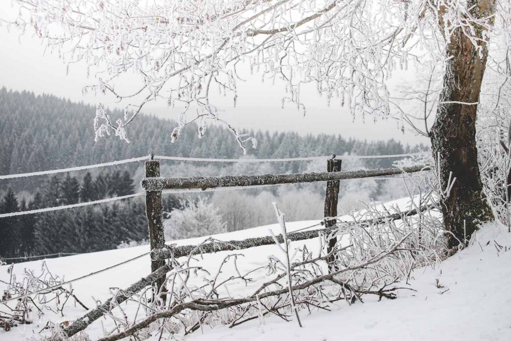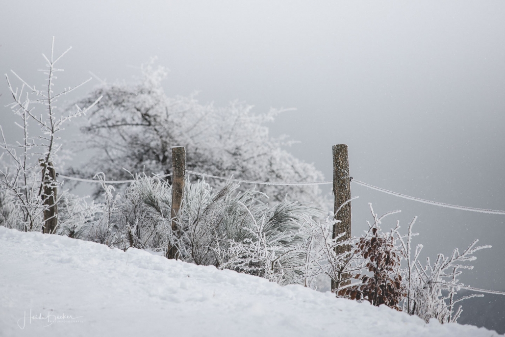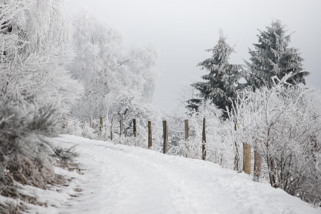 Eine schöne Schneelandschaft zeigte sich kürzlich in Winterberg am Kreuzberg. Nebel, Schnee und Raureif erzeugten eine mystische Stimmung. Der Kreuzbergweg führt an Pferdeweiden entlang, die mit alten urigen Holzzäunen umsäumt sind und wenn es nicht gerade nebelig ist, hat man eine herrliche Sicht ins Schmanteltal.