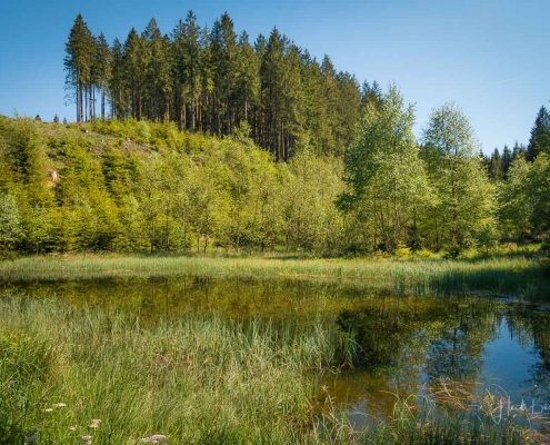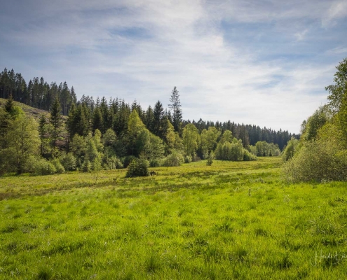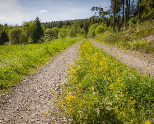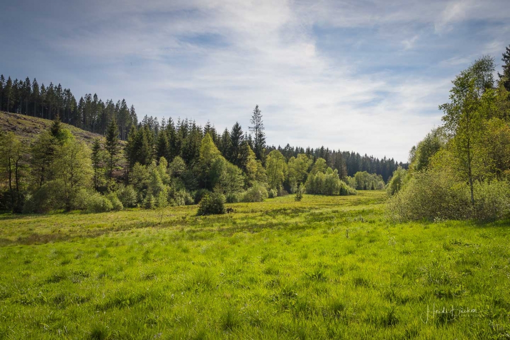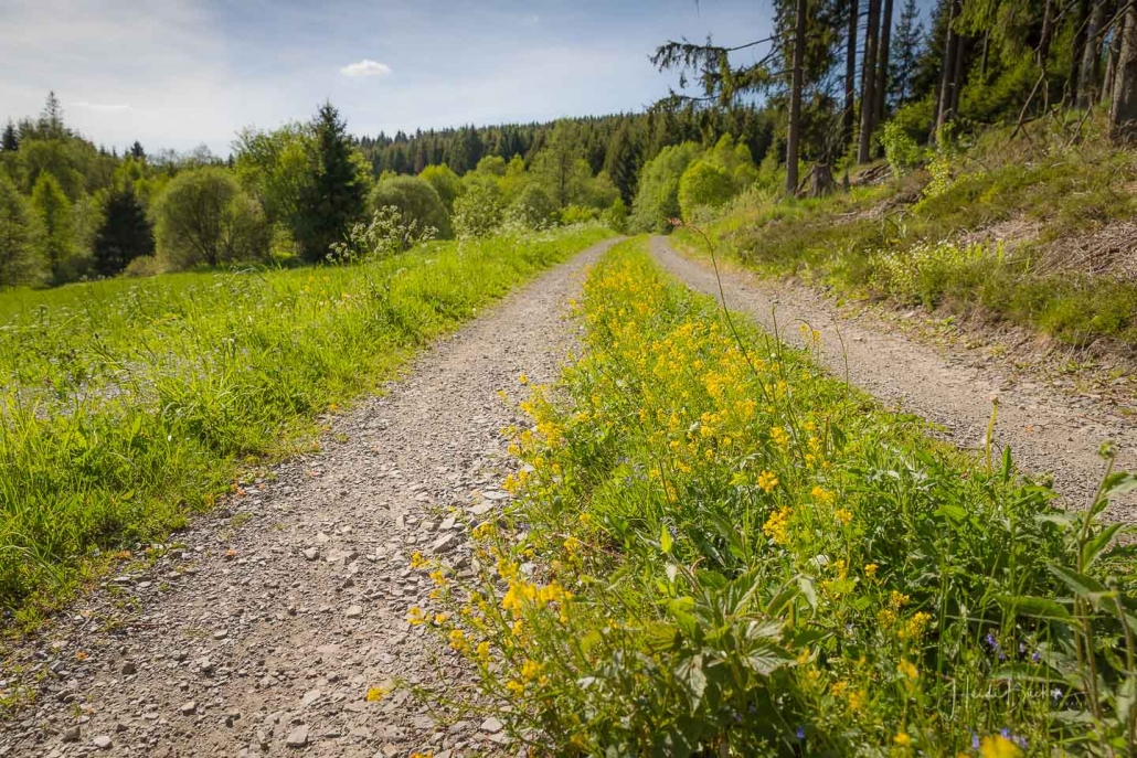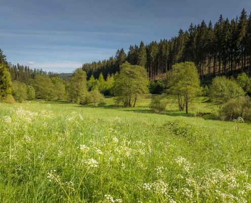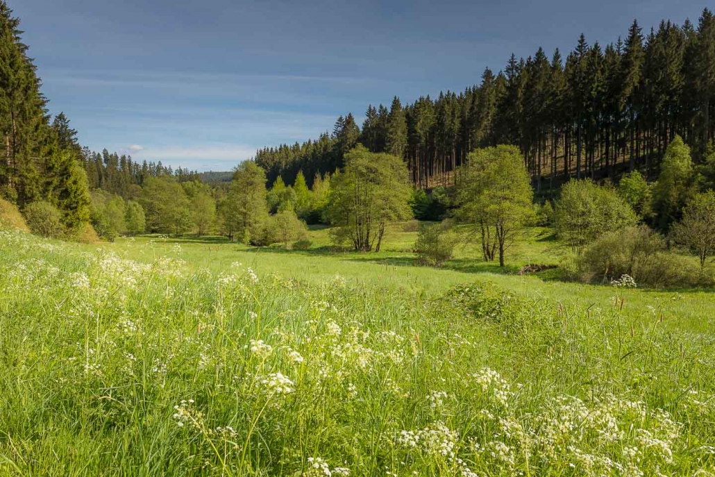 Das Schwarzbachtal gehört zu den Naturschätzen am Rothaarsteig. In diesem wunderschönen und idyllischen Naturschutzgebiet gibt es eine Vielfalt von Pflanzen- und Tierarten. Neben dem Schwarzbachtal liegt das Tal der Zinse, welches zwar nicht ganz so offen ist, aber ebenso schön. Beide Täler lassen sich prima bei einer Wanderung, oder wie wir es gemacht haben, bei einer Radtour verbinden. Gestartet sind wir am Forsthaus in Röspe. Von dort geht es durch das Zinsebachtal, vorbei am Rösper Weiher bis zu dem kleinen Wittgensteiner Dörfchen Zinse. Ab Zinse führt ein Zubringer auf den Rothaarsteig – zum Dreiherrenstein. Über den Rothaarsteig geht es weiter zum Rhein-Weser-Turm und von dort – durch das idyllische Schwarzbachtal – zurück nach Röspe.