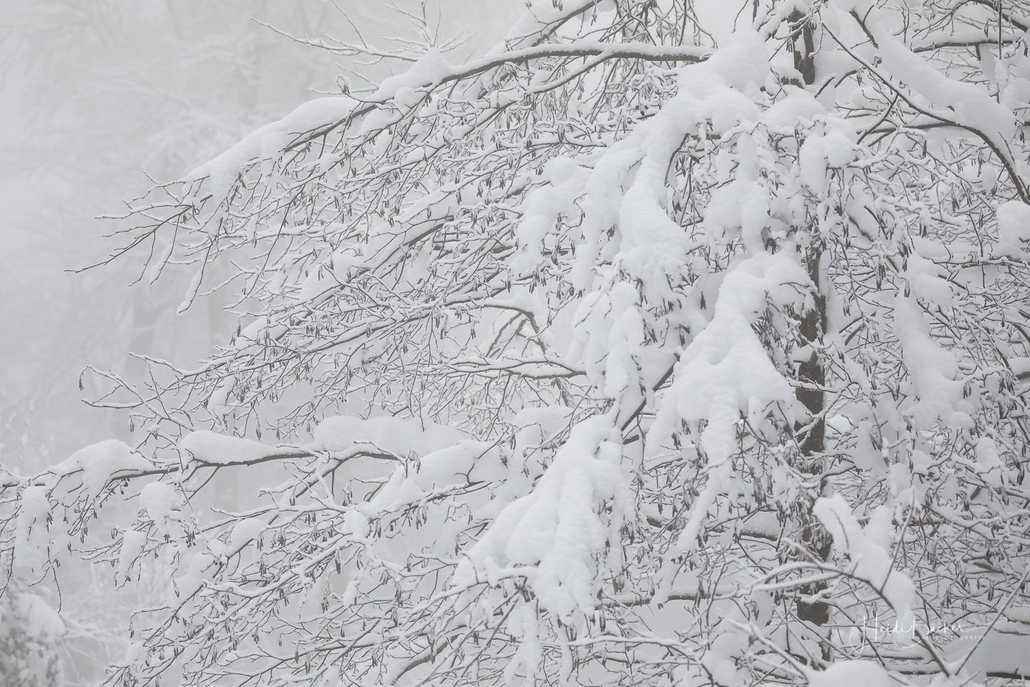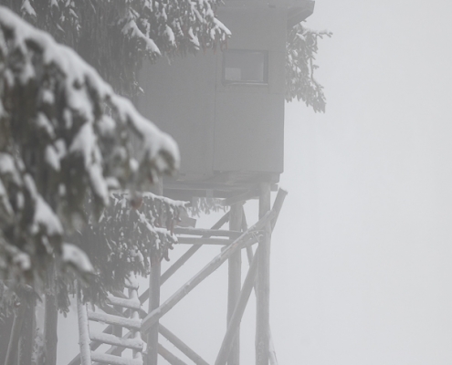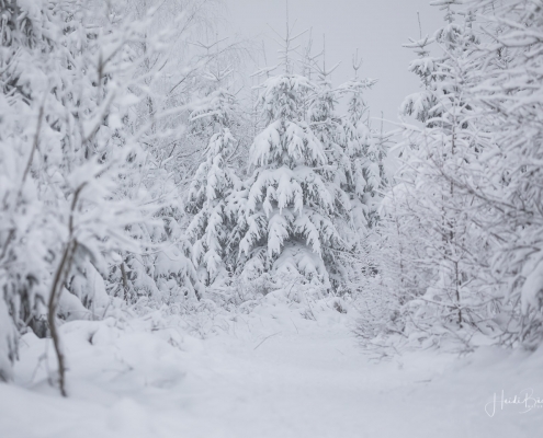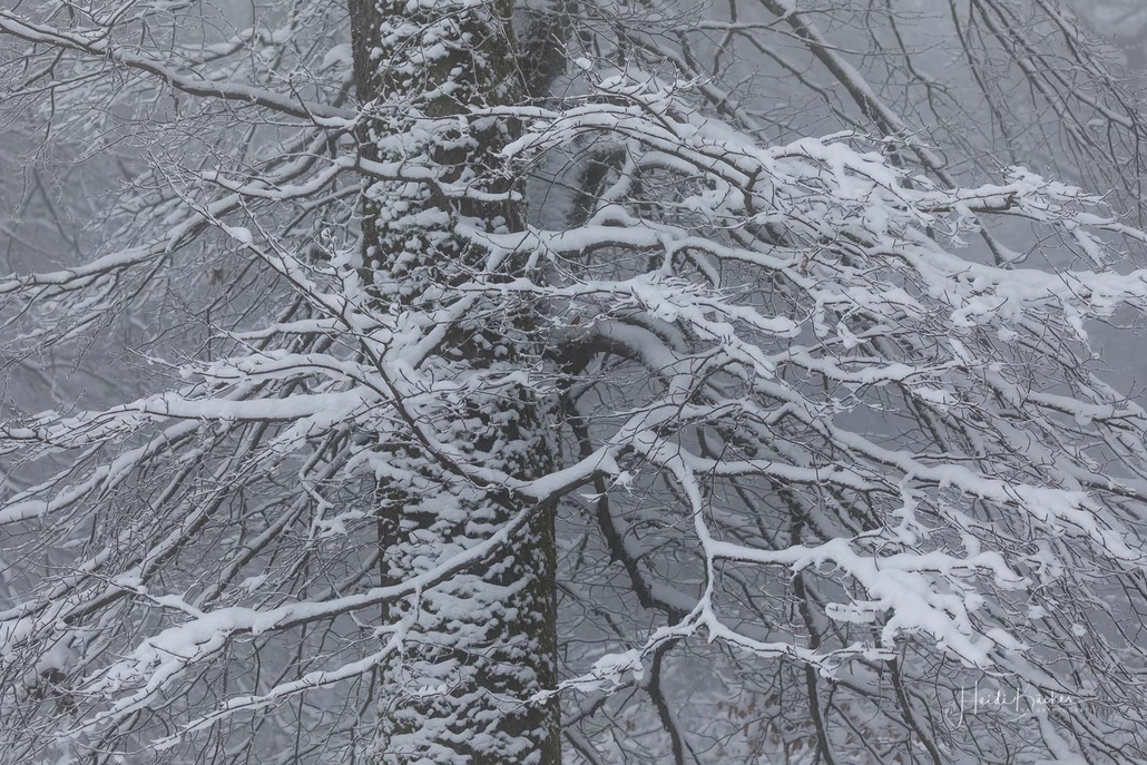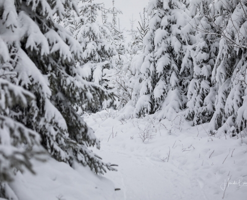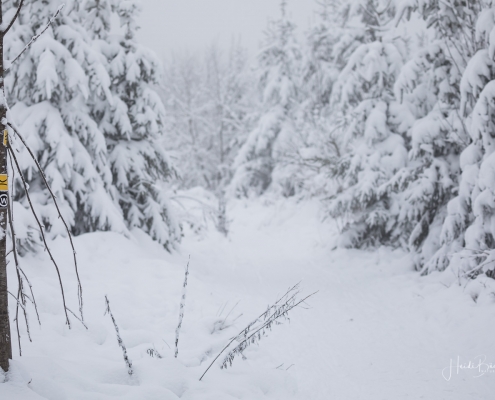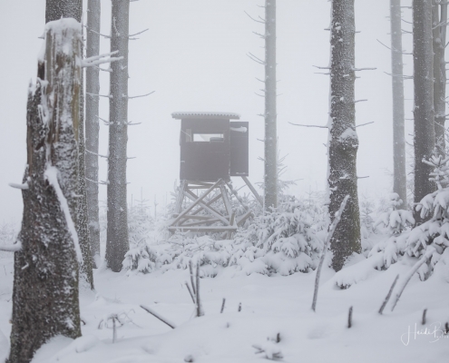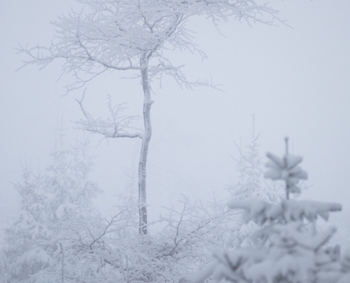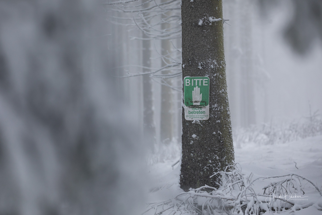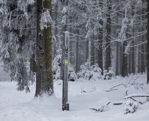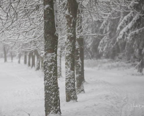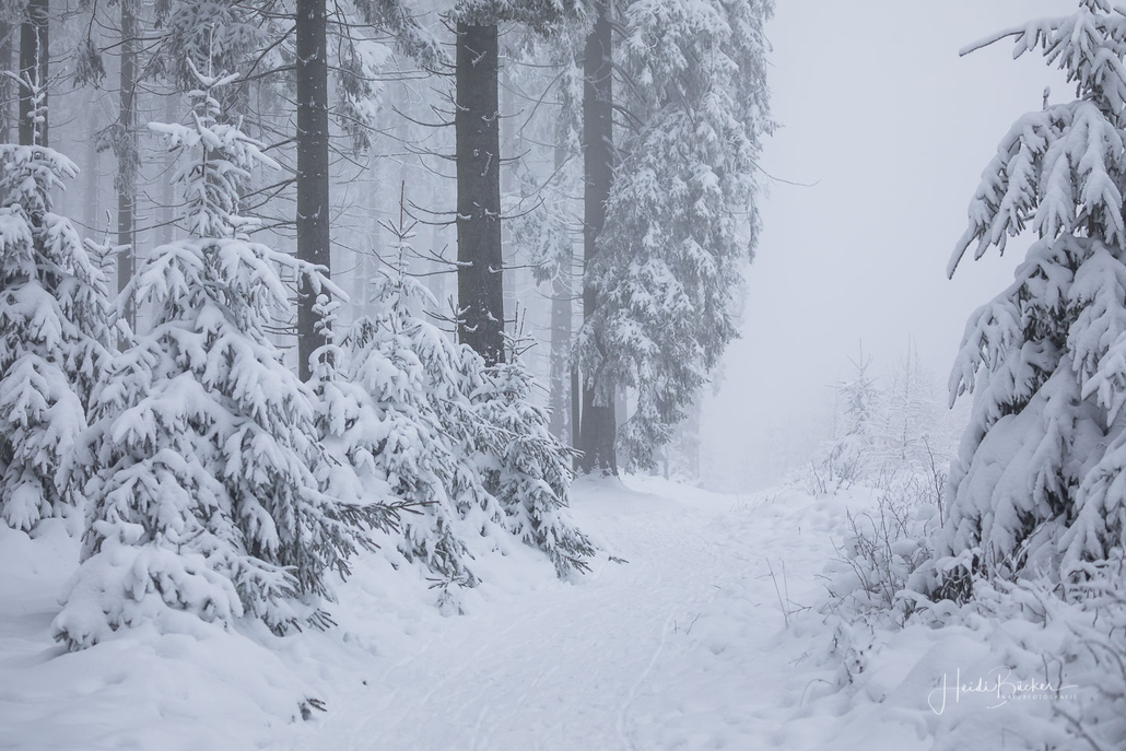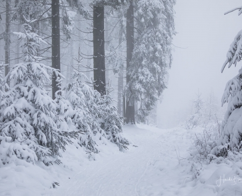 Tief winterlich präsentierten sich heute die Hochlagen des Sauerlandes. Die Wälder waren vom Nebel umhüllt und immer wieder gab es kurze Schneeschauer. Mystisch und etwas unheimlich erschien die Winterlandschaft auf dem Rothaarkamm. Von Weitem erkannte man nur die Silhouetten der wenigen Skilangläufer und Wanderer, die bei diesem usseligen Wetter draußen waren.