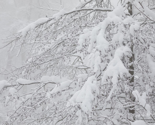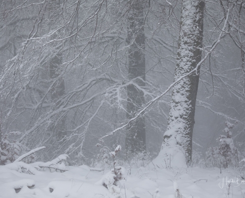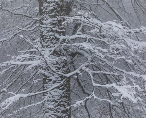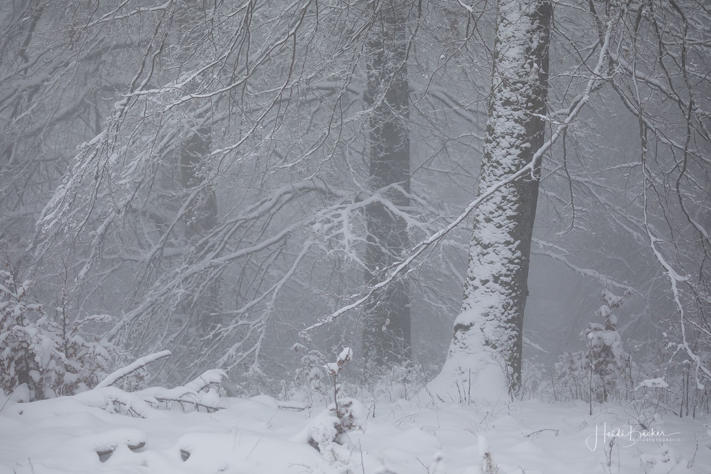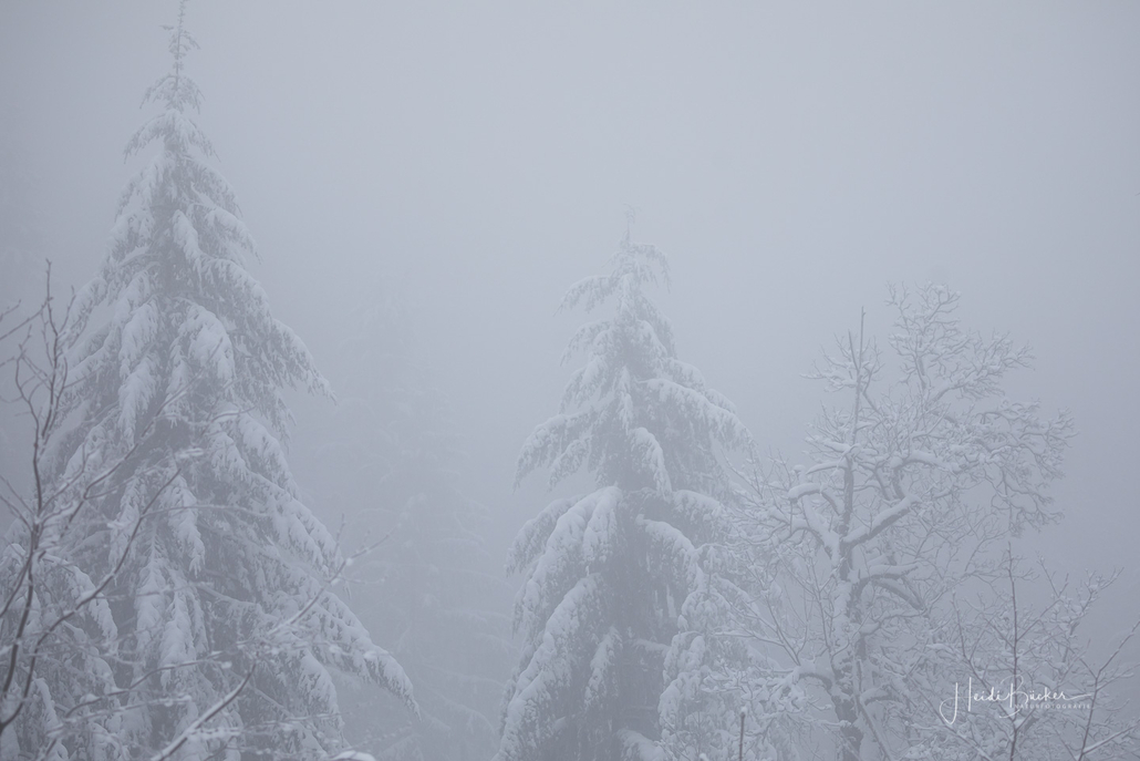 Unterwegs im tiefverschneiten Nebelwald