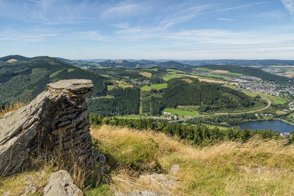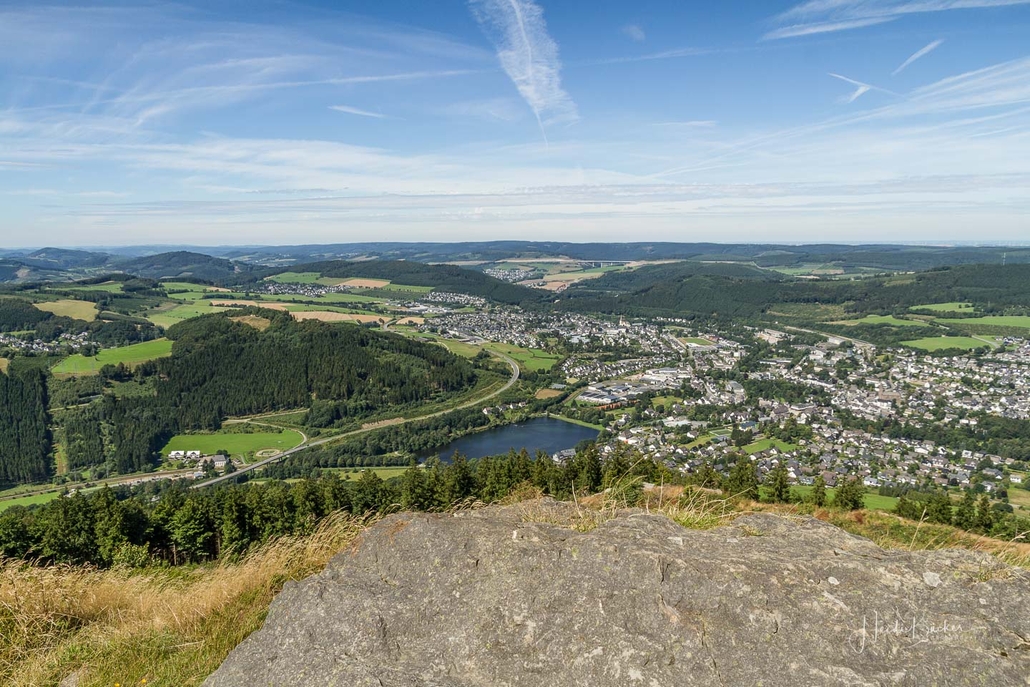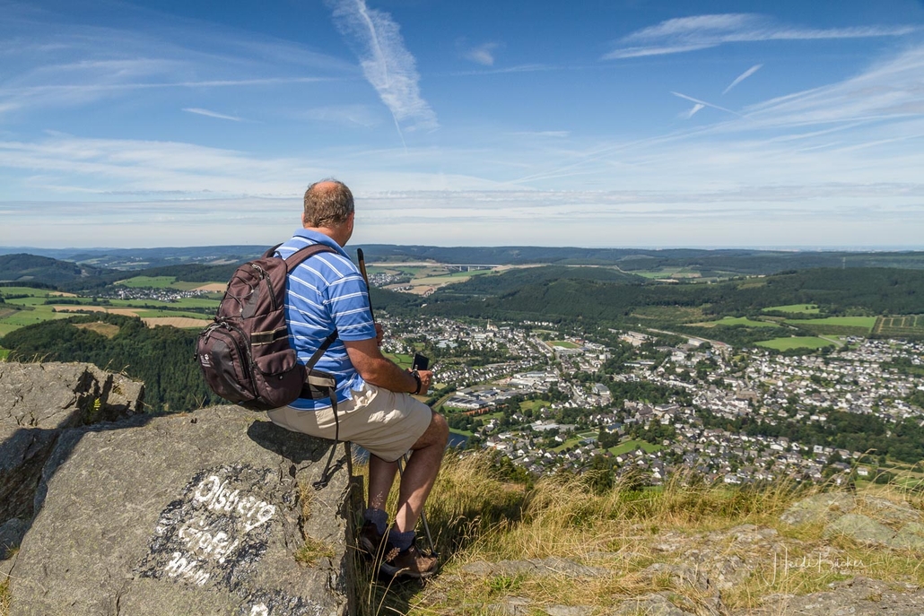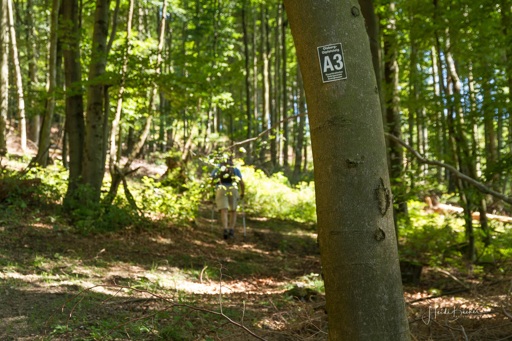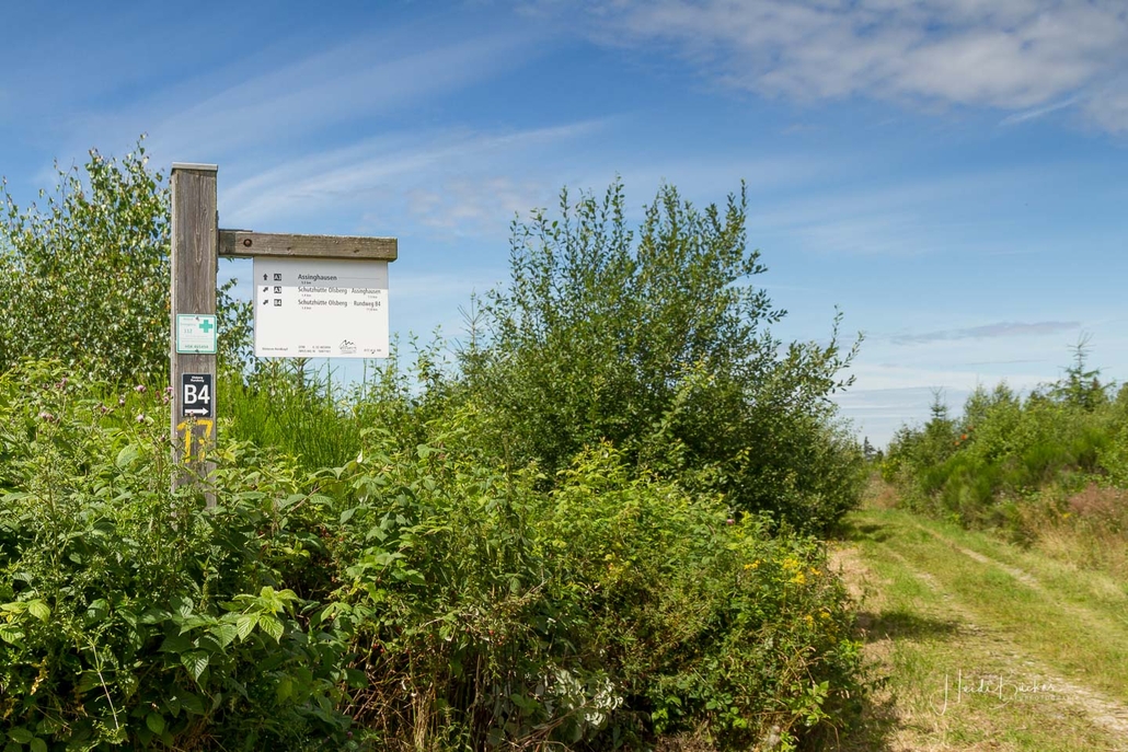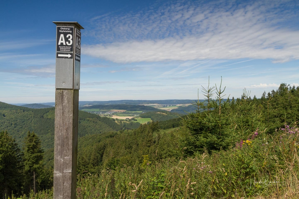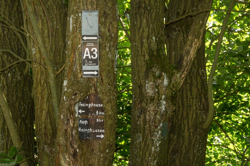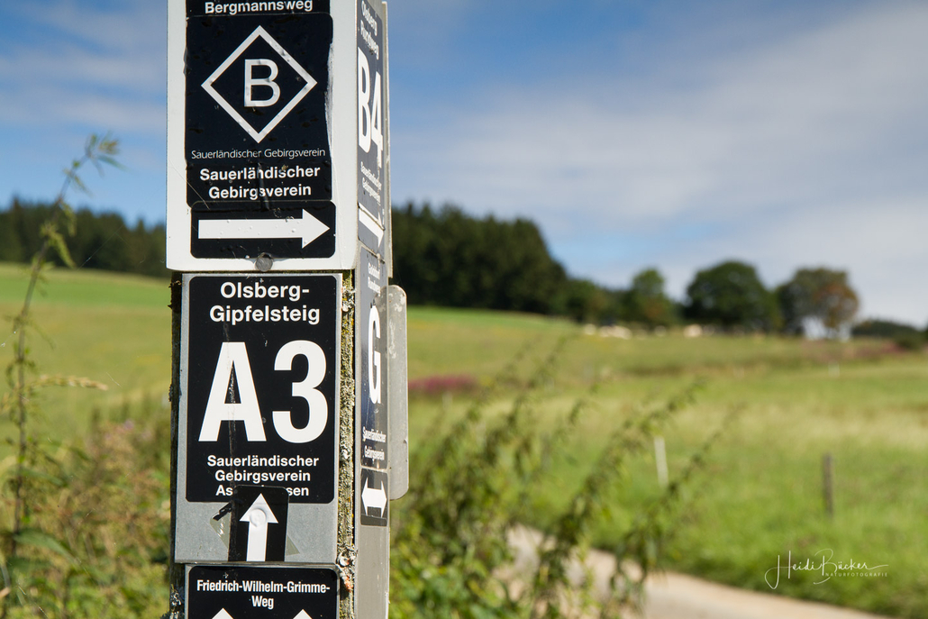 Viele Wege führen zum Olsberg-Gipfel, so auch der Rundweg A3, beginnend in Olsberg-Assinghausen. Der Gipfelsteig hat eine Länge von 12,5 Kilometern und ist mit der Wegmarkierung A3 gezeichnet. Nach Verlassen des Rosendorfs Assinghausen geht es stetig bergan in Richung Heidkopf. Im Anfang der Wanderung hat man immer wieder einen schönen Blick auf die Bruchhauser Steine. Vom Heidkopf aus geht es dann etwas flacher weiter bis zum Olsberg-Gipfel. Von hier hat man einen wunderbaren Rundumblick auf Bigge-Olsberg und die umliegende hügelige Landschaft. Nach einer ausgiebigen Pause, geht es auf der anderen Seite des Olsbergs wieder hinunter ins Tal. Wer möchte, kann an der Luisenquelle im Sommer wassertreten und sich etwas Abkühlung verschaffen. Danach geht es über Forstwege wieder zurück nach Assinghausen.