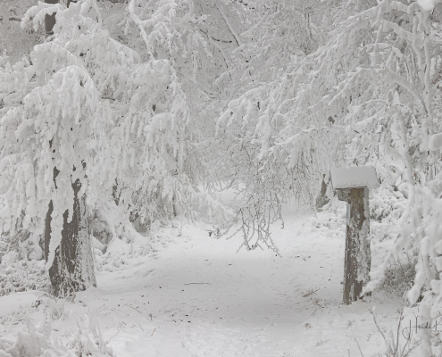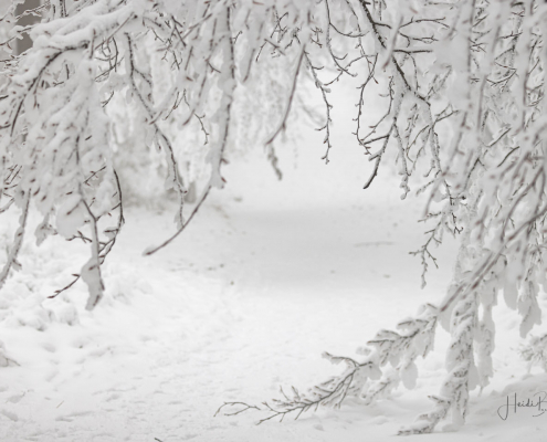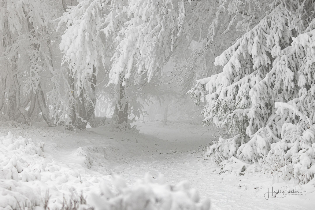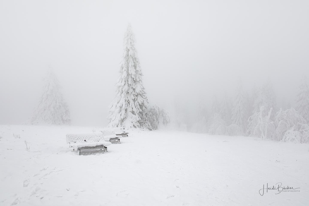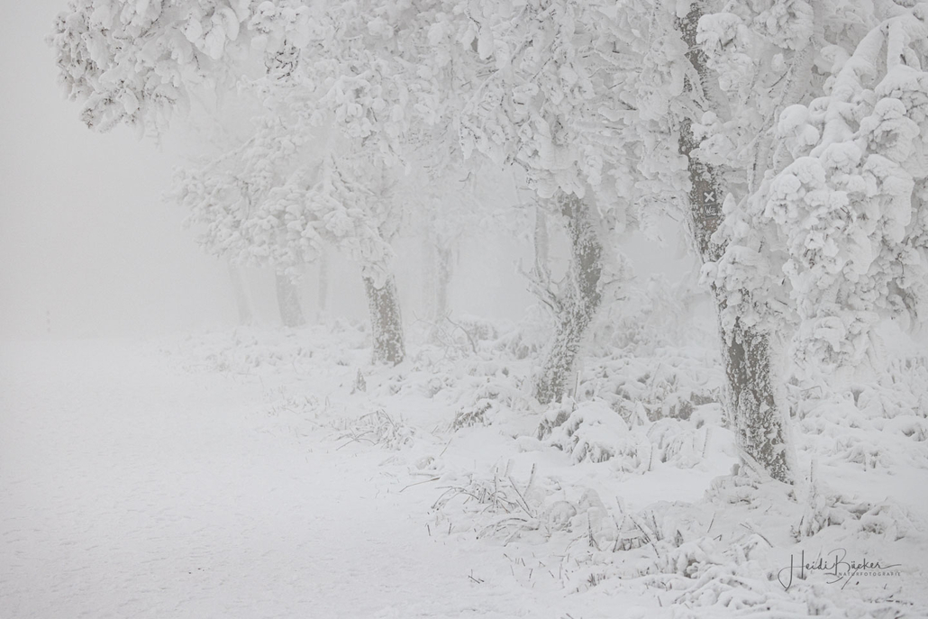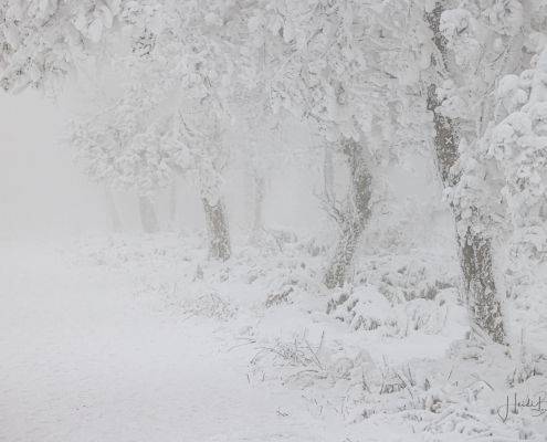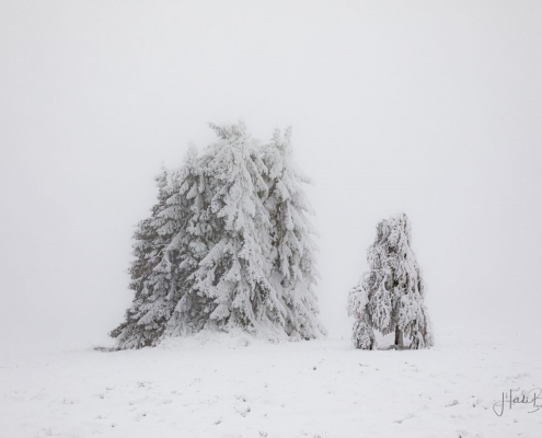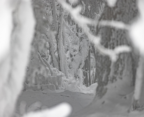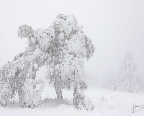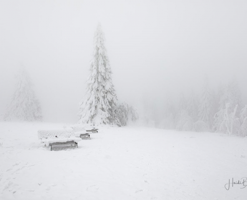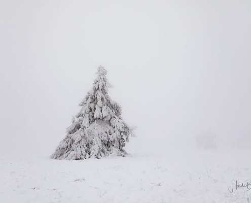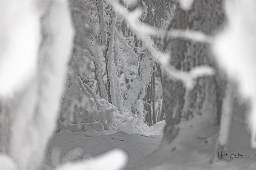 Die Astenheide zeigt sich momentan in bizarrer winterlicher Schönheit. Raureif hängt zentimeterdick an den Ästen der Bäume und Nebel taucht die Landschaft in ein mystisches Licht. Der Nebel verschluckt den Hintergrund, so dass nur noch die Silhouetten einzelner Bäume und Sträucher erkennbar sind. In dieser schneebedeckten und farblosen Natur entstehen reizvolle Schwarzweiss-Fotos, ohne die Programmfunktion in der Kamera auf monochrom umzustellen.