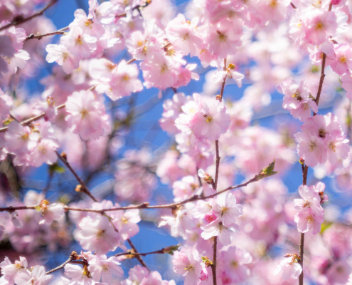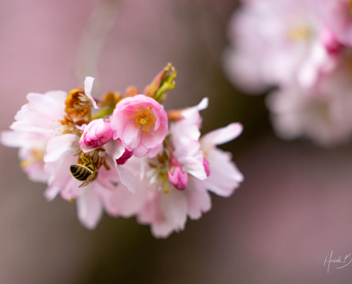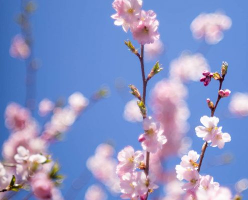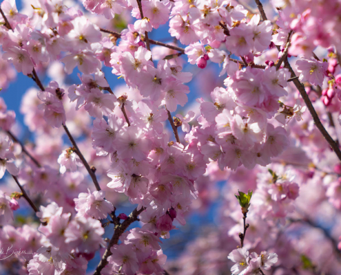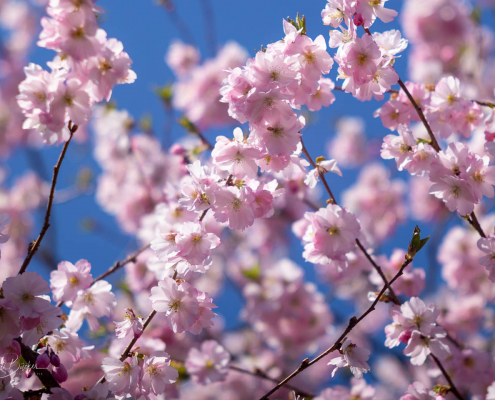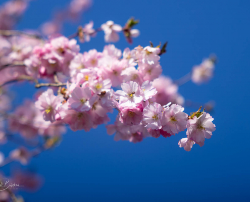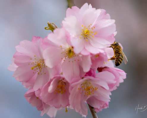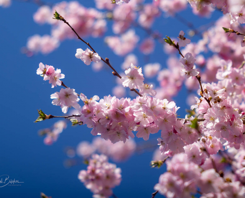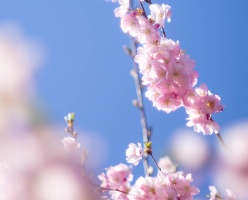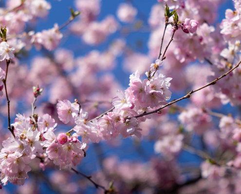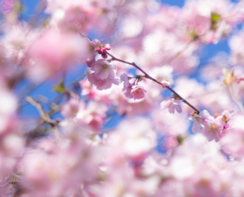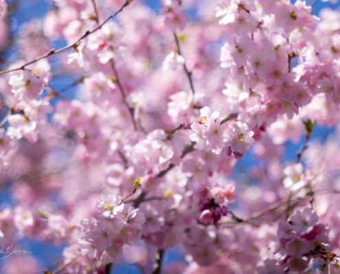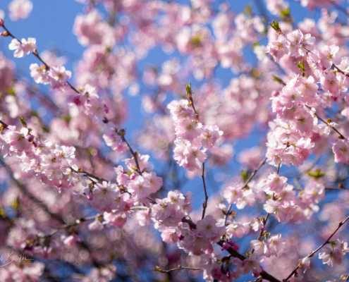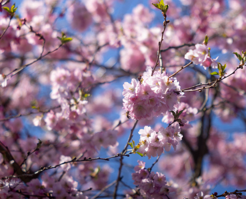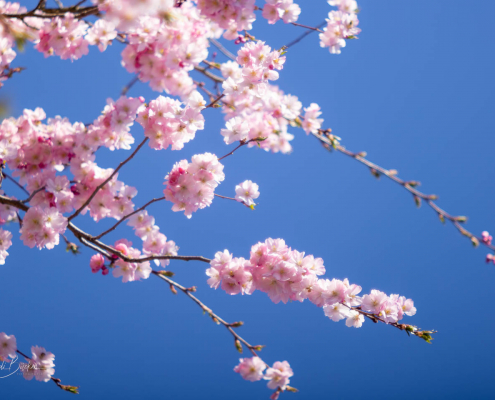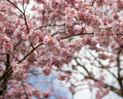 Eine schöne Kirschbaum-Allee, so wie sie in der Bonner Altstadt zu finden ist, sucht man im Sauerland leider vergebens. Doch auch hier blühen Kirschbäume. Meistens handelt es sich dabei allerdings um wilde Kirschen, deren Blüten klein und weiß sind. Die üppig blühende japanische Zierkirsche mit ihren zartrosa Blütenblättern sieht man eher selten. Doch einige Bäume habe ich entdeckt. Ihre wundervollen rosa Blüten geben ein tolles Fotomotiv ab.