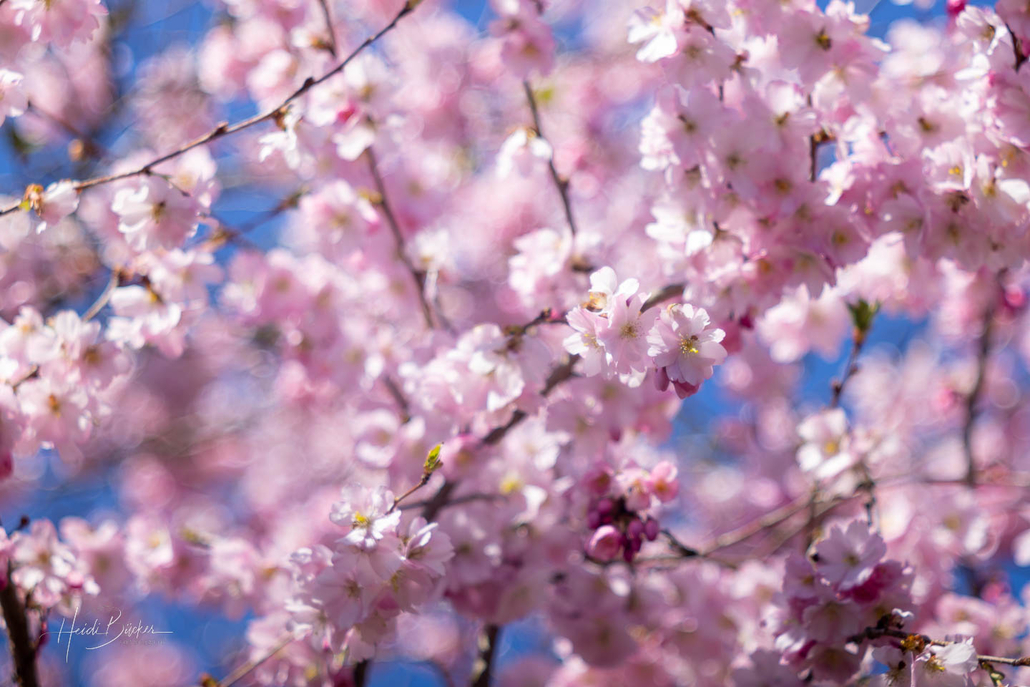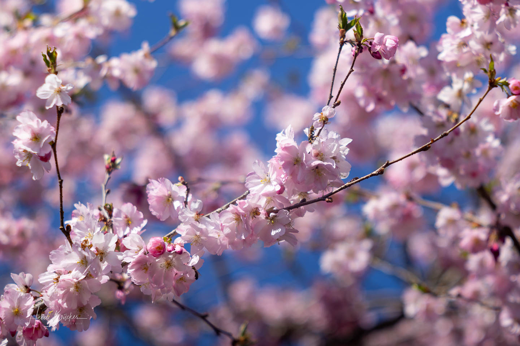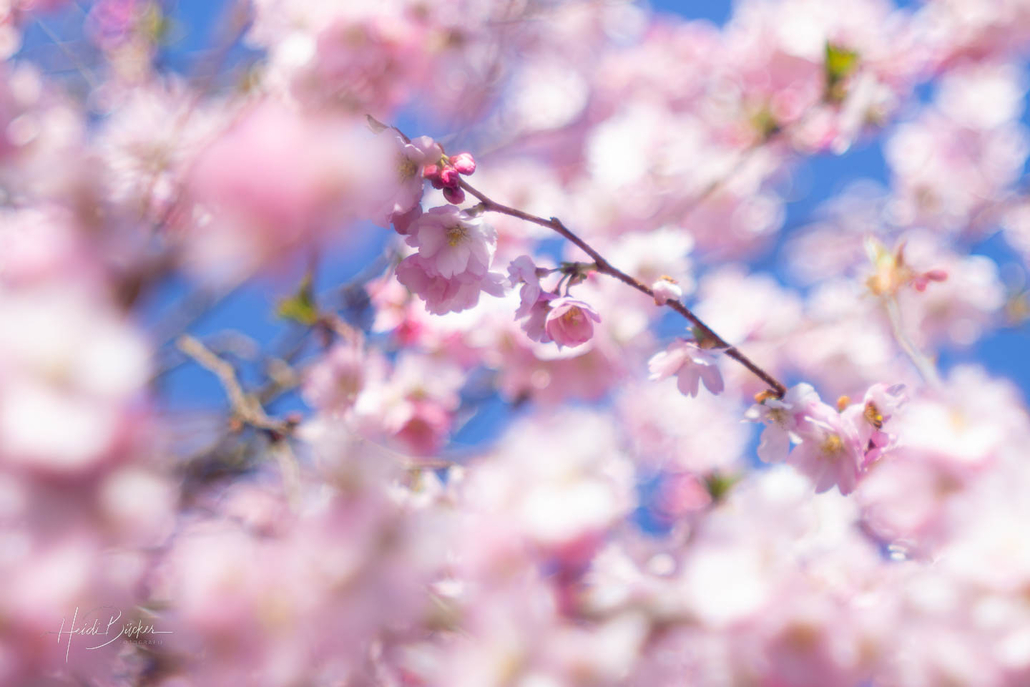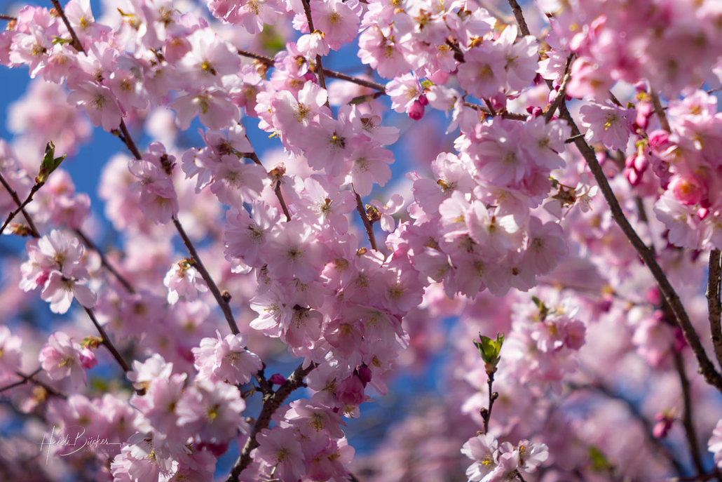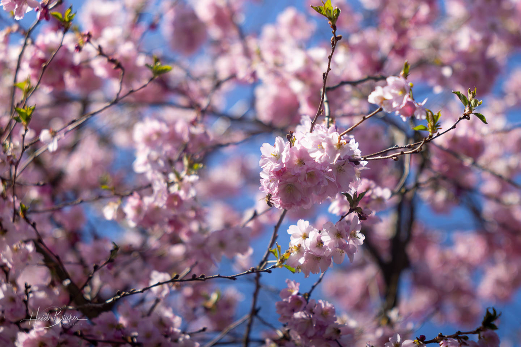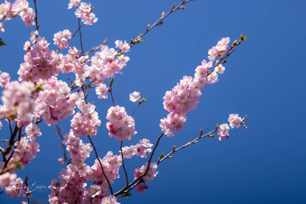 Eine schöne Kirschbaum-Allee, so wie sie in der Bonner Altstadt zu finden ist, sucht man im Sauerland leider vergebens. Doch auch hier blühen Kirschbäume. Meistens handelt es sich dabei allerdings um wilde Kirschen, deren Blüten klein und weiß sind. Die üppig blühende japanische Zierkirsche mit ihren zartrosa Blütenblättern sieht man eher selten. Doch einige Bäume habe ich entdeckt. Ihre wundervollen rosa Blüten geben ein tolles Fotomotiv ab.