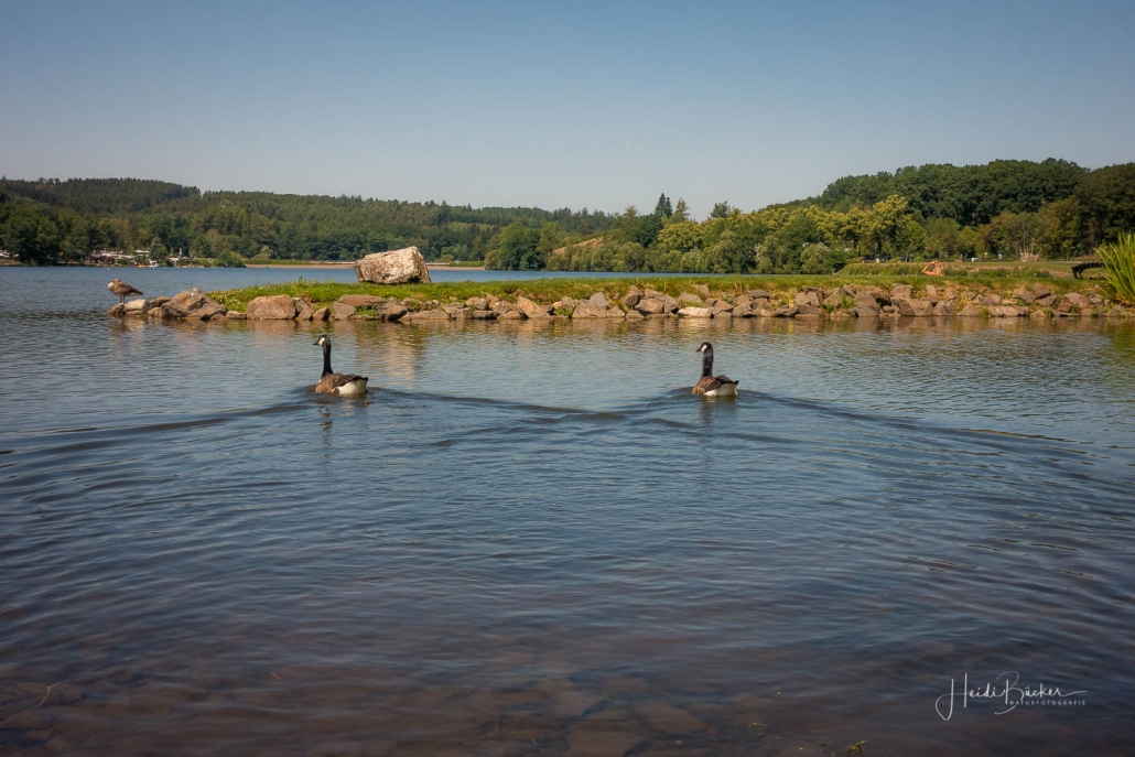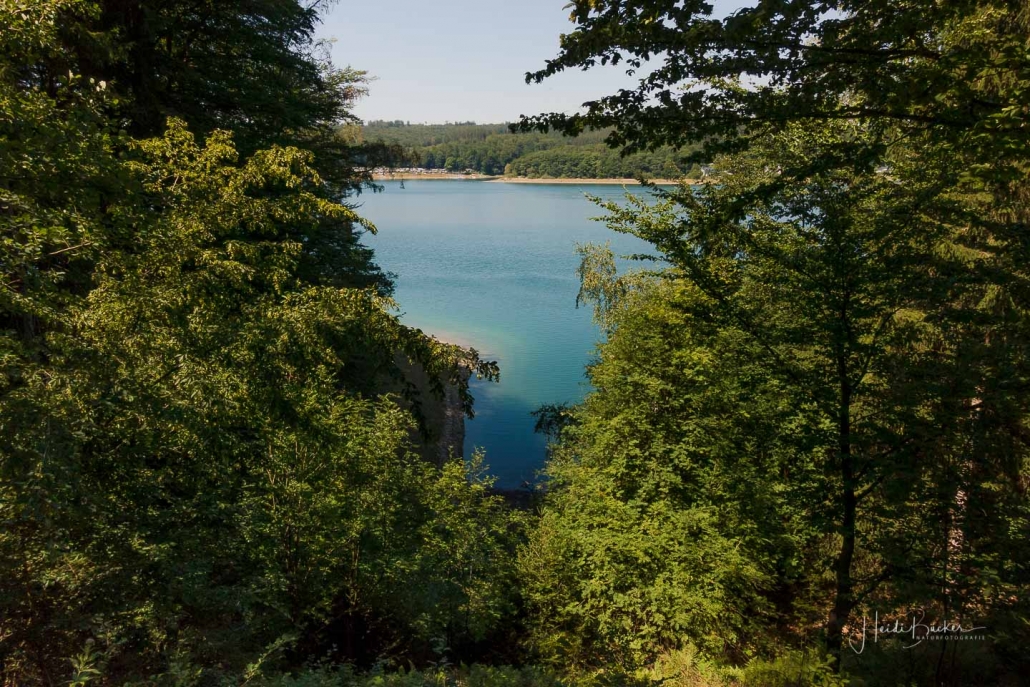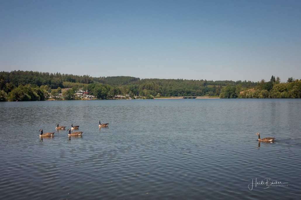 Nachdem wir vor einer Woche einige Tage an der Nordsee verbracht haben, zieht es uns in dieser Woche immer mal wieder ans Wasser – ganz nach dem Motto: „Wenn ich einen See seh, brauche ich kein Meer mehr.“ 🙂 Aus diesem Grund umradeln wir jetzt die Seen im Sauerland und lernen sie auf eine ganz neue Art und Weise kennen. Mit dem Rad sieht man viel mehr von der Landschaft. Nach Hennesee und Möhnesee war gestern der Sorpesee dran. Auch hier gibt es einen Radweg rund um den See. Die 19 Kilometer sind sehr leicht zu bewältigen, doch leider habe ich die schönen Aussichten vermisst. Zwischen Radweg und See liegt auf der einen Uferseite der Wald und auf der anderen Uferseite zum Teil die Straße oder hohe grüne Metallzäune. Einige Ruhebänke lassen vermuten, dass man von da mal vor langer Zeit den See sehen konnte, doch leider schaute man nur in grüne Sträucher. 🙁 Wenn man allerdings freie Sicht auf den See erhält, ist diese sehr schön. Zum Schwimmen gibt es viele kleine Buchten und die Promenaden in Langscheid und Amecke sind auch toll gestaltet.