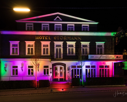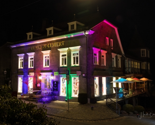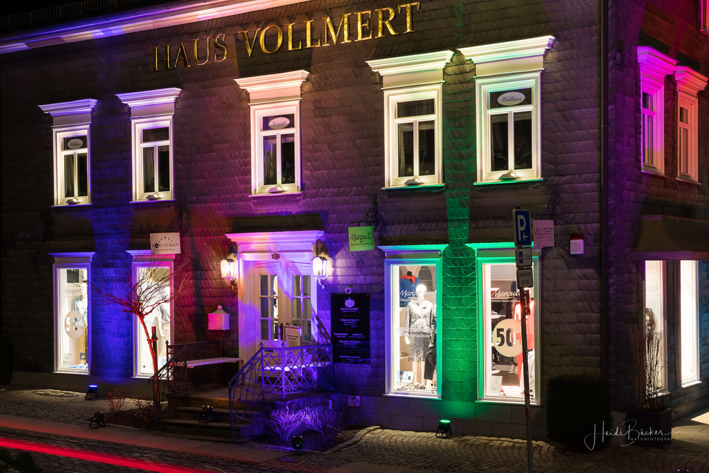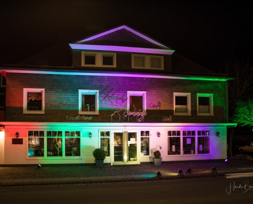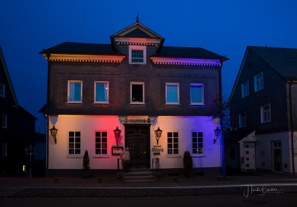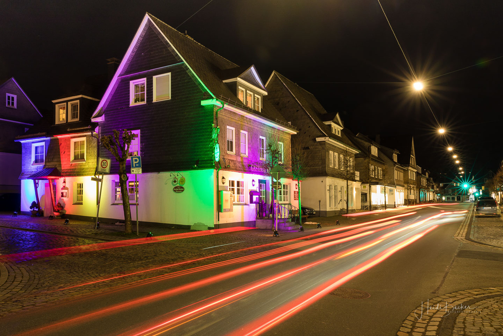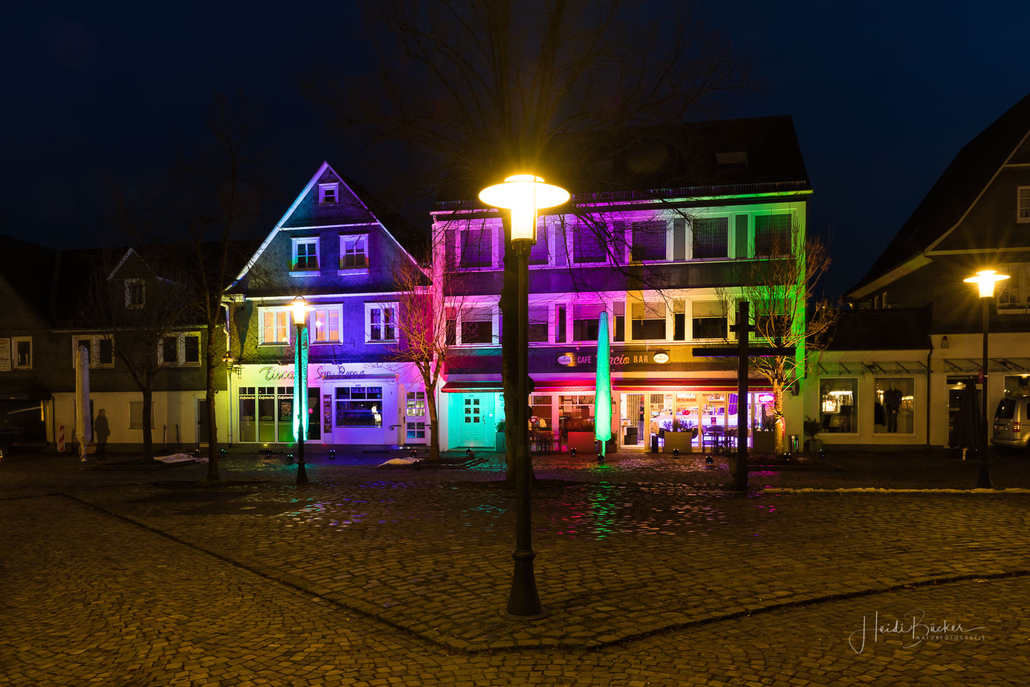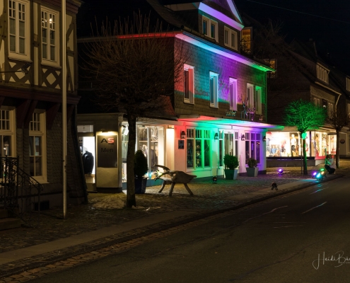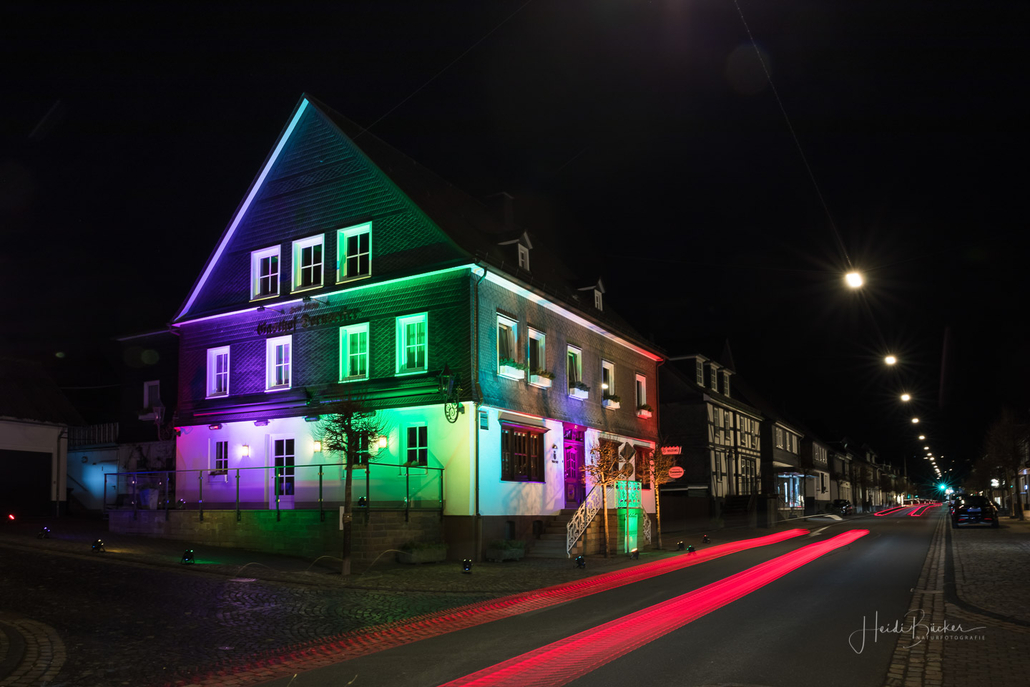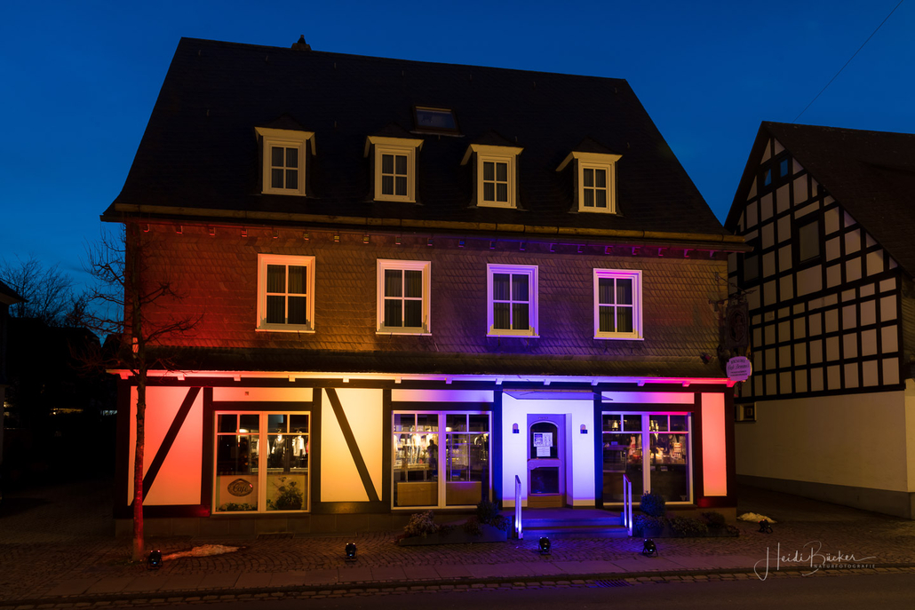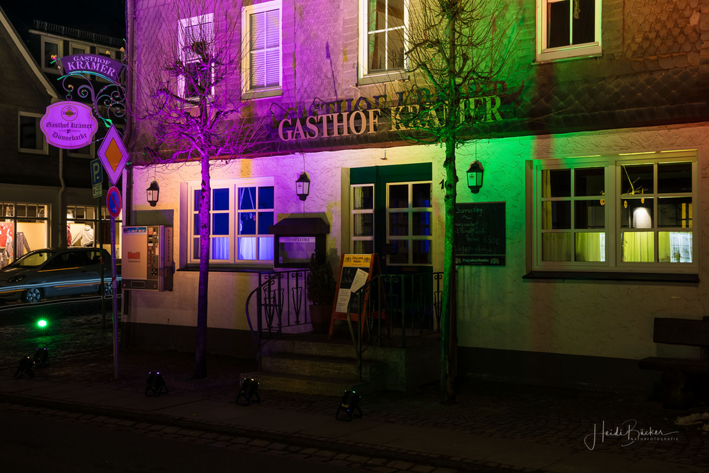 Gestern durfte ich, gemeinsam mit meinem Fotografen-Kollegen Stefan Schwope, den Verkehrsverein Schmallenberg e.V. und den WDR mit der Kamera bei einem Rundgang durch die Stadt Schmallenberg begleiten. Anlass war eine Aktion, die auf die prekäre Lage der Hotels und Gaststätten aufmerksam machen sollte. Dazu wurden einzelne Häuser bunt illuminiert. Schaute man durch die Fenster, war es dunkel, doch von Außen erstrahlten die Gebäude in bunten Farben und sahen sehr einladend aus. Die Idee kam von Mitgliedern des Schmallenberger Verkehrsvereins und von Fotograf Stefan Schwope, die bereits vor wenigen Wochen verschiedene Orte rund um Schmallenberg illuminiert hatten. Die Stadt sollte bunt leuchten und Lust auf einen Besuch „nach dem Lockdown“ machen. Stefan und ich durften diesen tollen Anblick in Bildern festhalten …es war einzigartig und schön! Meine Bilder findet Ihr hier im Blog und auf meiner Facebookseite. Die Bilder von Stefan findet Ihr auf der Facebookseite von Schmallenberg und seiner eigenen.