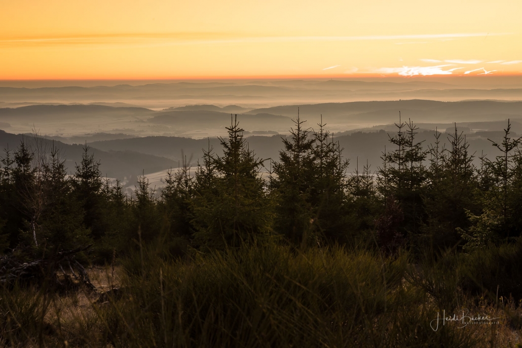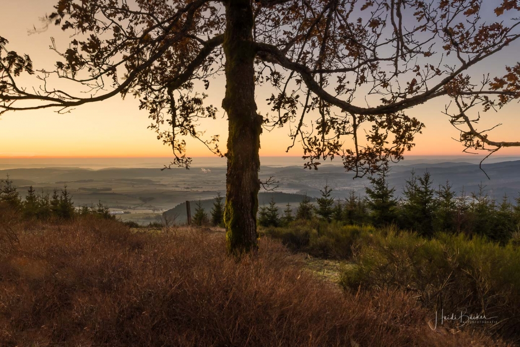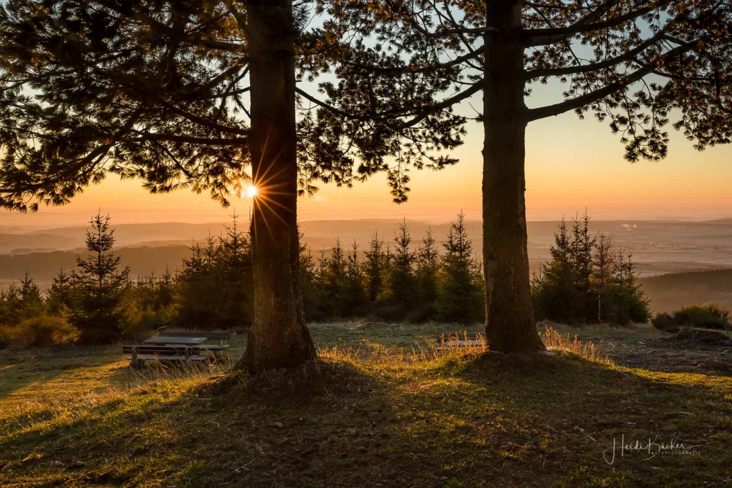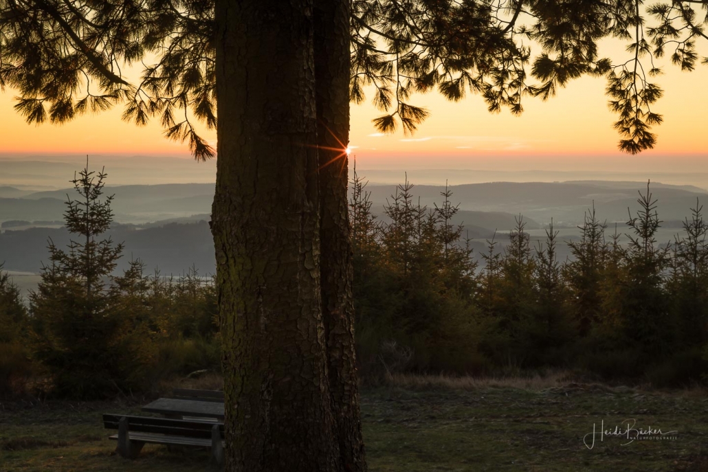 Ein Sonnenaufgang im Hochsauerland lässt sich wunderbar auf dem Bollerberg bei Hesborn erleben. Der Blick in die Medebacher Bucht ist immer wieder ´ne Wucht. Durch die freie Sicht nach Osten kann man bei gutem Wetter beobachten, wie die Sonne langsam hinter dem fernen Bergkamm hervorkommt. Inversionswetterlage, mit Nebel im Tal, macht die Aussicht dann noch interessanter, doch das Glück hatte ich bei meiner letzen Fototour leider nicht …war aber trotzdem schööön.