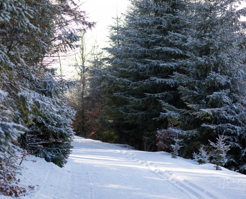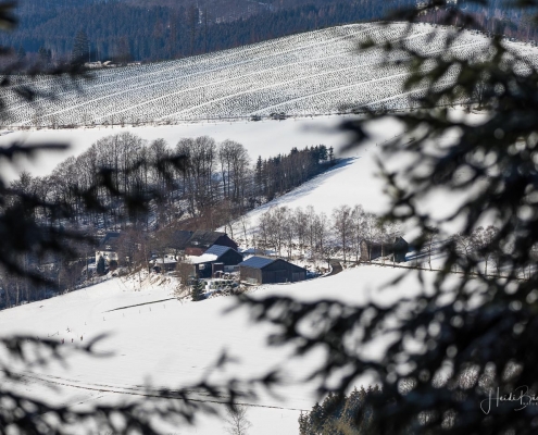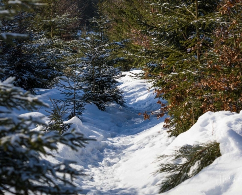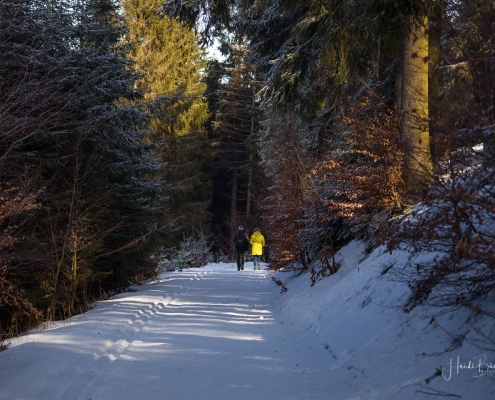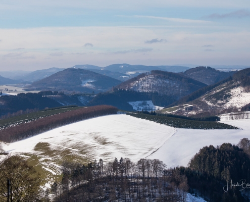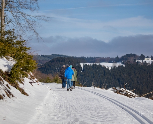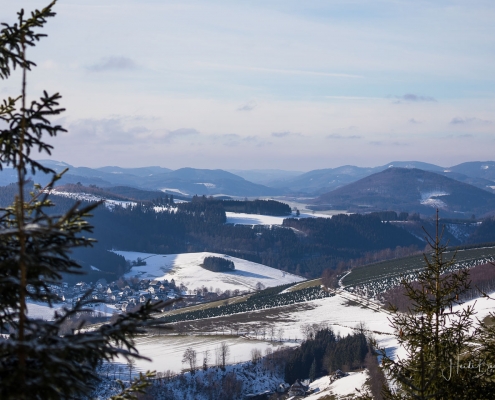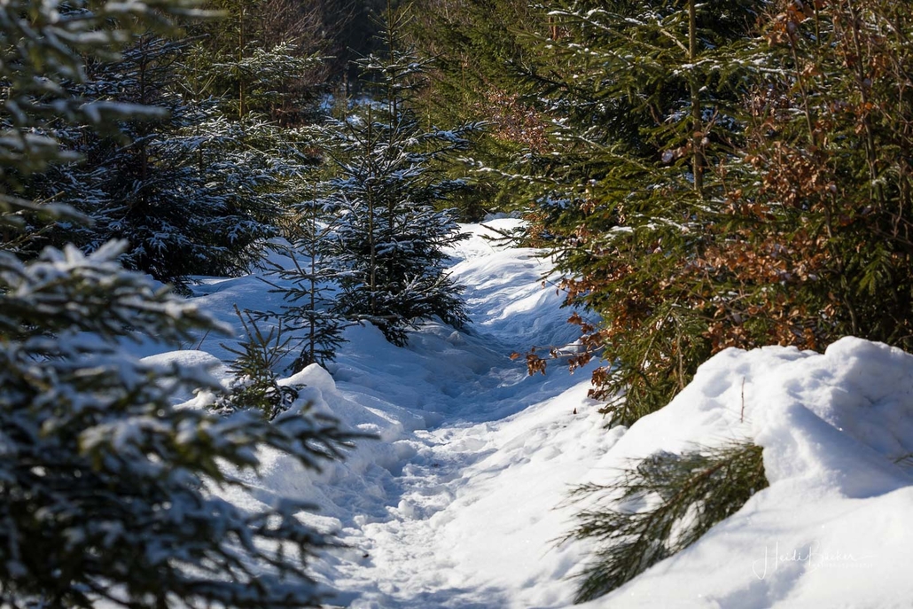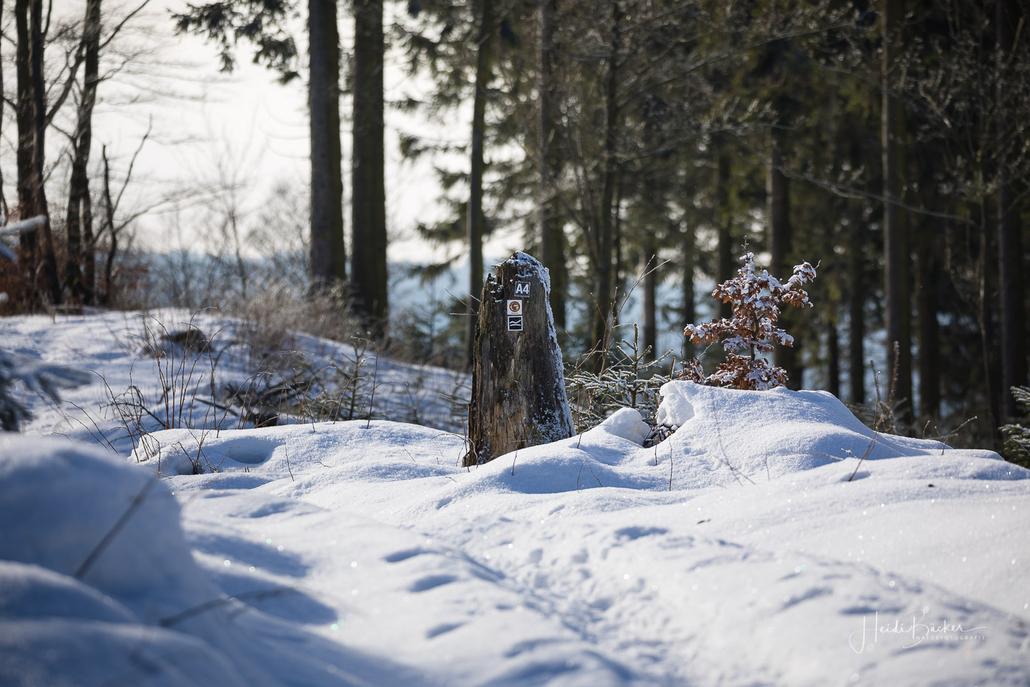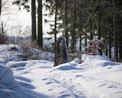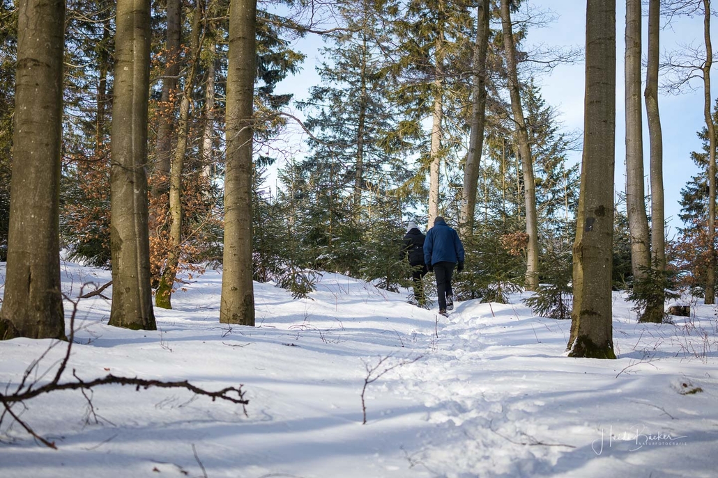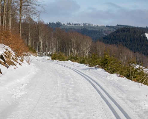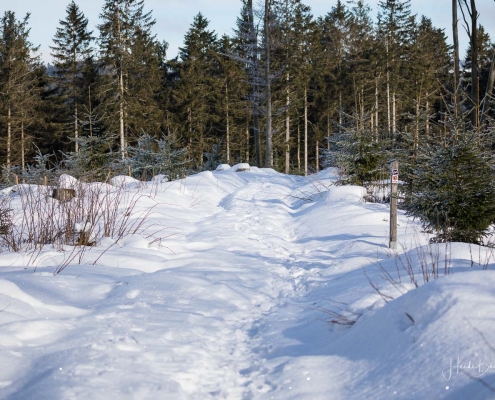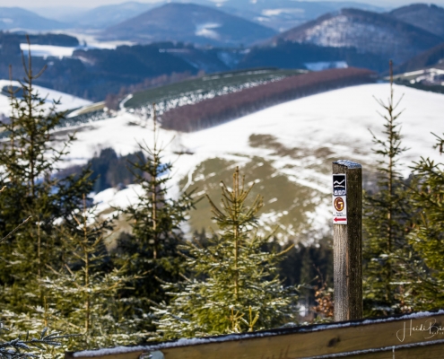 Das Wetter meinte es heute gut mit uns. Die Sonne schien über die tausend Berge des Sauerlandes und einen davon habe ich heute erklommen: Den Hohen Knochen. Über den Kahler Asten-Steig führte mein Weg vom Berghotel Hoher Knochen bis auf die Knochenspitze und von dort weiter um die Bergkuppe herum und wieder zurück zum Ausgangspunkt. Es liegt momentan noch viel Schnee dort oben und ich war mir nicht sicher, ob der Weg überhaupt begehbar ist. Aber es waren Trampelspuren vorhanden und der Untergrund fest gefroren, so dass ich nicht einsackte. Allerdings ist die Kraxelei durch den Schnee schon etwas anstrengend, aber was macht man nicht alles für schöne Fotos. 🙂 Und nicht nur ich kam bei dem tollen Winterwetter auf meine Kosten. Es waren noch einige andere Wanderer und Schneeschuh-Läufer unterwegs und in der Loipe zogen die Skifahrer ihre Runden. Das war mal wieder ein Wintertag ganz nach meinem Geschmack … Entspannung pur!