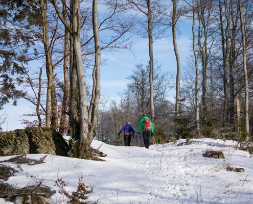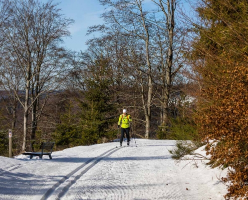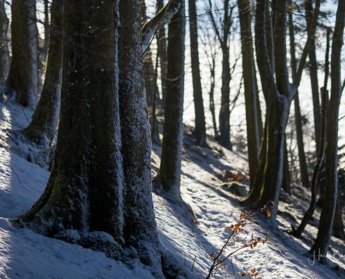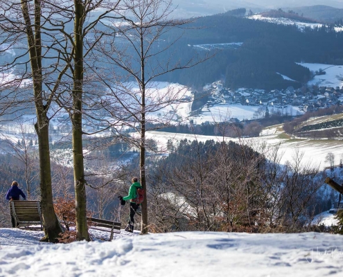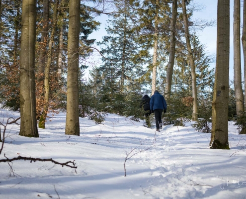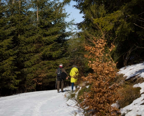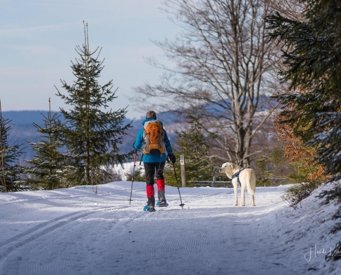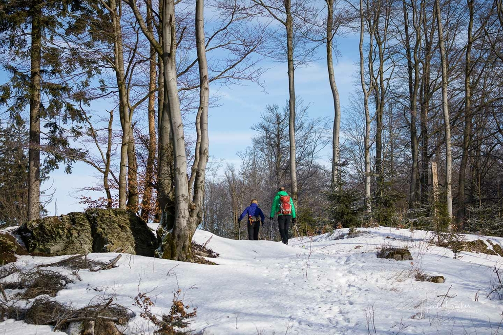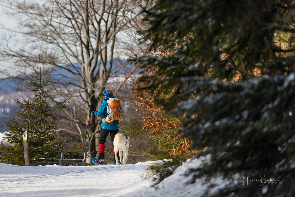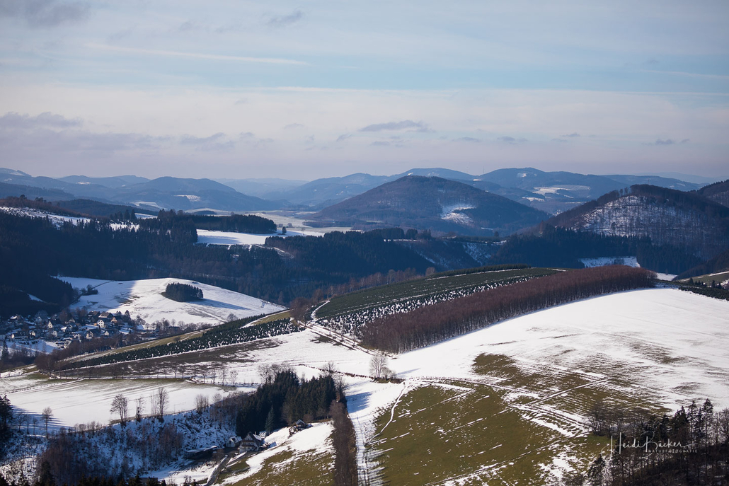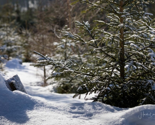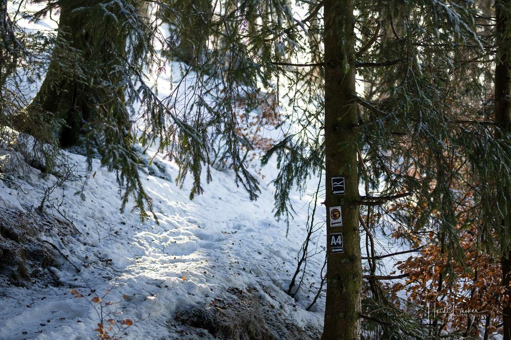 Das Wetter meinte es heute gut mit uns. Die Sonne schien über die tausend Berge des Sauerlandes und einen davon habe ich heute erklommen: Den Hohen Knochen. Über den Kahler Asten-Steig führte mein Weg vom Berghotel Hoher Knochen bis auf die Knochenspitze und von dort weiter um die Bergkuppe herum und wieder zurück zum Ausgangspunkt. Es liegt momentan noch viel Schnee dort oben und ich war mir nicht sicher, ob der Weg überhaupt begehbar ist. Aber es waren Trampelspuren vorhanden und der Untergrund fest gefroren, so dass ich nicht einsackte. Allerdings ist die Kraxelei durch den Schnee schon etwas anstrengend, aber was macht man nicht alles für schöne Fotos. 🙂 Und nicht nur ich kam bei dem tollen Winterwetter auf meine Kosten. Es waren noch einige andere Wanderer und Schneeschuh-Läufer unterwegs und in der Loipe zogen die Skifahrer ihre Runden. Das war mal wieder ein Wintertag ganz nach meinem Geschmack … Entspannung pur!