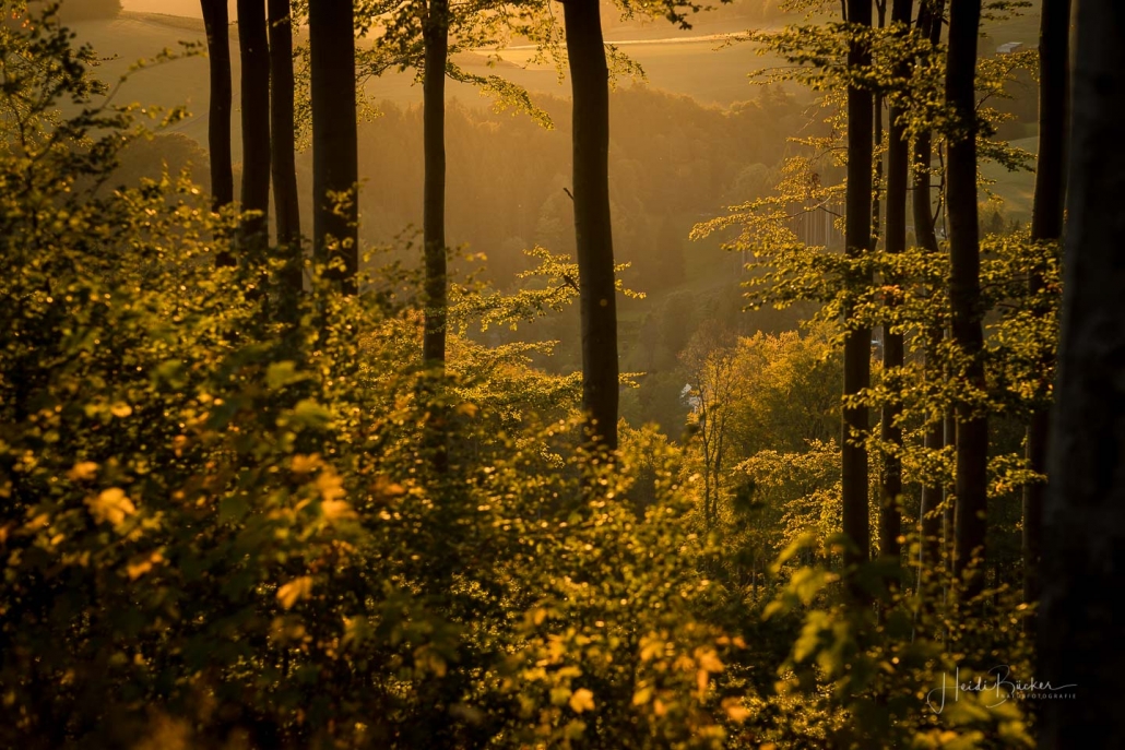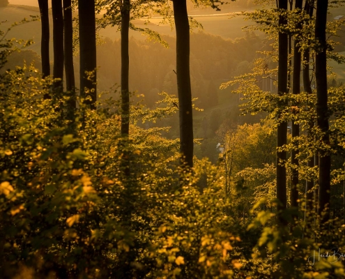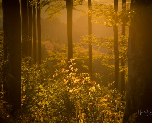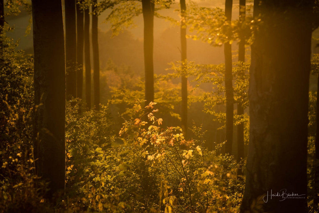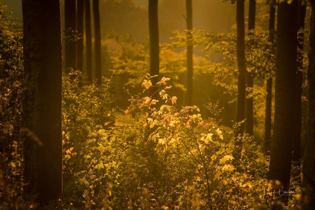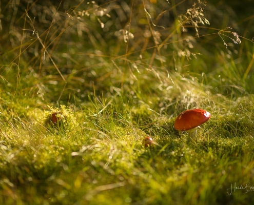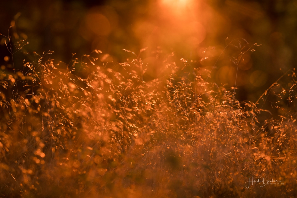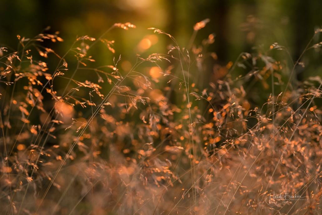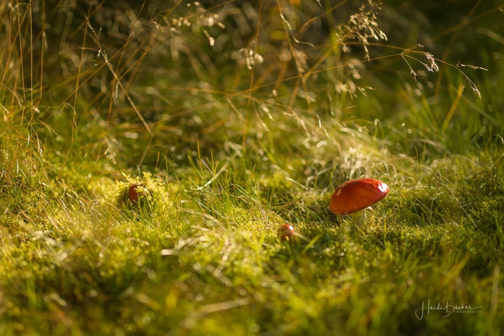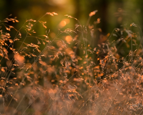 Das goldene Licht der Abendsonne und Lens Flare lassen die Natur verträumt und geheimnisvoll aussehen. Die nachfolgenden Fotos sind bei einem Waldspaziergang in der Goldenen Stunde kurz vor Sonnenuntergang entstanden. Die Blätter der Bäume färben sich langsam in warme Gelb- und Orangetöne und reflektieren das Licht noch weicher, was beim Blick durch die Buchen besonders deutlich wird. Auch Gräser wie die Drahtschmiele mit ihren filigran verspielten Blütenrispen sehen im Abendlicht wunderschön aus. Pilze gibt es in diesem Jahr aufgrund der Trockenheit leider nur sehr wenige. Einige Fliegenpilze, die versteckt im Gras am Wegesrand standen, haben es noch auf´s Foto geschafft.