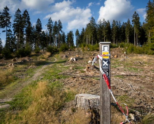 Im August 2009 sind wir das erste Mal den kompletten WaldSkulpturenWeg von Schmallenberg bis Bad Berleburg gewandert. Damals fehlte noch die Skulptur „Blinker II“ auf der Almert, die erst im Frühjahr 2010 fertiggestellt wurde. Danach ging es immer mal wieder in Etappen über diesen 23 Kilometer langen Kunstwanderweg, der in Kühhude unter anderem den Rothaarsteig kreuzt und insgesamt 11 Kunstwerke verbindet.