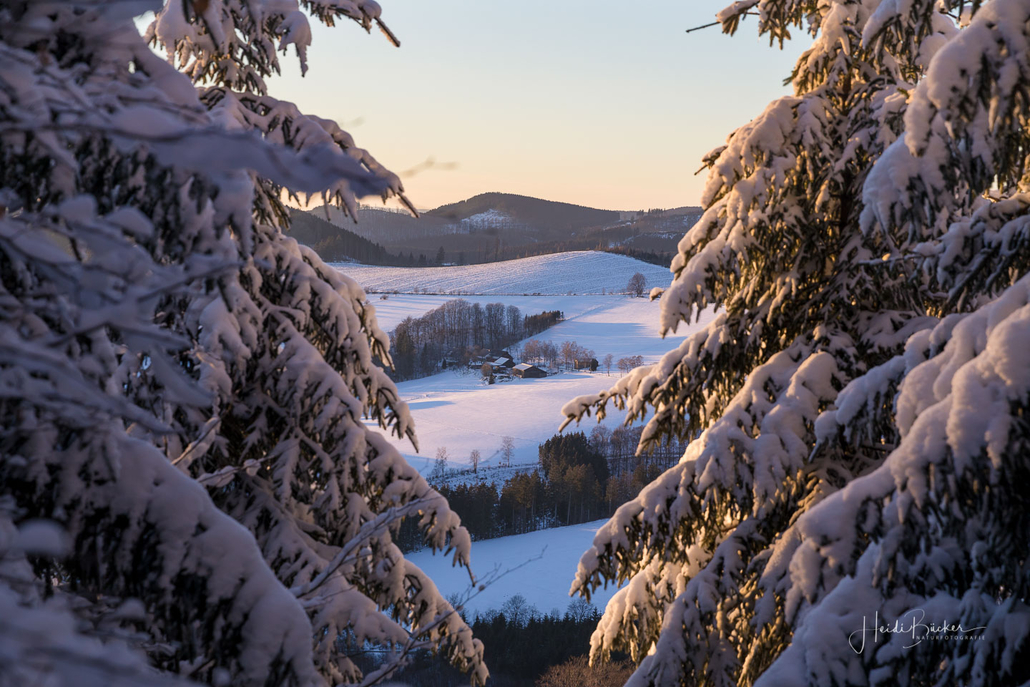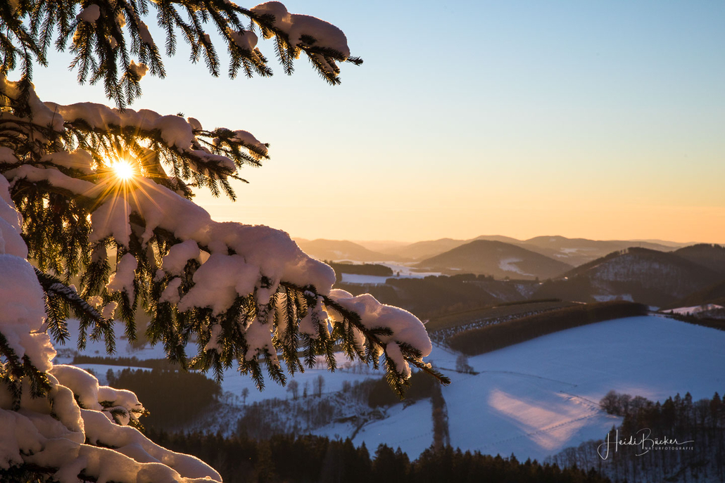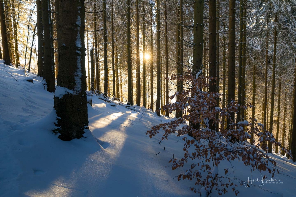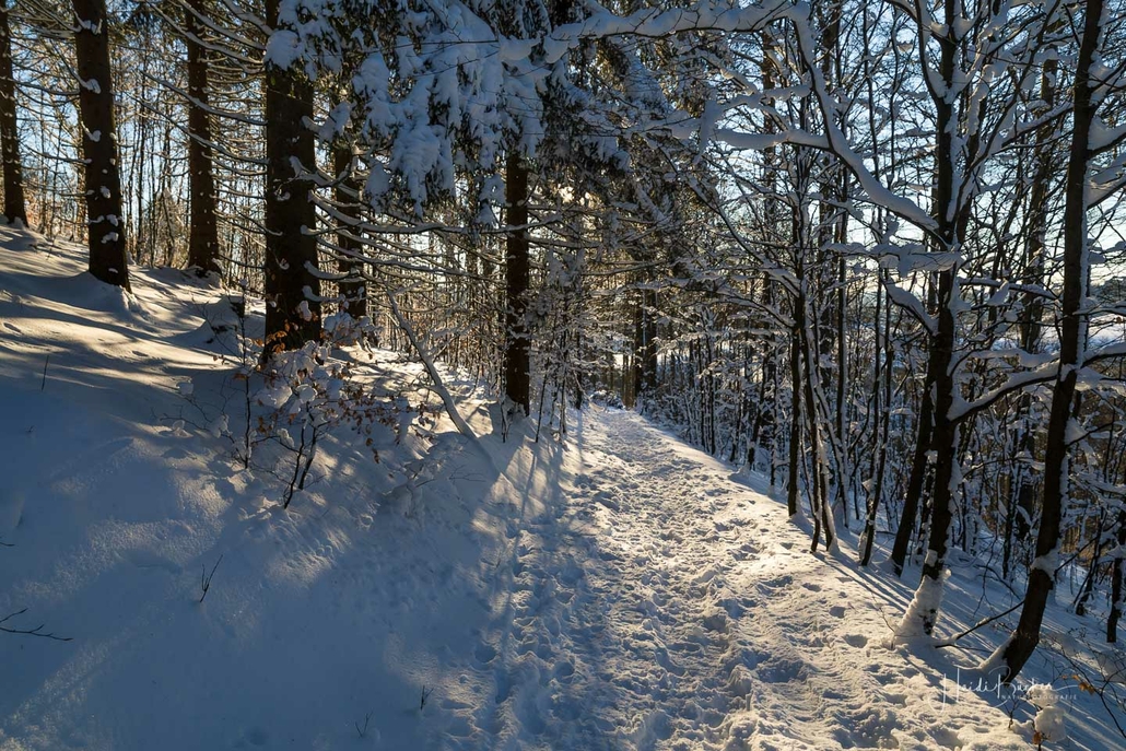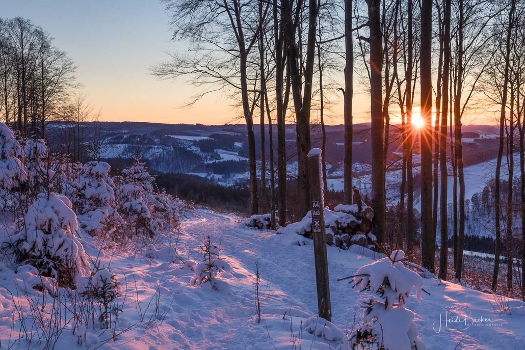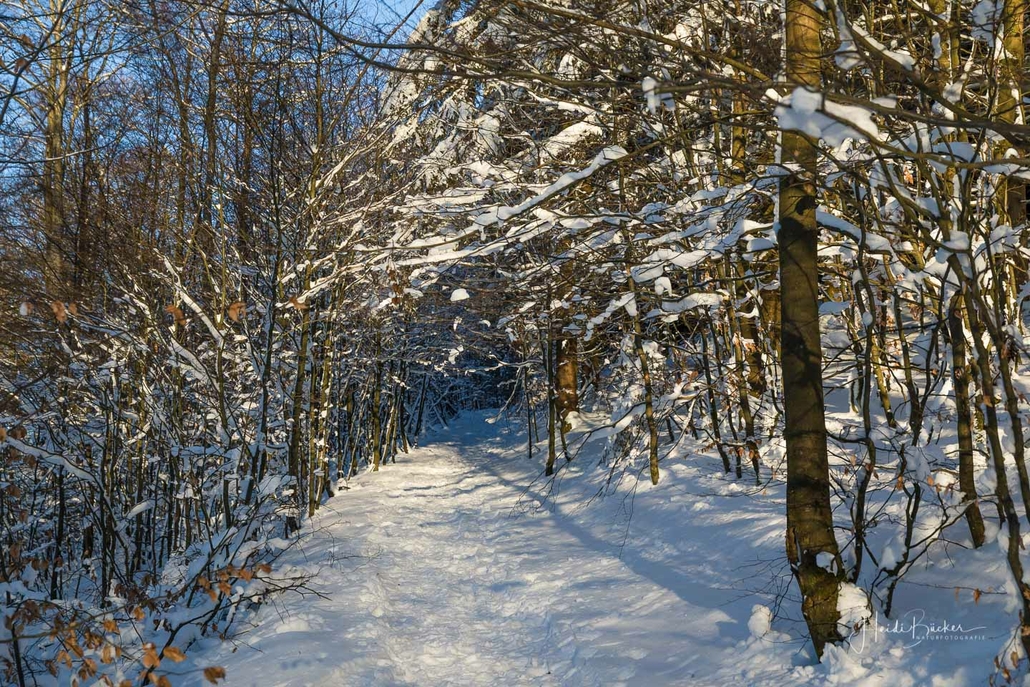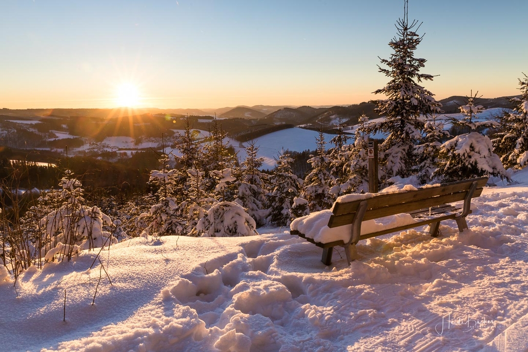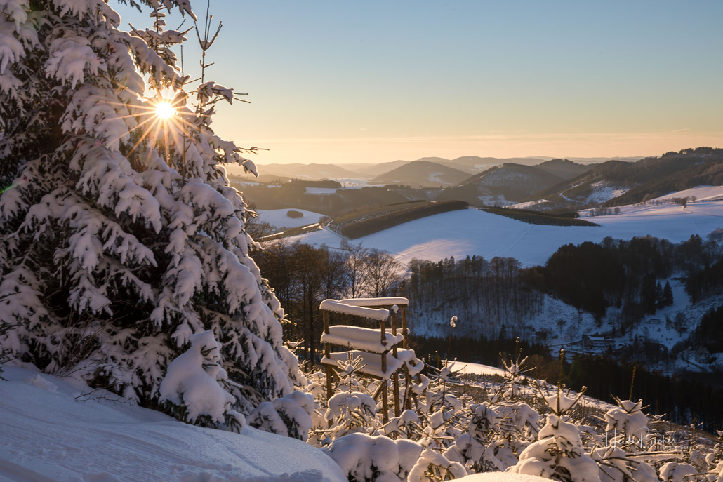 ** Die nachfolgenden Bilder sind an einem Wintertag im Januar spätnachmittags mit viel Schnee entstanden. Leider liegt zur Zeit auf dem Hohen Knochen nicht so viel Schnee, dass eine Loipe gespurt werden kann. Infos zu gespurten Loipen stehen auf der Website des Skilanglaufzentrums Westfeld-Ohlenbach.