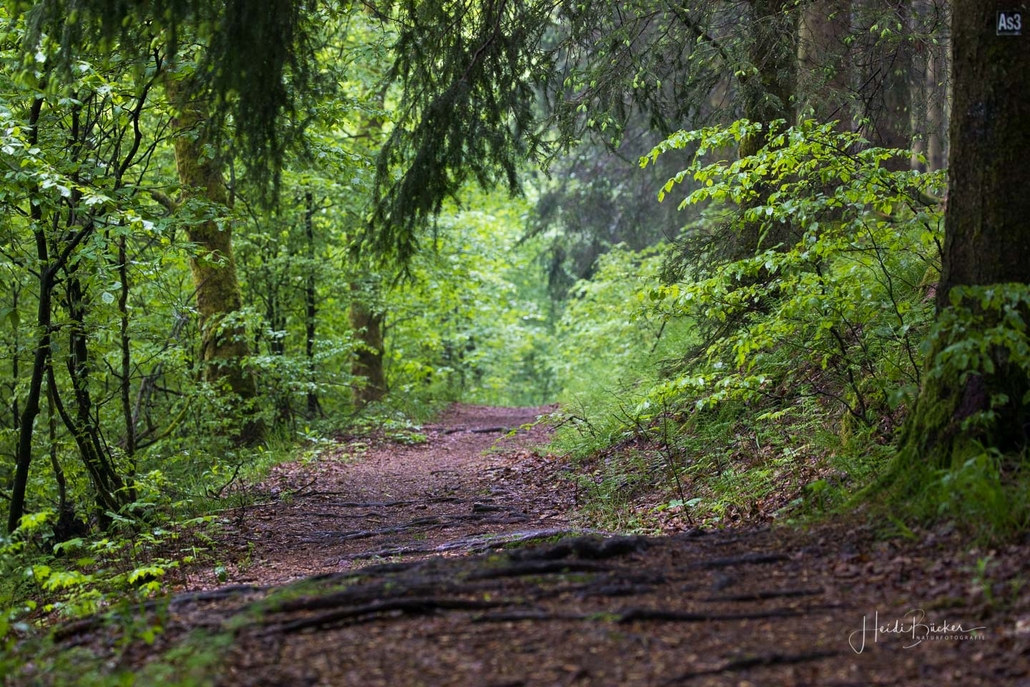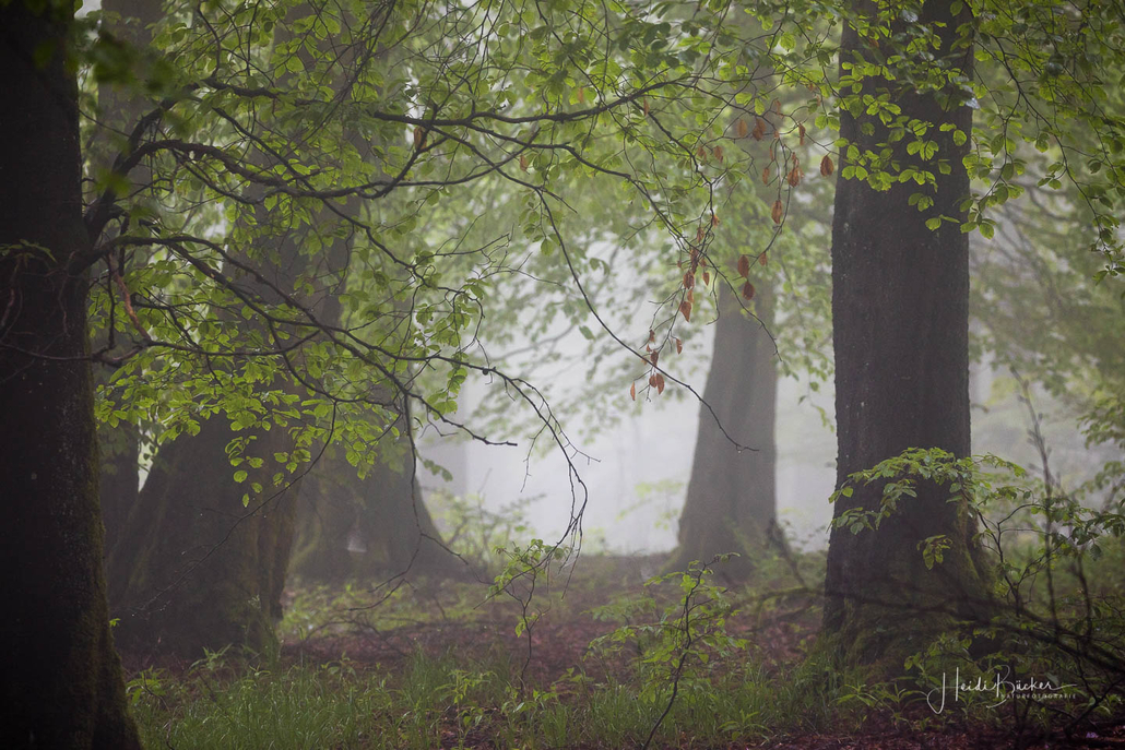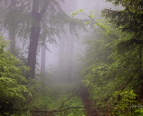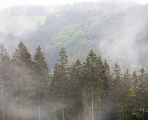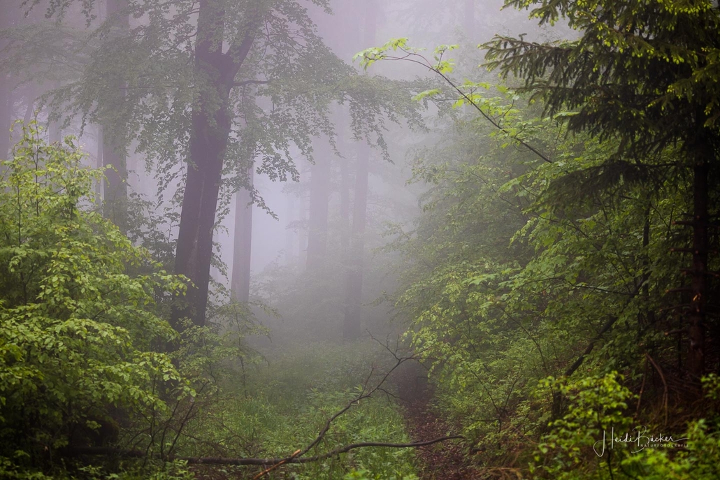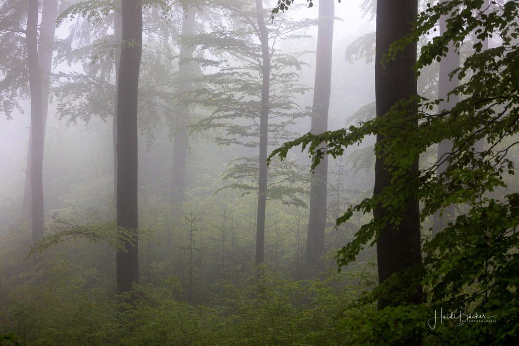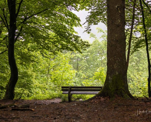Gestern musste ich – trotz Usselwetter – einfach mal an die frische Luft. Draußensein bei Regen im Wald ist erfrischend und wohltuend. Während meiner E-Bike-Tour hat es ununterbrochen genisselt. Die Bäume waren mit Nebel umhüllt und Regentropfen perlten an den Buchenblättern ab. Von einer mystischen Atmosphäre umgeben, konnte ich ganz in meine eigene Gedankenwelt abtauchen und die Stille genießen. Im Regen entfaltet die Natur einen besonderen Duft und das satte Grün der Bäume wirkt frisch und belebend …einfach nur wunderbar!