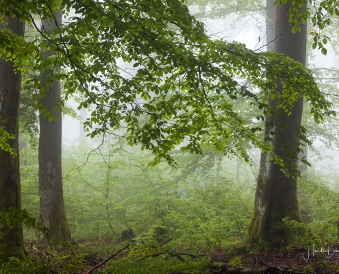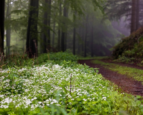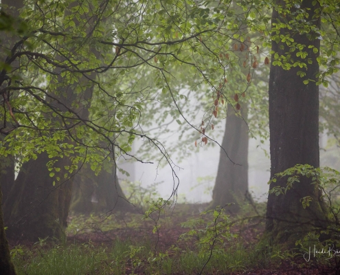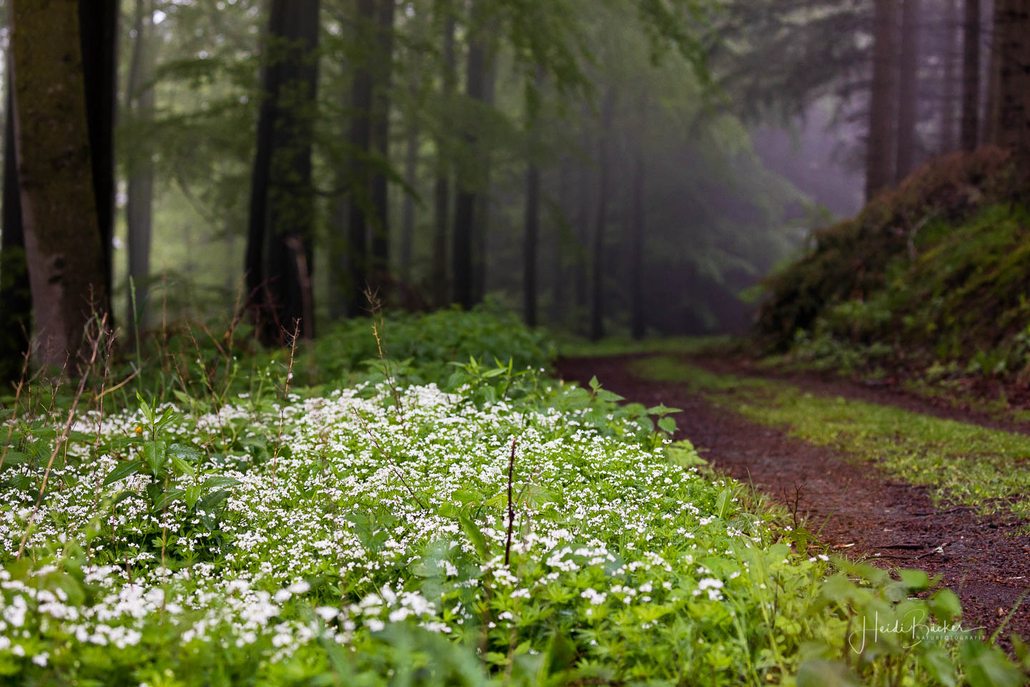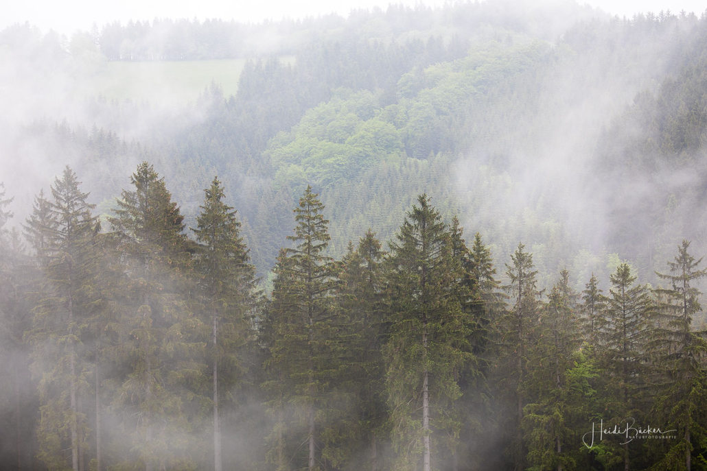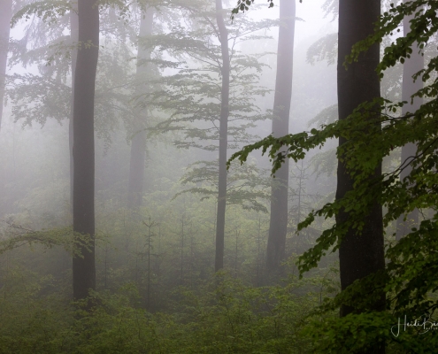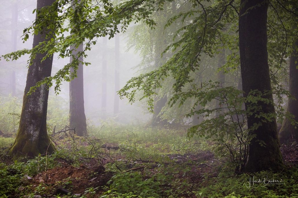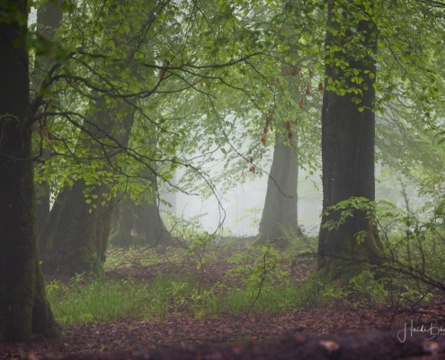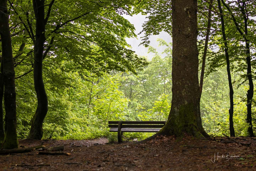 Gestern musste ich – trotz Usselwetter – einfach mal an die frische Luft. Draußensein bei Regen im Wald ist erfrischend und wohltuend. Während meiner E-Bike-Tour hat es ununterbrochen genisselt. Die Bäume waren mit Nebel umhüllt und Regentropfen perlten an den Buchenblättern ab. Von einer mystischen Atmosphäre umgeben, konnte ich ganz in meine eigene Gedankenwelt abtauchen und die Stille genießen. Im Regen entfaltet die Natur einen besonderen Duft und das satte Grün der Bäume wirkt frisch und belebend …einfach nur wunderbar!