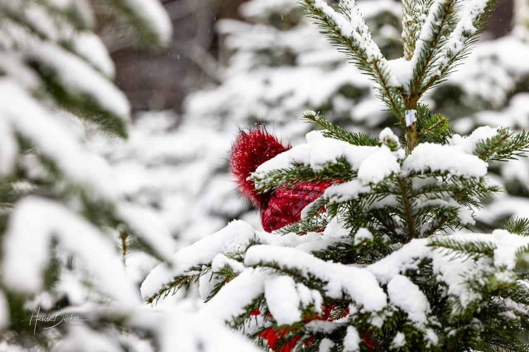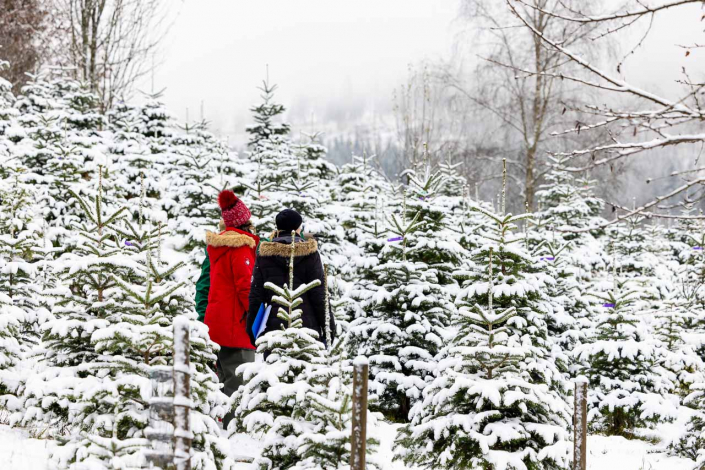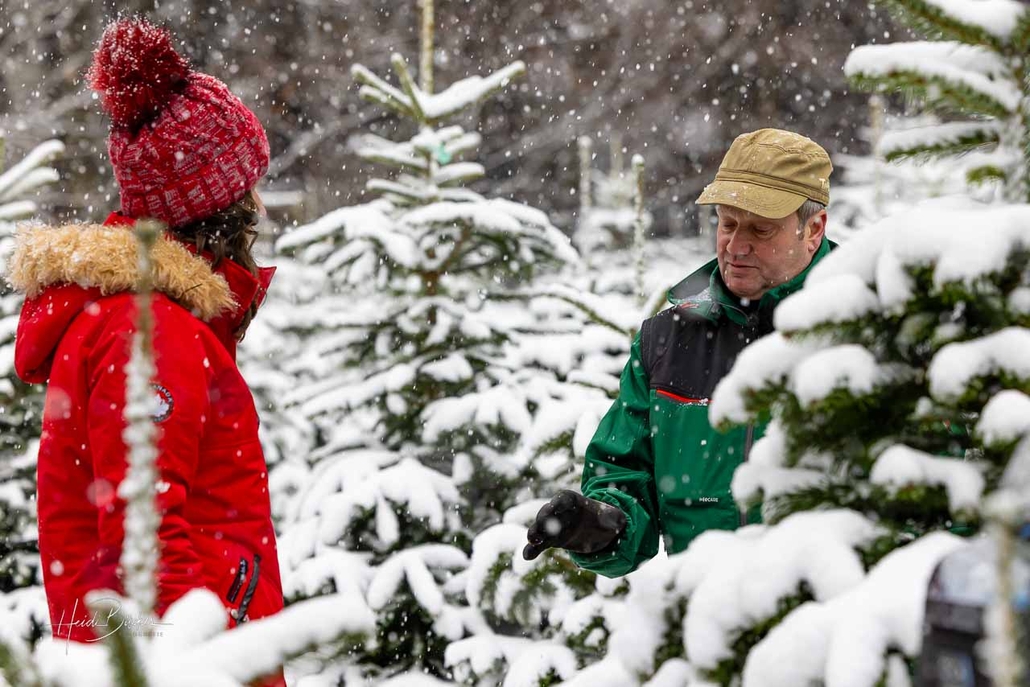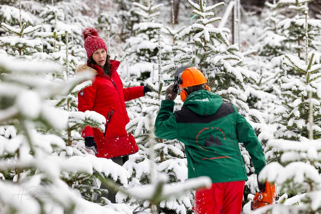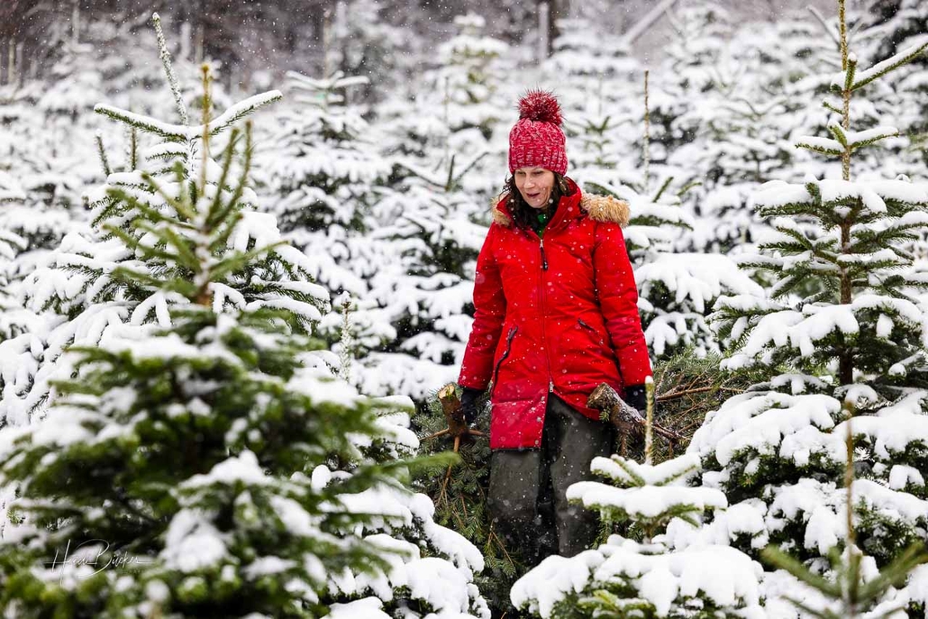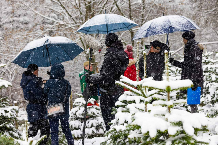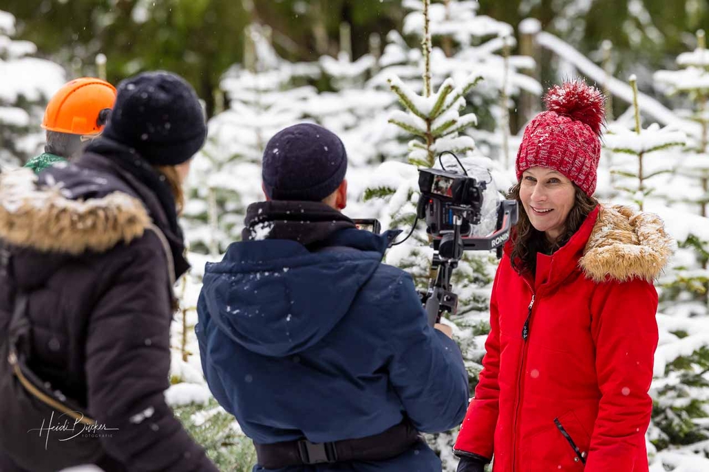 Schon frühmorgens ging´s los. Es war lausig kalt und schneite fast ununterbrochen. Für Ende November lag bereits ungewöhnlich viel Schnee, was für die Weihnachtsbaumernte und den Filmdreh nicht so optimal war. Mit Blick in die Natur zauberte der Schnee allerdings eine märchenhafte Stimmung.
