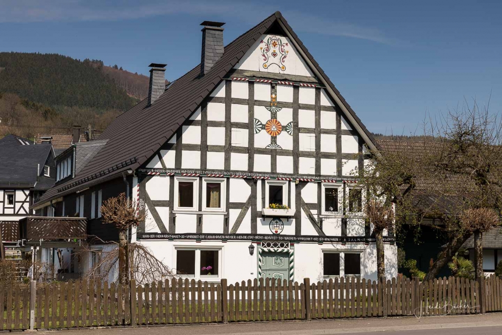Geht man durch den Kurpark von Saalhausen, kann man an einer Mauer die Aufschrift „…zu Gast bei Freunden“ lesen und fühlt sich eingeladen, hier einen schönen Tag zu verbringen. Saalhausen gehört zu Lennestadt und zählt ca. 1800 Einwohner. Sehens- und erlebenswert ist sicherlich der talVital (Kur & Vitalpark) direkt an der Lenne. Er wurde im Jahr 2015 im Rahmen des Förderprogramms „Lenneschiene“ neu gestaltet. Aber auch die schönen alten Fachwerkhäuser sind eine Augenweide und kürzlich wurde noch ein neues Naturpark-Infozentrum eröffnet.