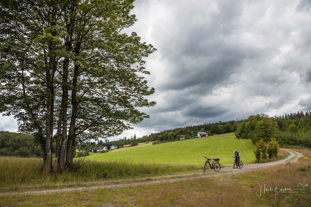 In Kühhude verließen wir den Waldskulpturenweg und fuhren hinunter in das landschaftlich sehr idyllisch gelegene Radebachtal, ein wahres Naturerlebnis bis zum Dödesberg. Vom Dödesberg, Abzweig Girkhausen, ging es dann links ab in das Dödesbachtal. Wir folgten dem Bach hinauf zum Albrechtsplatz um von da weiter nach Hoheleye und durch hohen Buchenwald nach Langewiese zu radeln. Von Langewiese ging es in den Lennegrund und wieder hoch auf den Hohen Knochen und dann auf direktem Wege nach Ohlenbach zum Einkehrschwung in den Gasthof Braun.