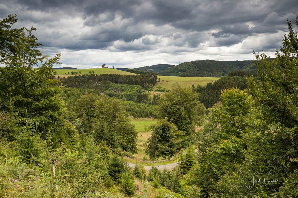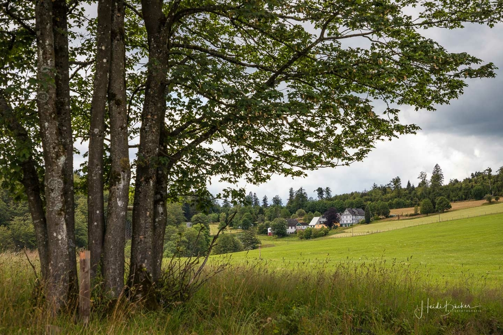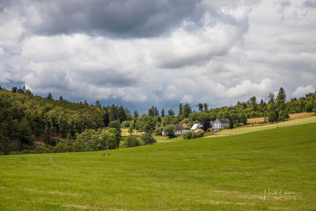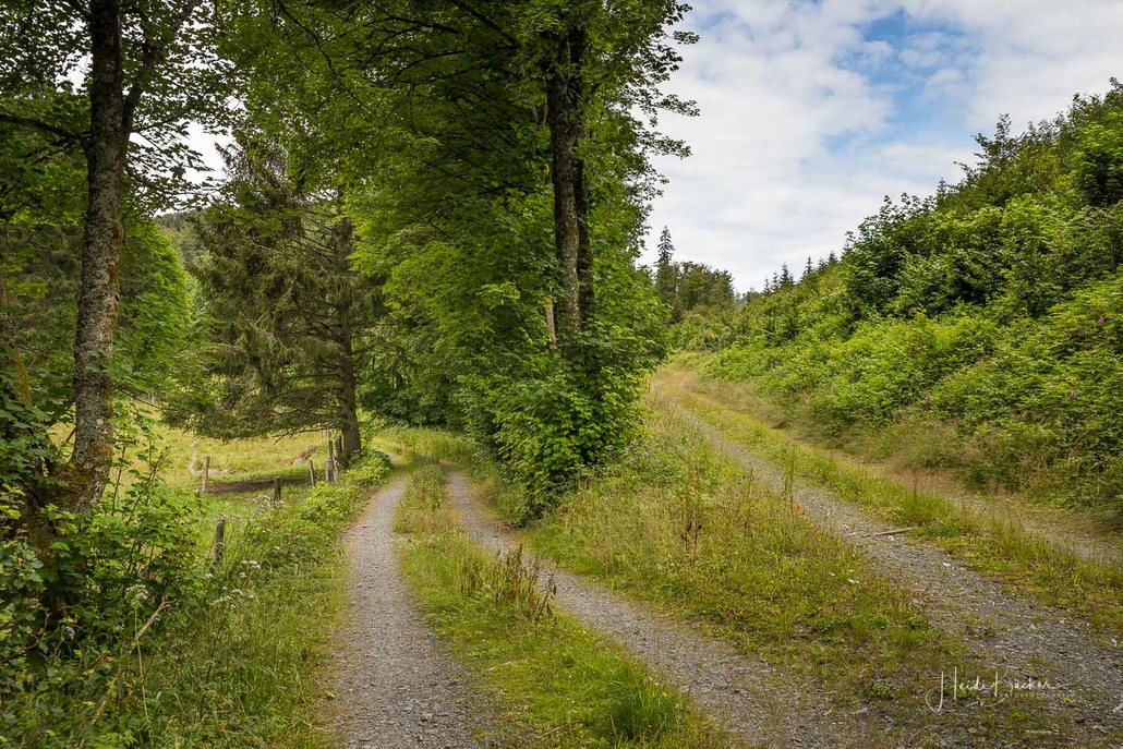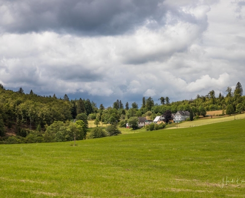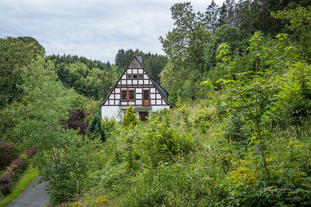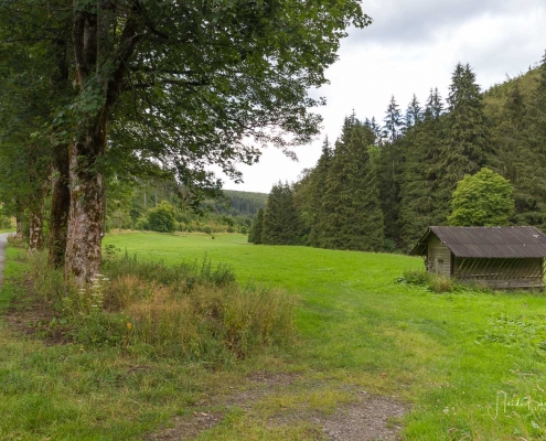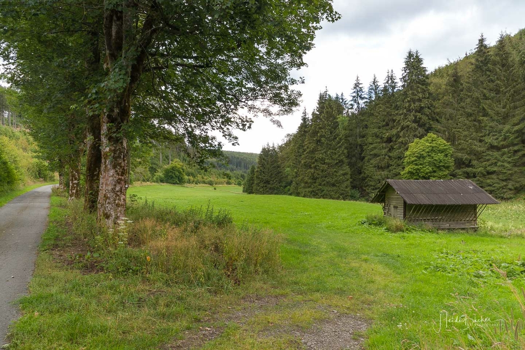 Von der Skulptur war es nur noch ein Katzensprung bis Kühhude, einem, auf einer Waldlichtung liegenden Weiler. Wer möchte, kann hier am Wochenende in die Kaffeestube einkehren. Kühhude gehört bereits zum Wittgensteiner Land und liegt auf dem Rothaarkamm an der historischen Grenze zwischen der Gemarkung Berleburg – Schüllar und dem Kurkölschen Sauerland.