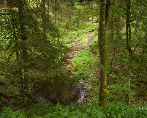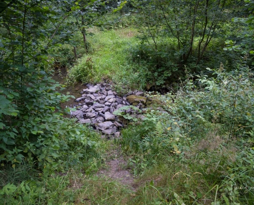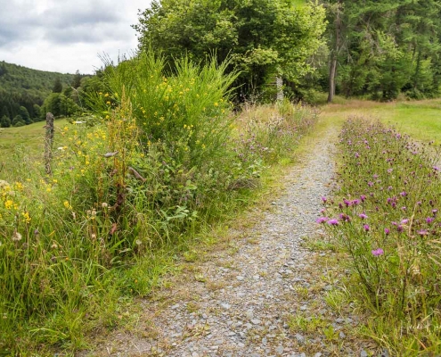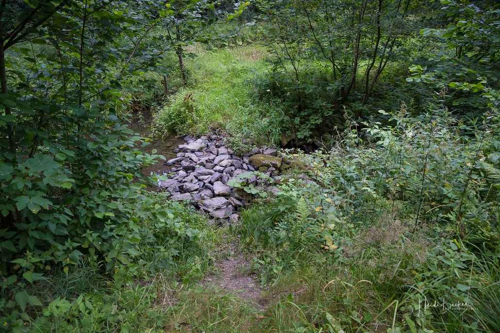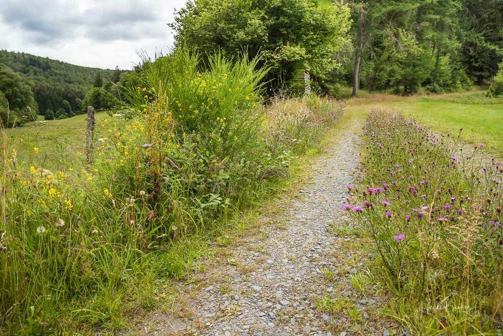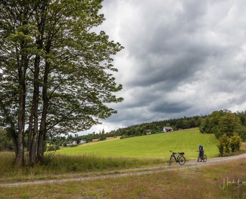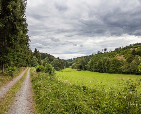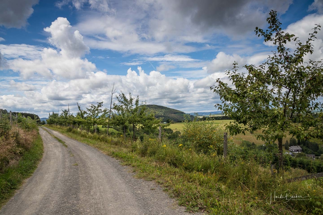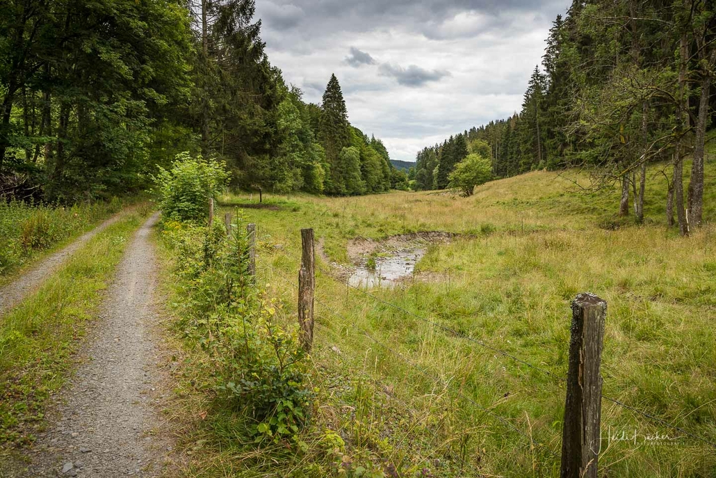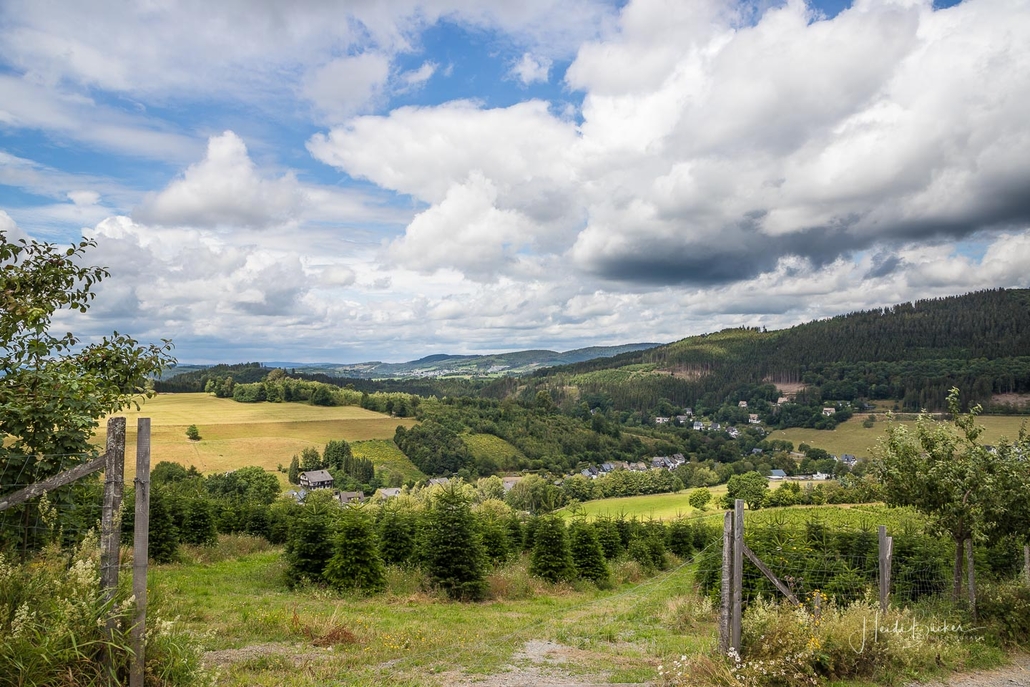 Von der Skulptur war es nur noch ein Katzensprung bis Kühhude, einem, auf einer Waldlichtung liegenden Weiler. Wer möchte, kann hier am Wochenende in die Kaffeestube einkehren. Kühhude gehört bereits zum Wittgensteiner Land und liegt auf dem Rothaarkamm an der historischen Grenze zwischen der Gemarkung Berleburg – Schüllar und dem Kurkölschen Sauerland.